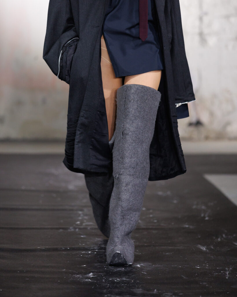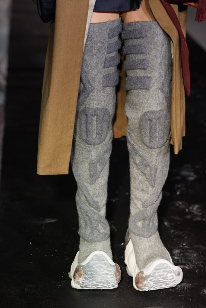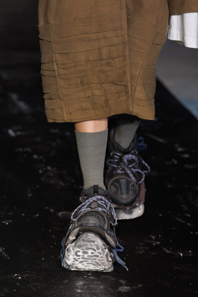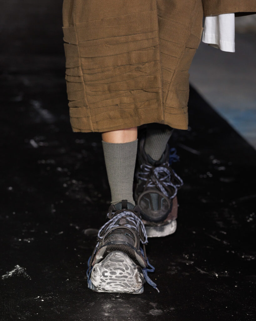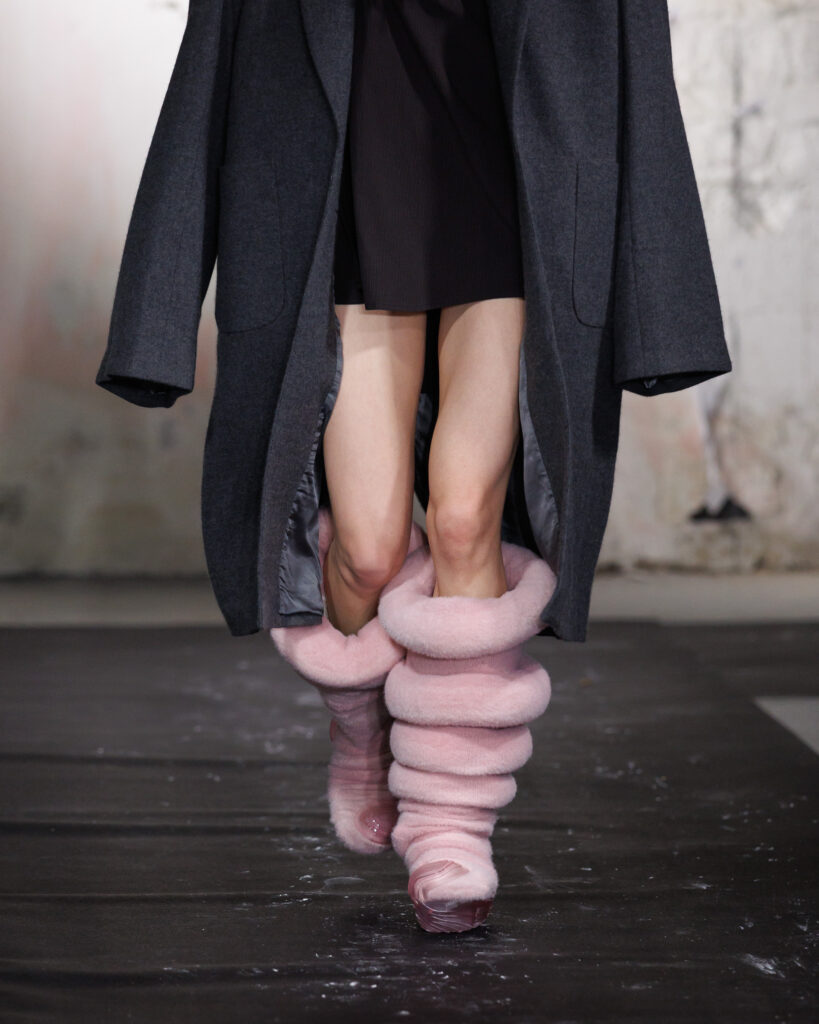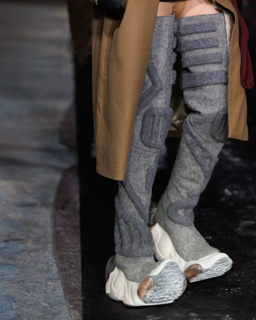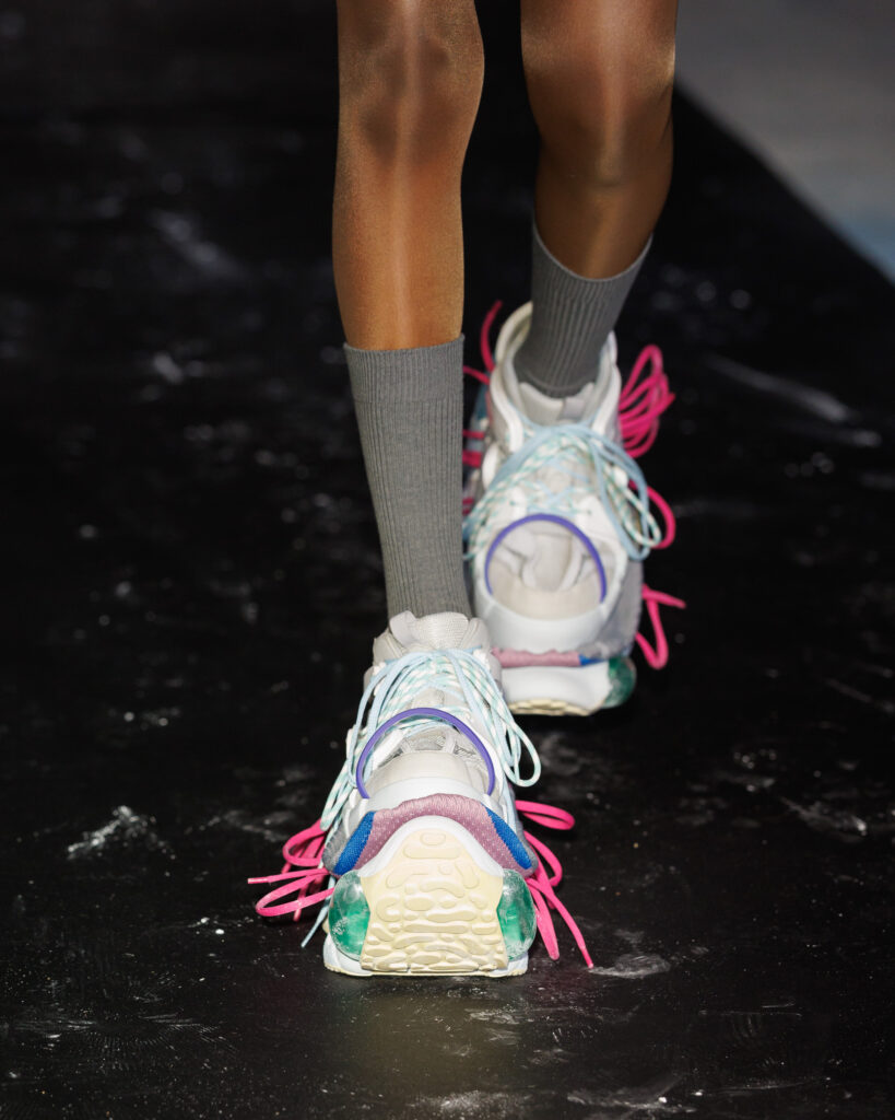 Toujours focalisée sur le pied et son rapport singulier avec le sol, la marque réaffirme son expertise à travers des chaussures aux semelles amplifiées et des constructions techniques sophistiquées, repoussant sans cesse les limites de l’imagination. Mais l’évolution ne s’arrête pas là : grounds fait cette saison une entrée remarquée dans l’univers des lunettes de soleil haut de gamme, élargissant son spectre créatif tout en restant fidèle à sa philosophie d’une mode immersive et radicalement innovante.