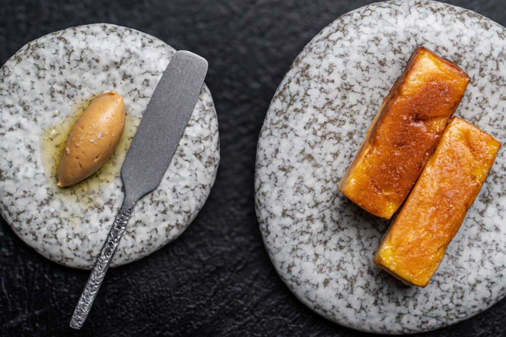 Parmi les plats signatures, difficile de passer à côté du « Veau de la Reine Claude », un équilibre parfait entre la tendresse de la viande et la douceur acidulée du fruit. Le « Gâteau de poivron rouge, œuf mollet, siphon feta » déconcerte et séduit, tout comme le « Fassoulia de Turbo », une interprétation personnelle et modernisée d’un plat traditionnel du Levant.