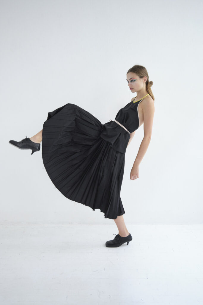 « Pourquoi produire davantage de vêtements ? » Cette interrogation sincère anime le studio d’Arthur Arbesser, incitant à une approche minimaliste et poétique de la création. La collection Printemps/Été 2025 célèbre l’artisanat et les gestes du quotidien, tout en assumant une démarche écoresponsable, où « petit » devient synonyme de « sage »​.