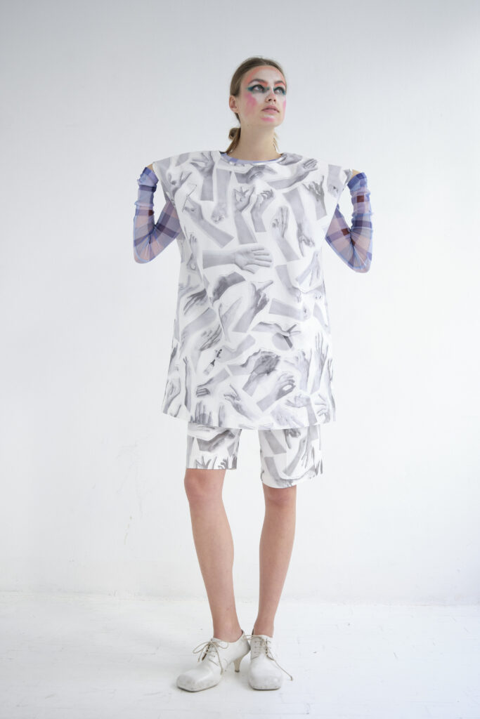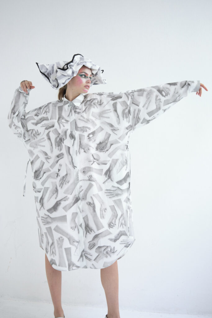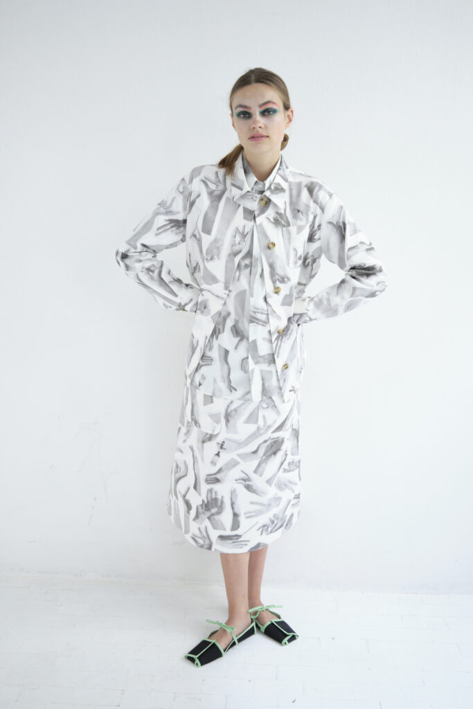 Cette saison, les mains sont au cœur de l’inspiration. Photographiées, puis transformées en imprimés, elles symbolisent la création, la connexion humaine et la capacité à façonner le monde. Ce thème se déploie à travers des vêtements qui parlent autant de toucher que d’émotion, renforçant une approche intime de la mode​.