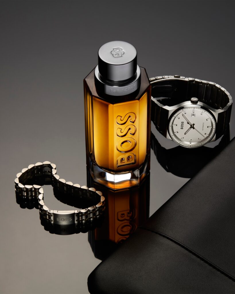 • BOSS The Scent for Him : Conçue par Pascal Gaurin, cette fragrance ambrée-boisée-fruitée associe la fraîcheur épicée du gingembre, le fruit de Maninka exclusif à BOSS, et des notes de cuir sensuelles pour un contraste saisissant.