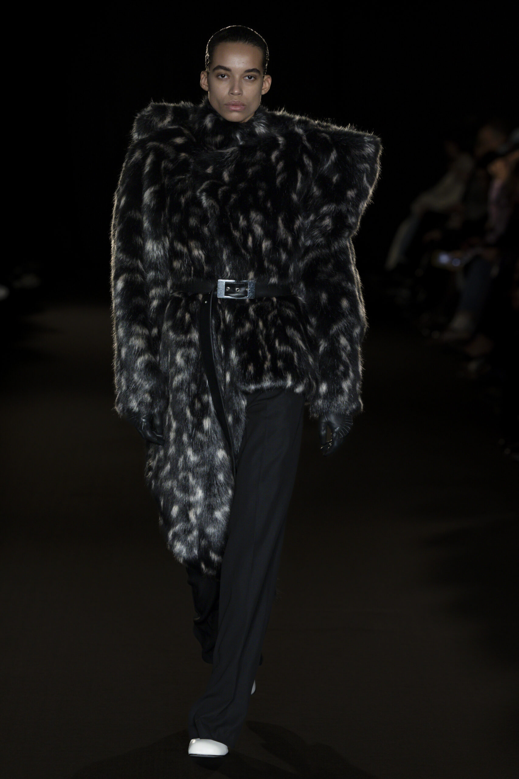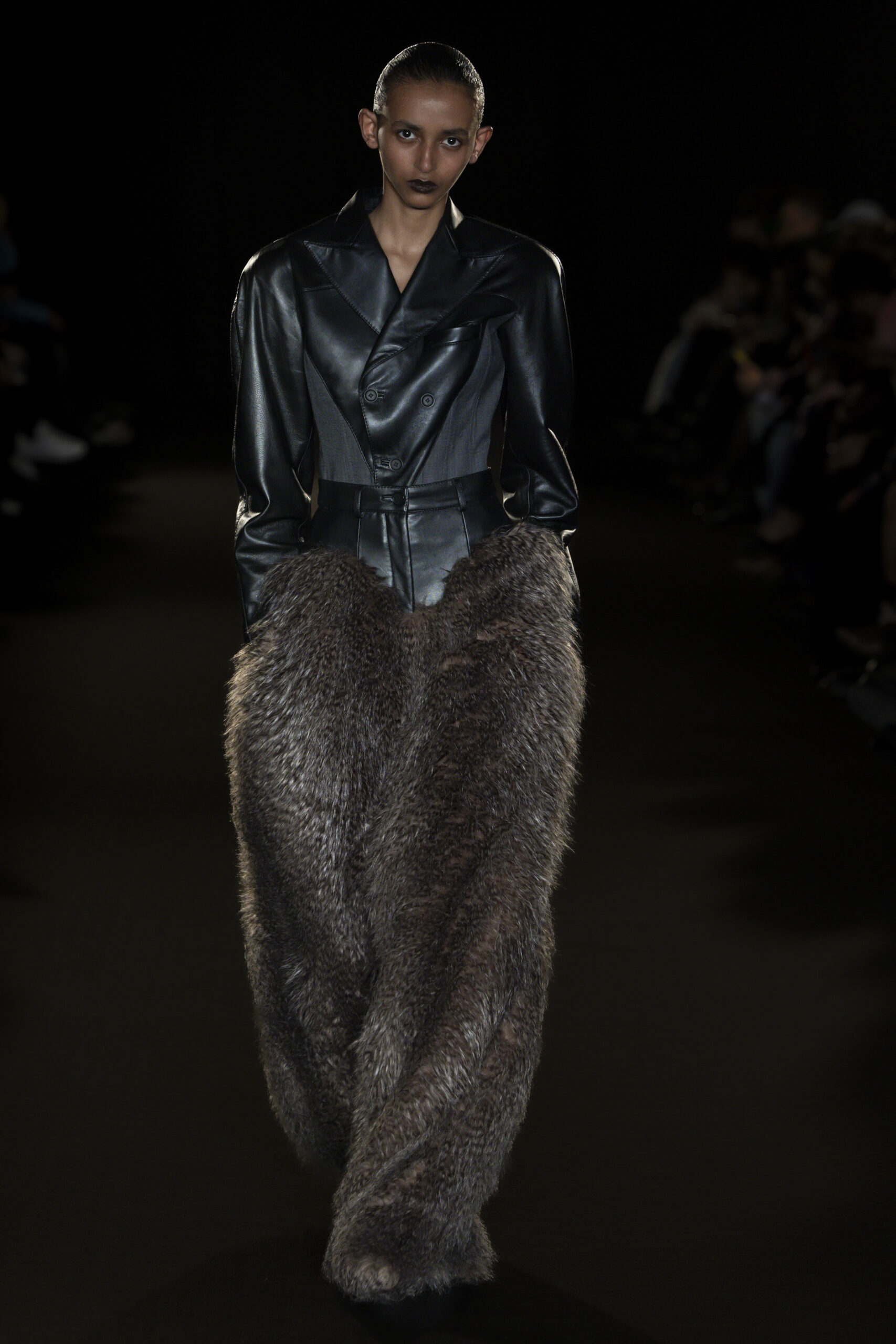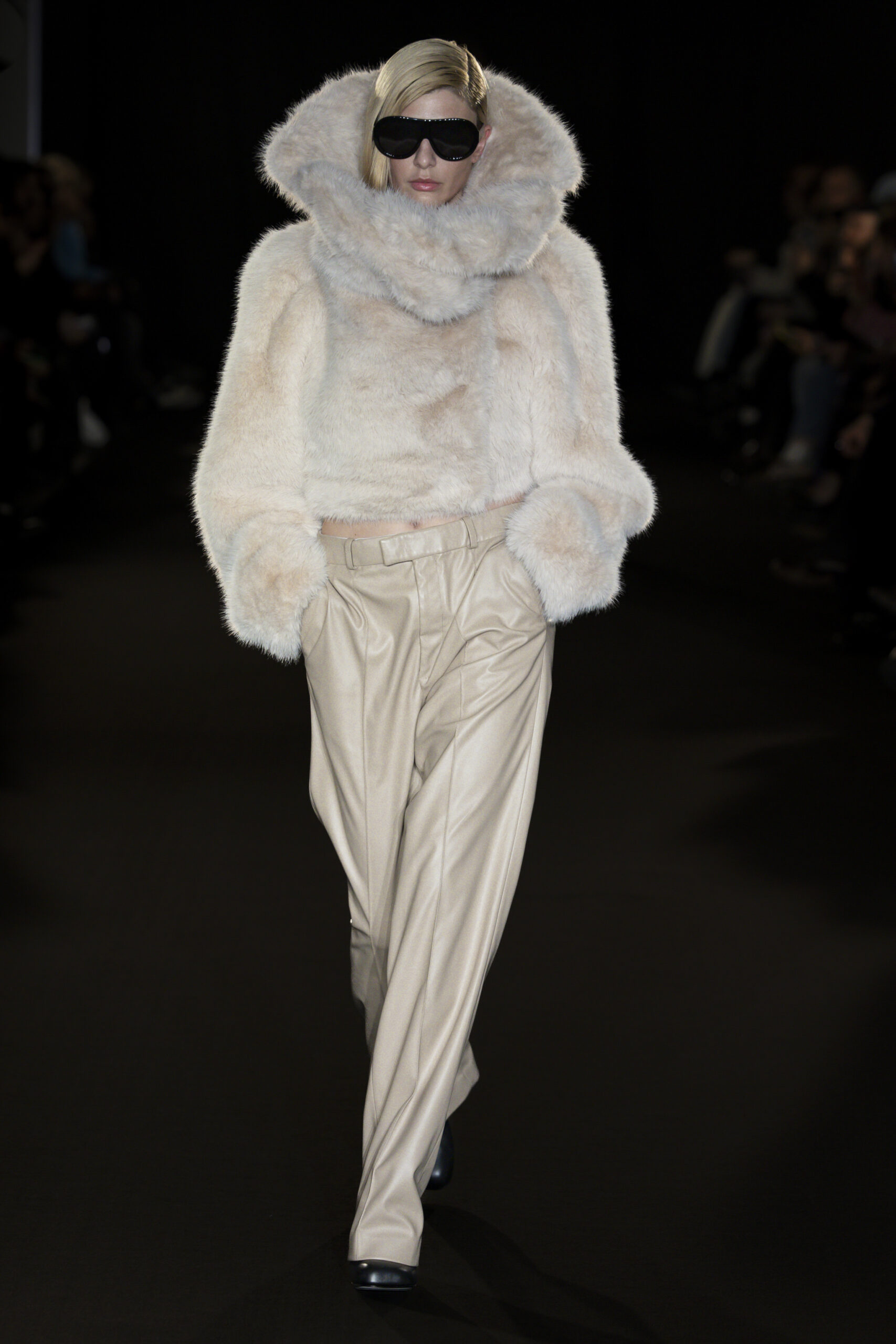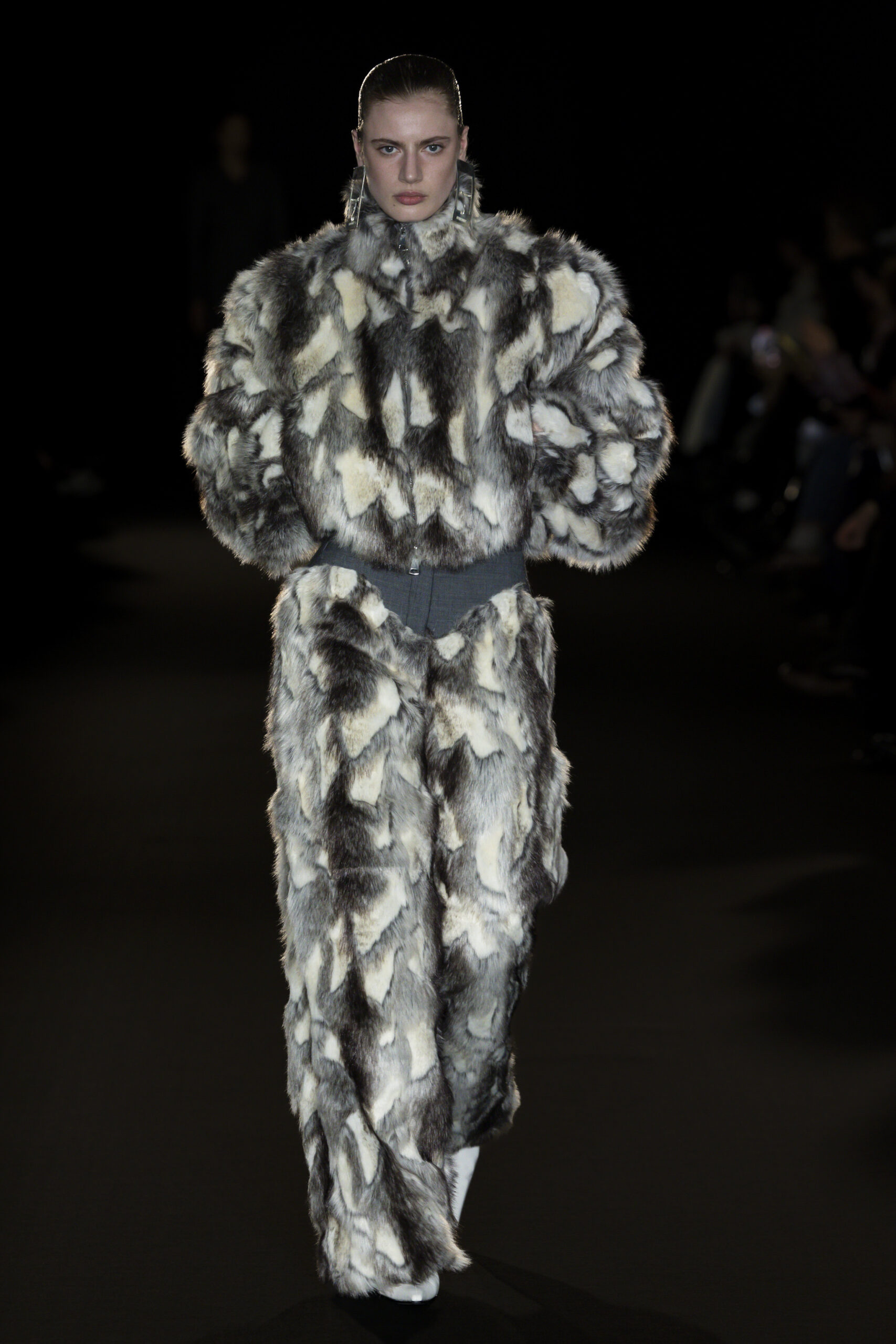 • Les manteaux en fausse fourrure renforcent la silhouette, enveloppant le corps d’une force presque guerrière, entre chaleur et autorité.