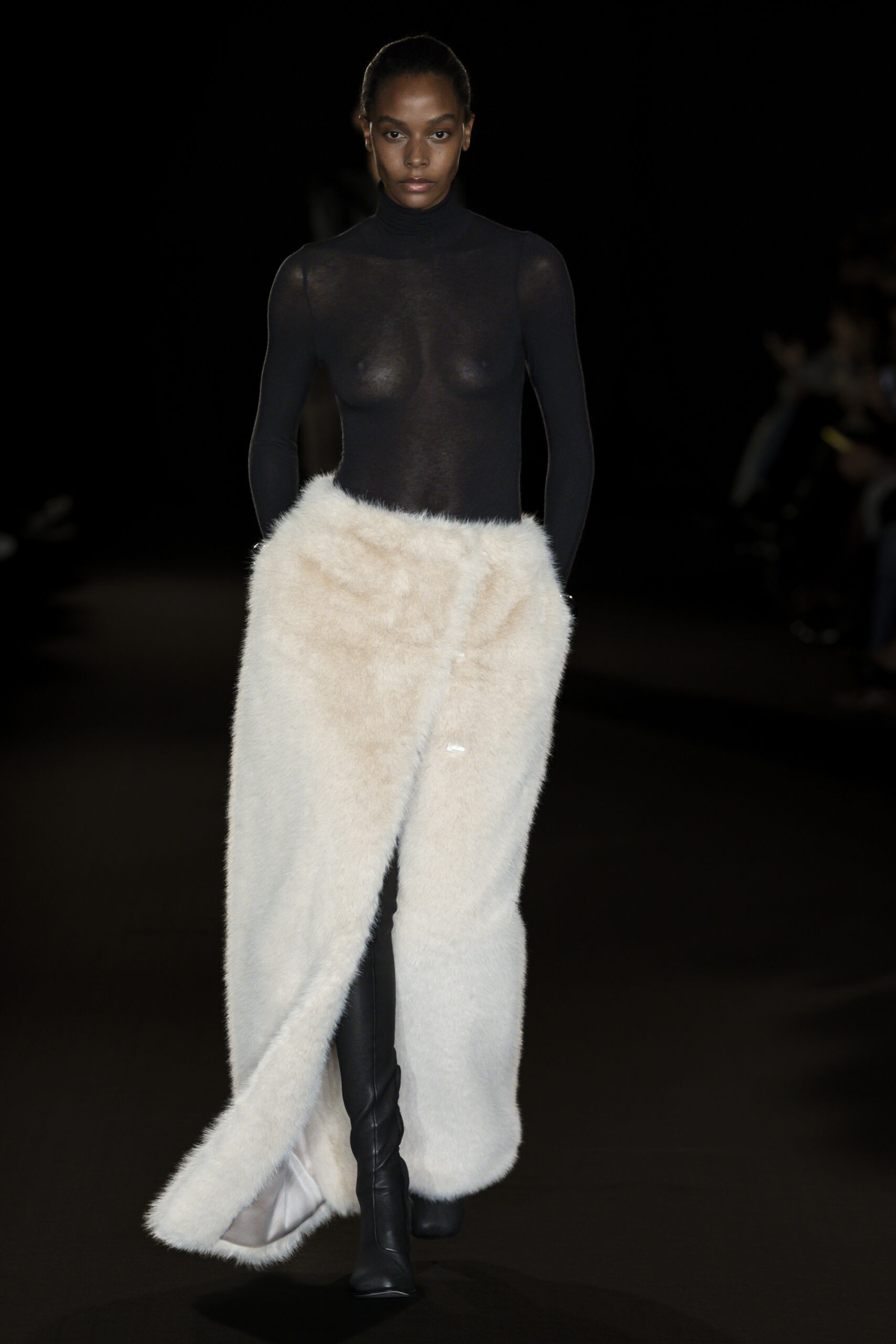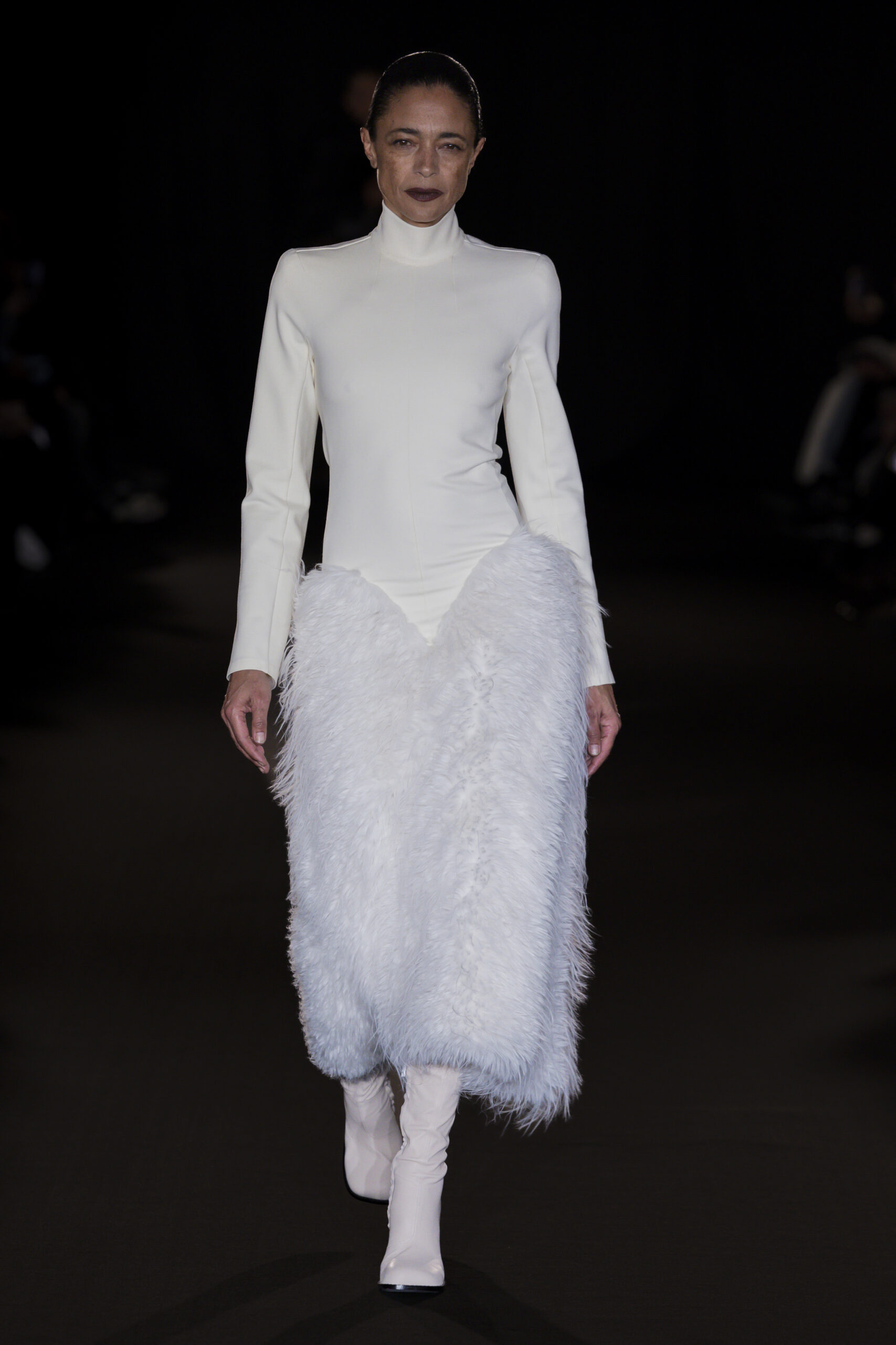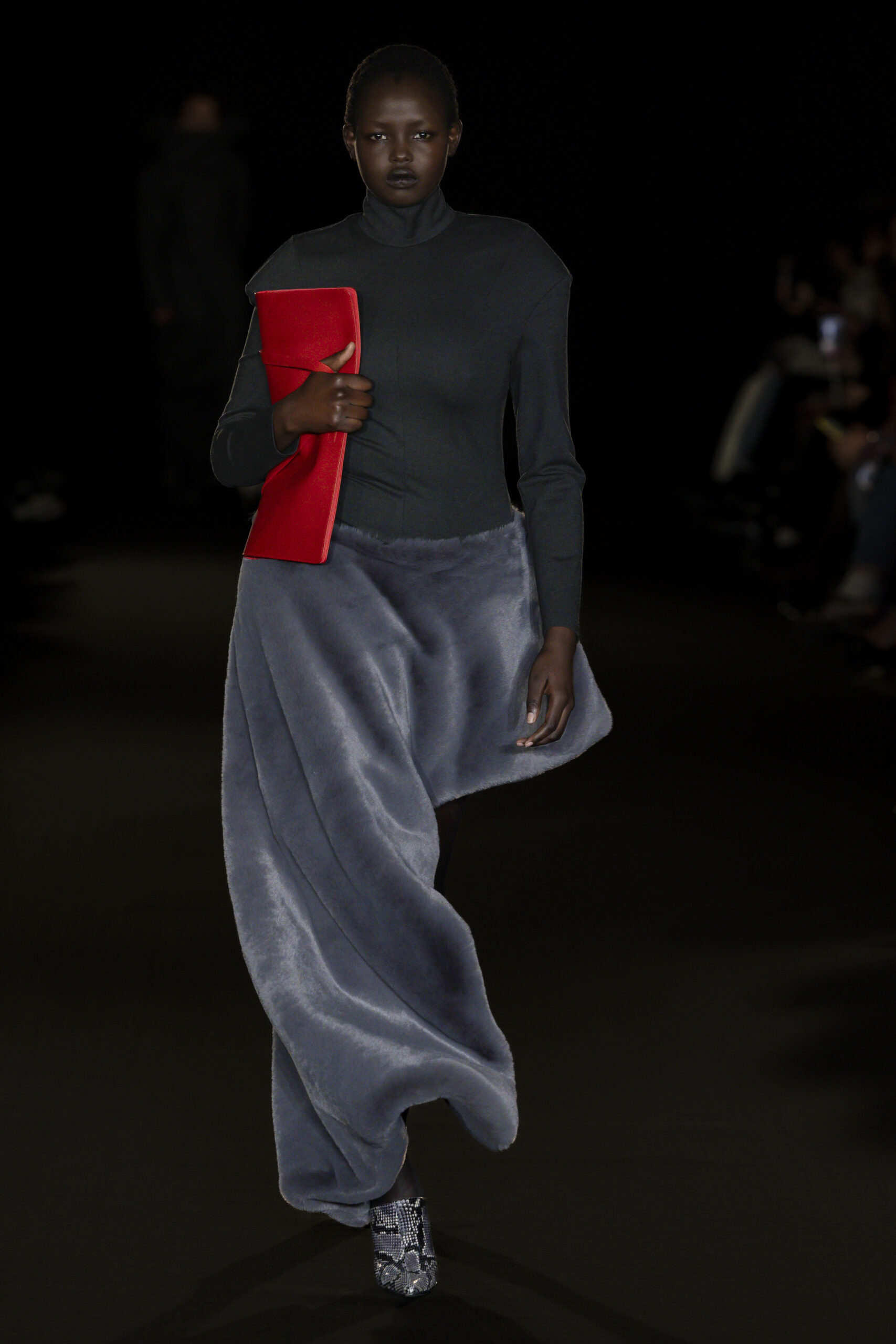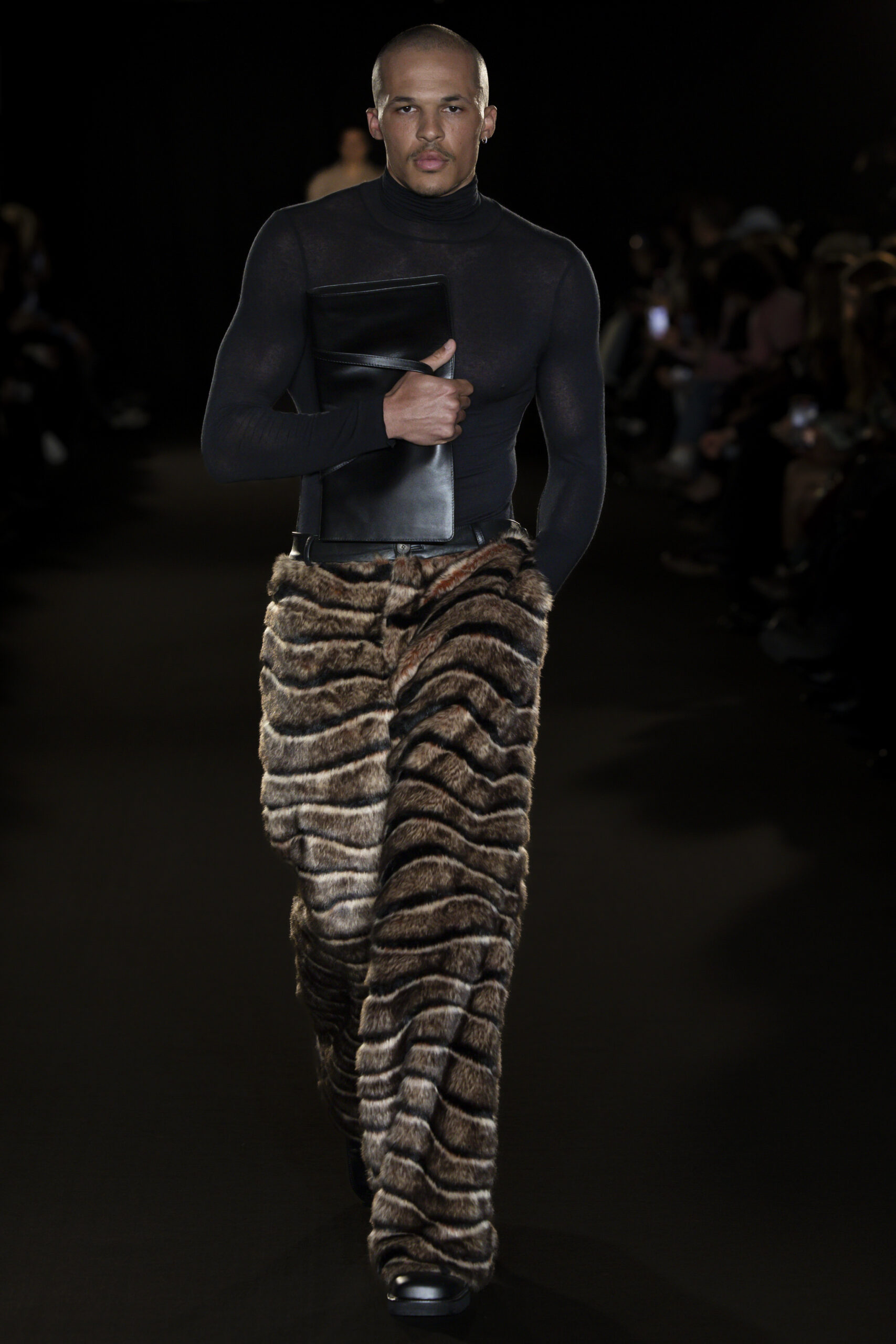 • Les manteaux en fausse fourrure renforcent la silhouette, enveloppant le corps d’une force presque guerrière, entre chaleur et autorité.