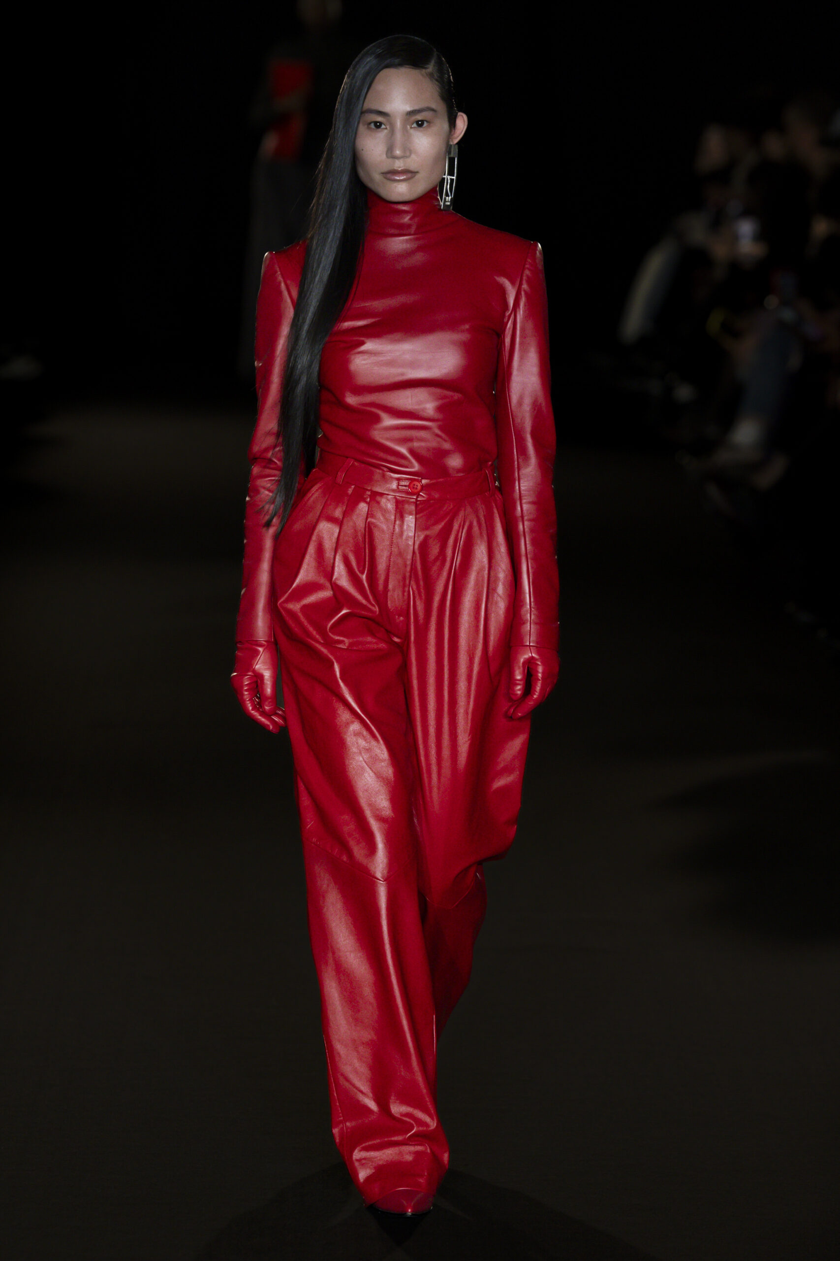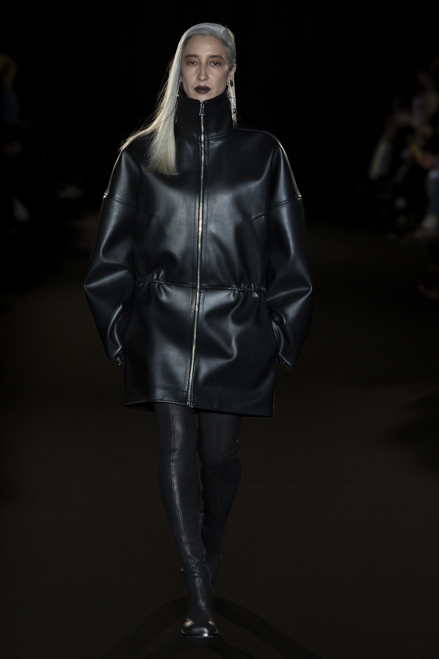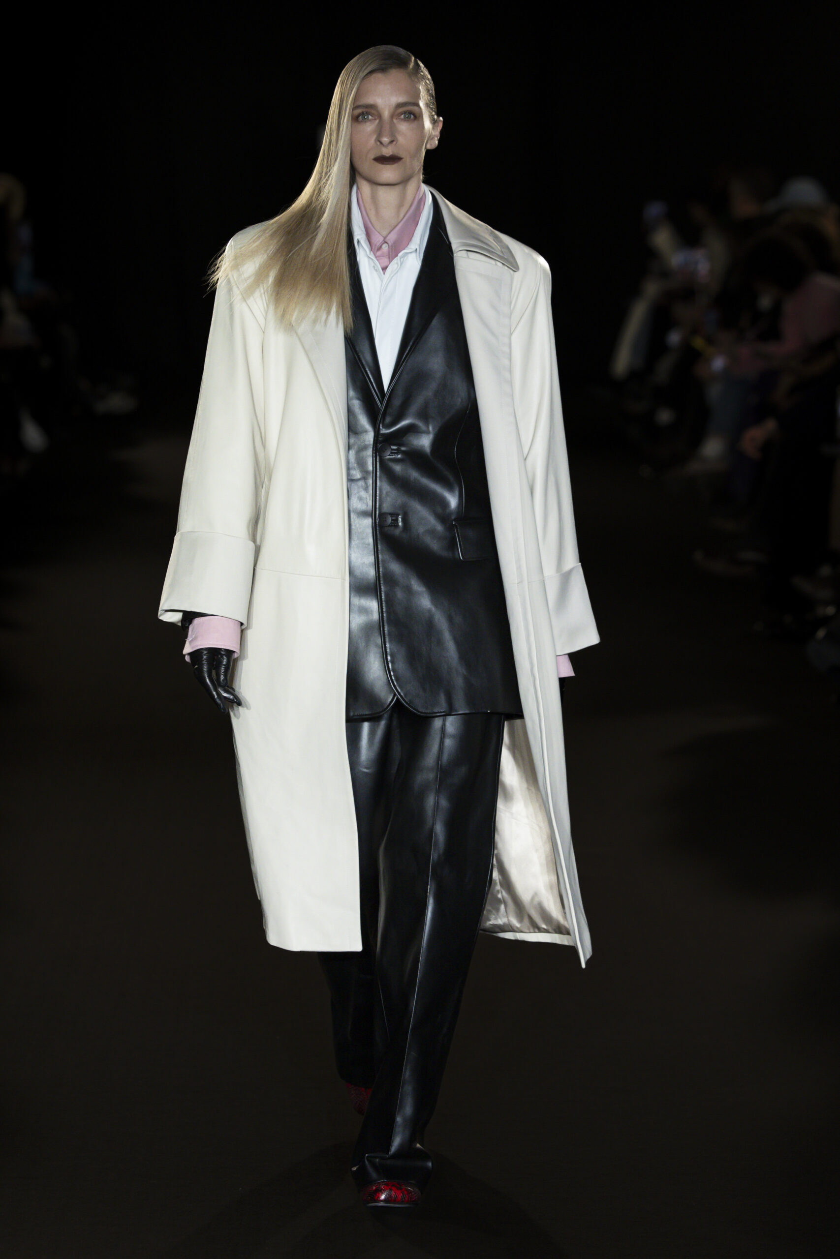 • Le cuir structuré domine, offrant des blousons à l’attitude radicale et des trenchs cintrés, incarnations d’une élégance tranchante.