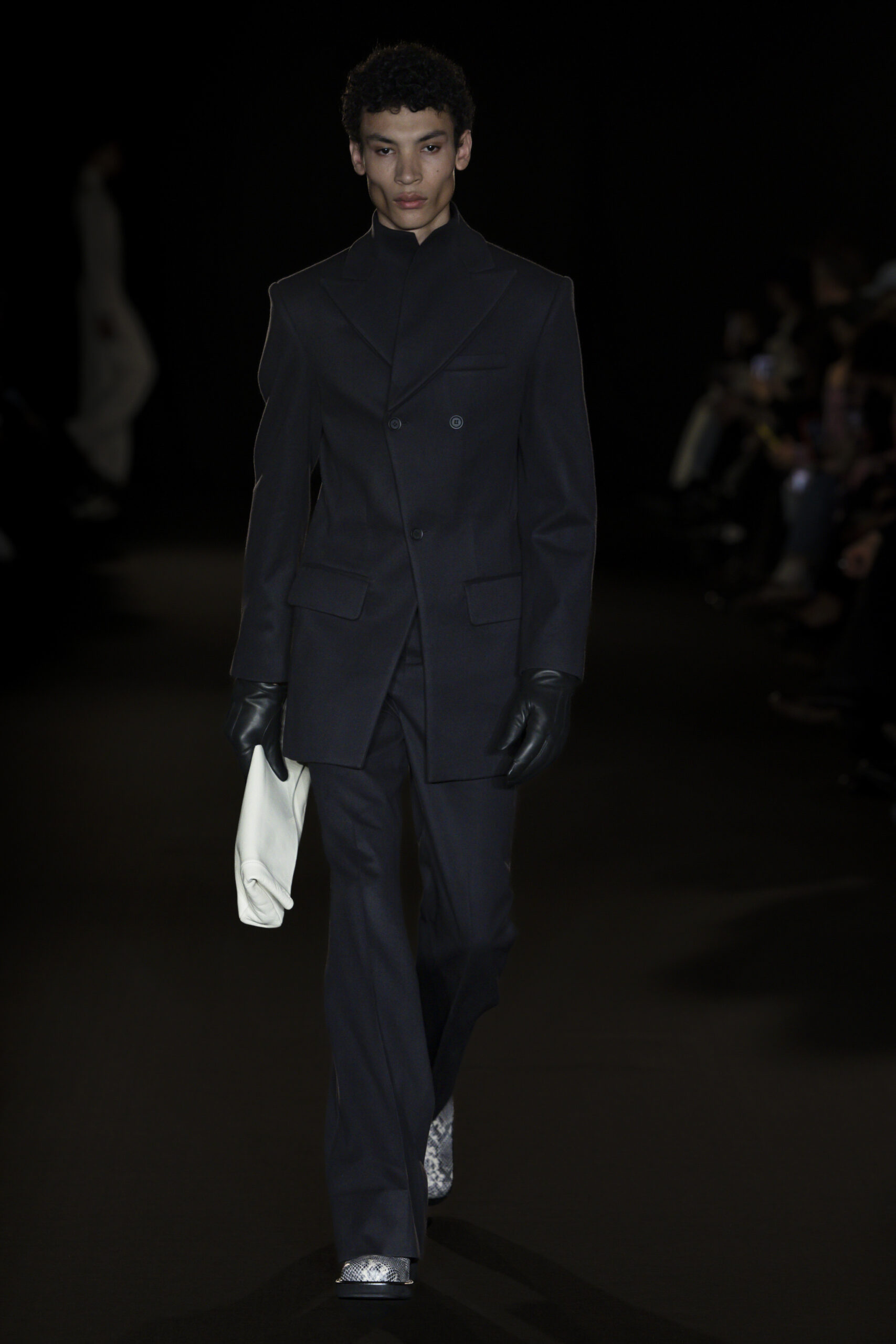 Au cœur de cette saison, une relecture de l’ADN Situationist, où les classiques de la maison rencontrent des formes plus audacieuses, des coupes exacerbées et une palette contrastée. Le tailoring se veut plus acéré que jamais, avec des vestes architecturales et des pantalons à la coupe nette.