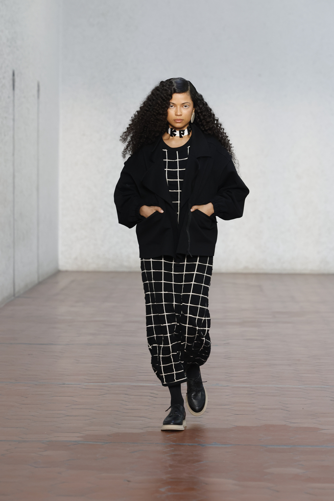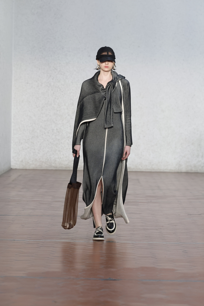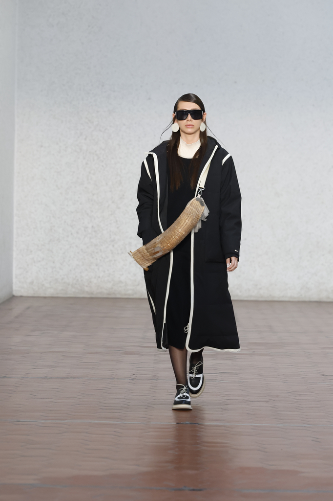 - Des matières qui honorent la tradition basque, avec un travail minutieux autour du feutre, du coton recyclé et du tulle, créant une dynamique entre textures brutes et légèreté aérienne.