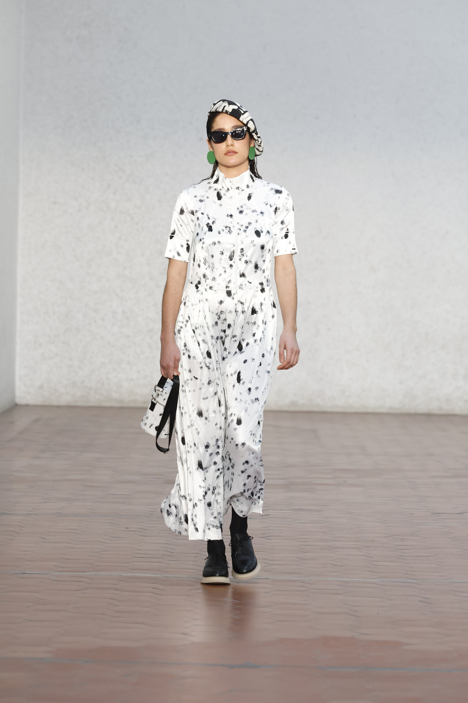 - L’impression en relief sur une robe zéro déchet, une approche sensorielle du textile, entre graphisme et volume tactile.