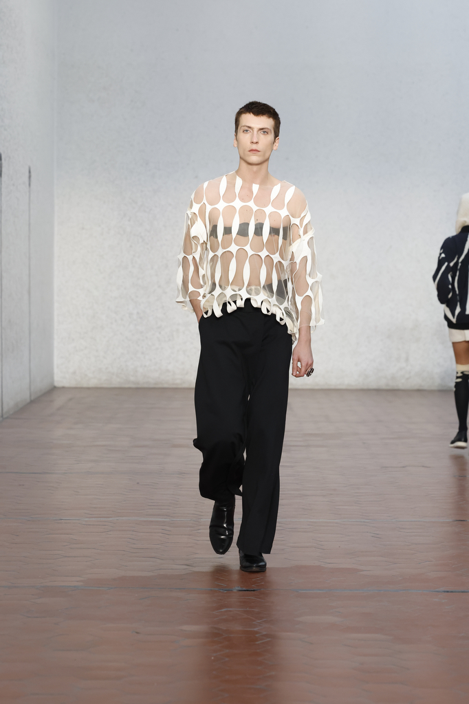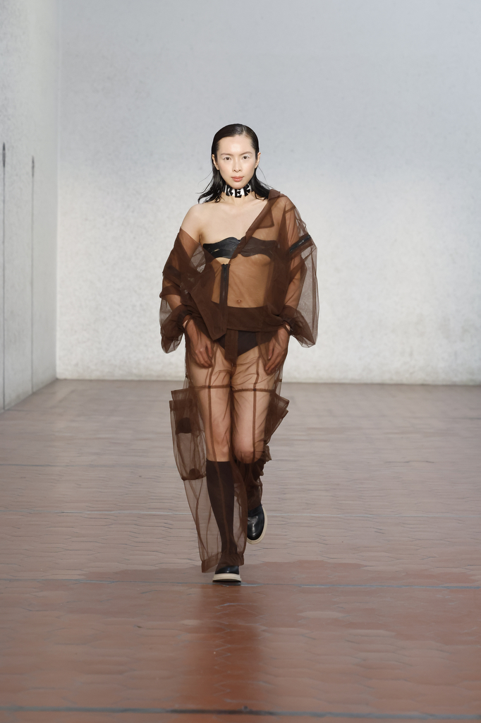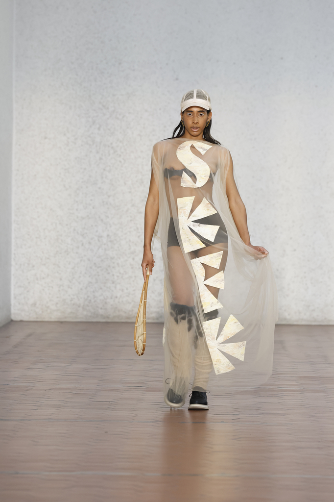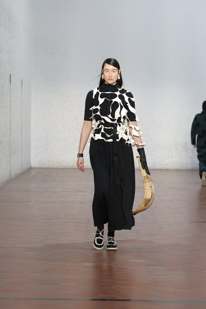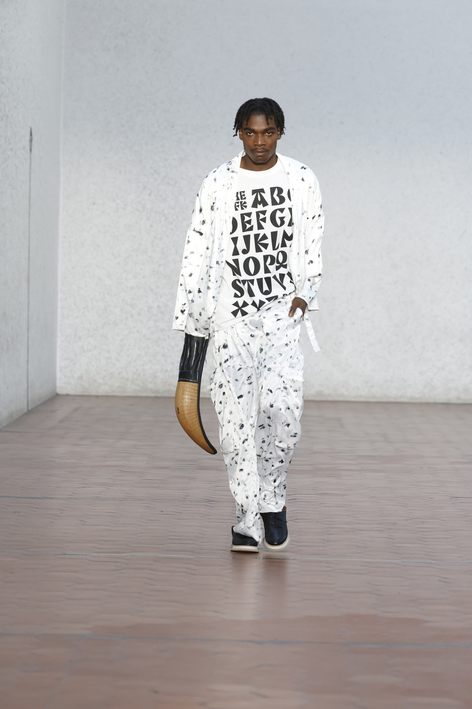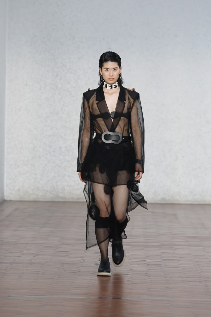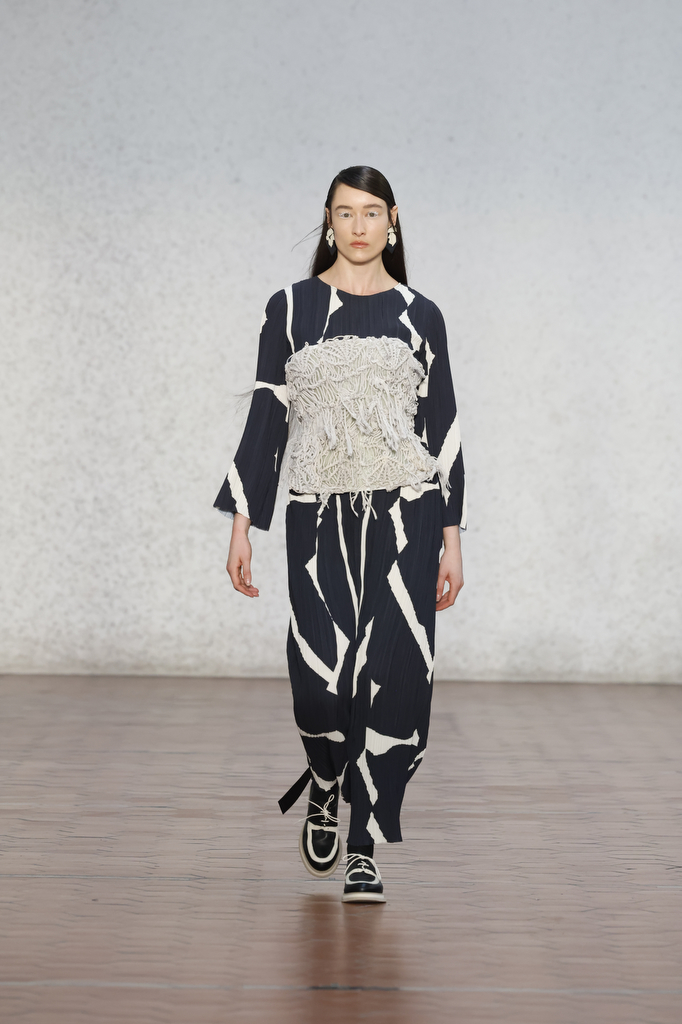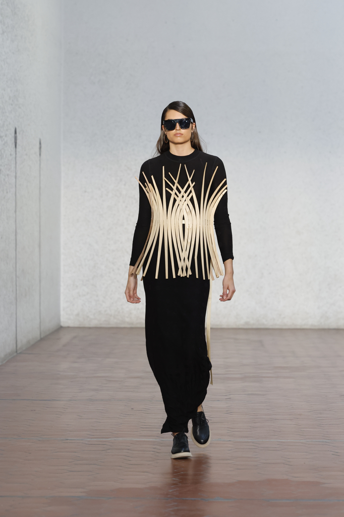 - L’usage du bois du zesta punta, sculpté et inséré dans des vêtements, apportant une rigidité organique aux silhouettes contemporaines.
