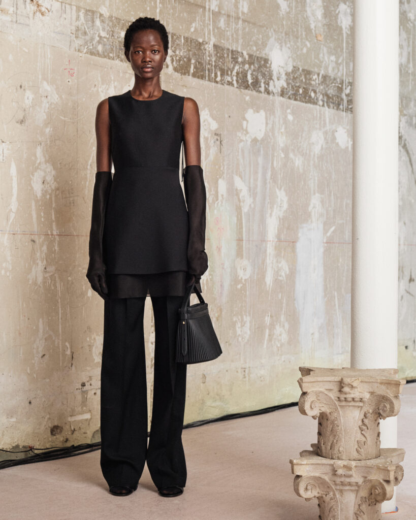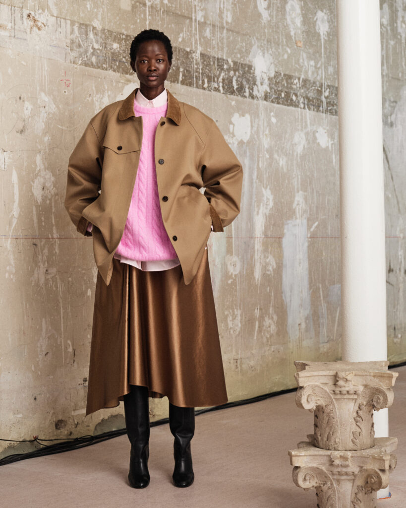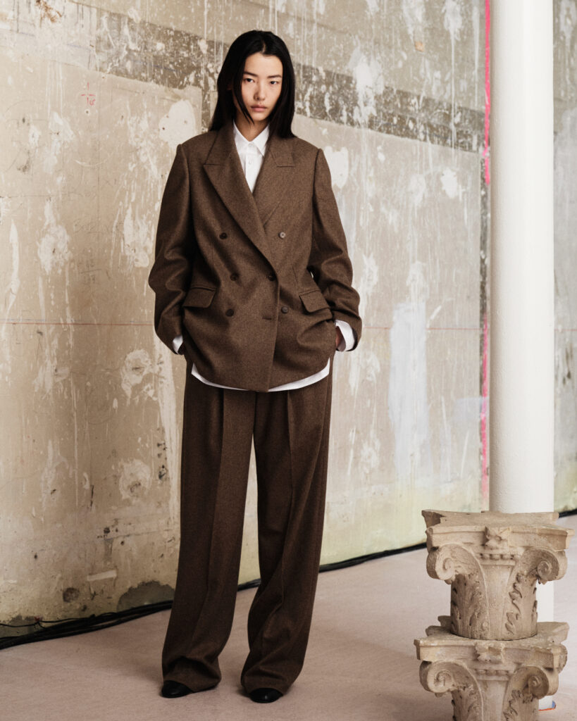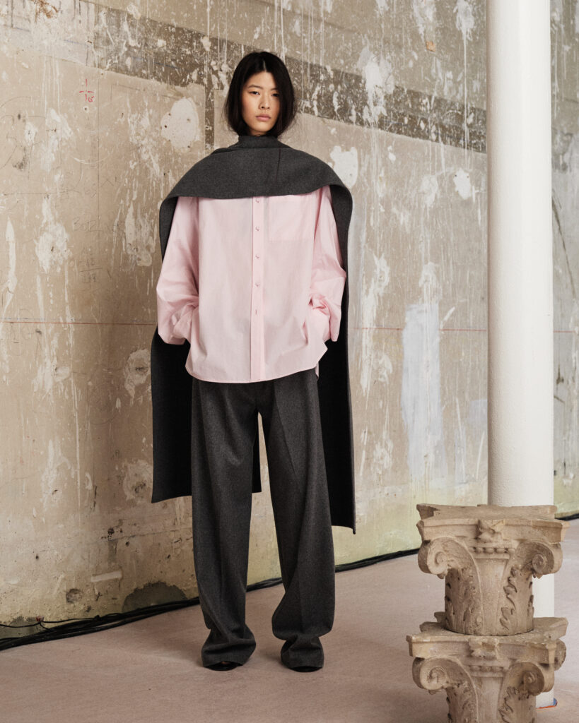 La mise en scène de la collection reproduit un intérieur épuré et chaleureux, où les vêtements prennent vie dans un univers de poésie et de sérénité.