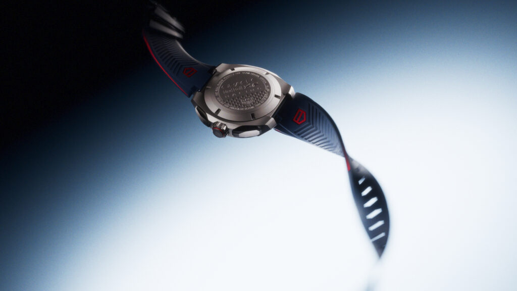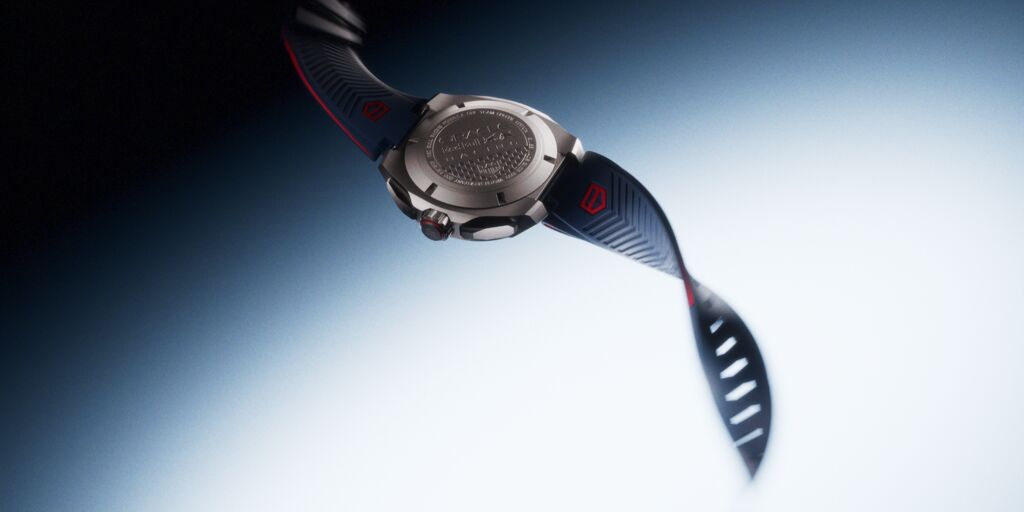 Édition spéciale avec un boîtier en titane et un cadran bleu opalin orné de motifs à damiers.