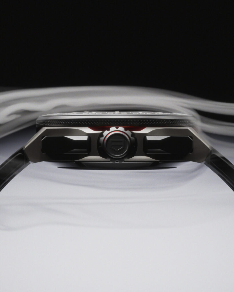Lunette tachymétrique en aluminium ou carbone forgé : Rappelant les disques de frein des voitures de F1.