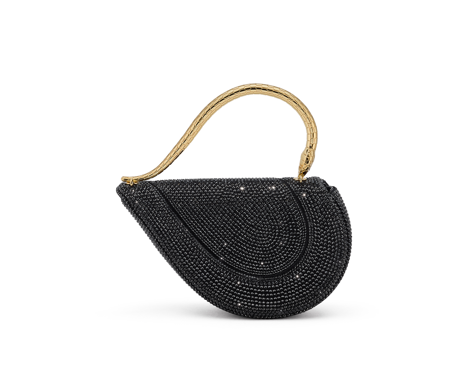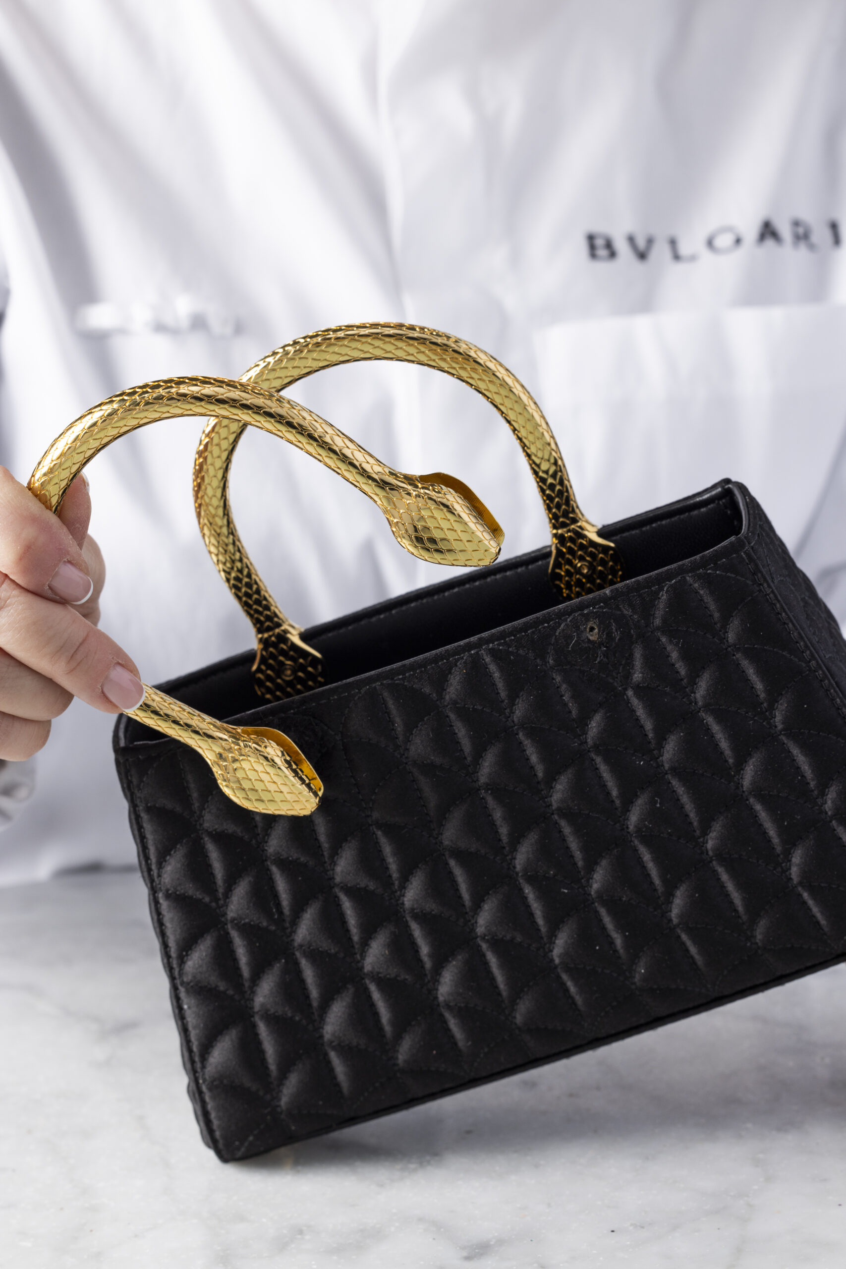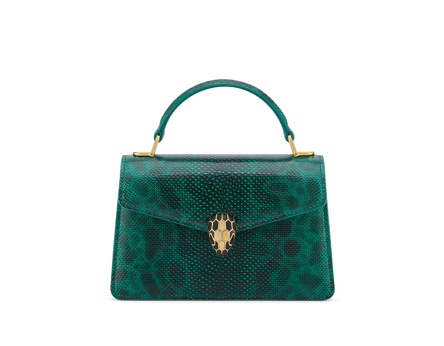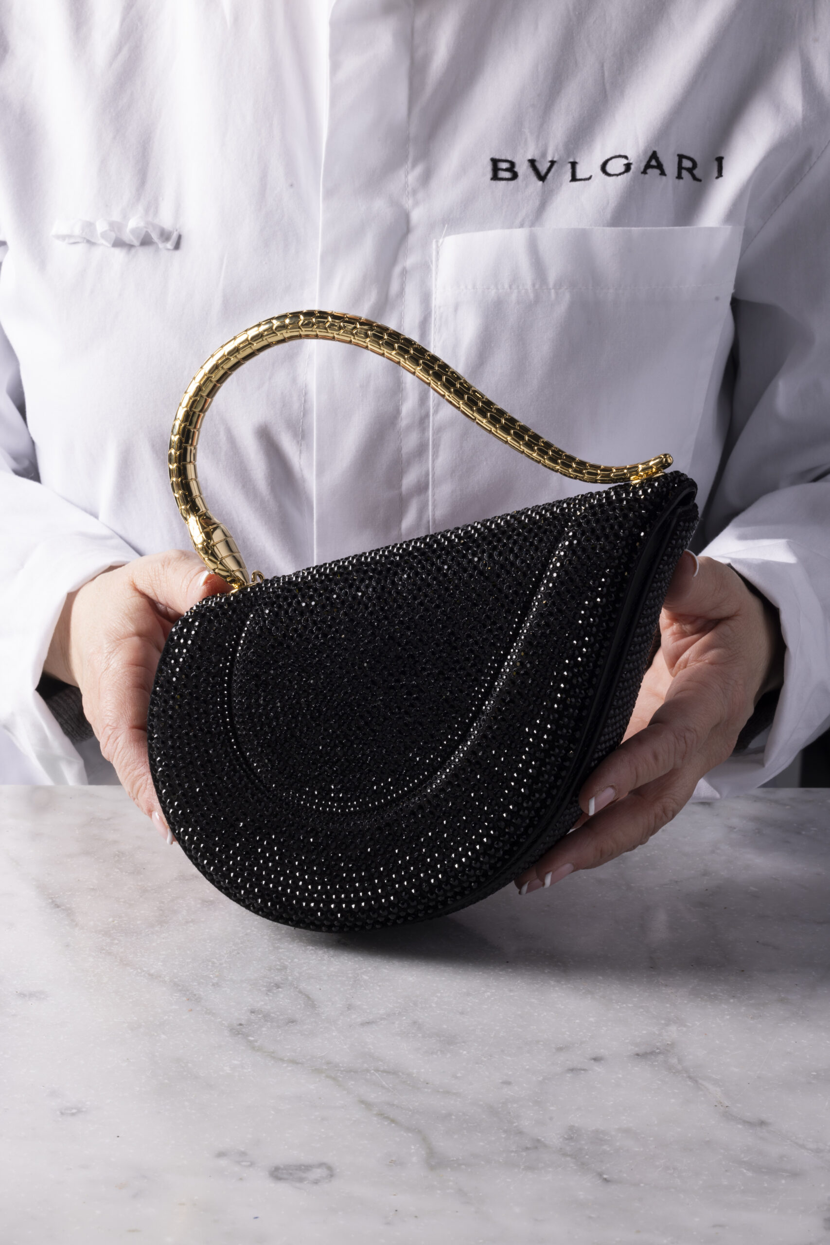 Le sac Serpenti Cuore 1968, par exemple, est une déclaration d’amour à l’icône Serpenti. Inspiré par la montre joaillière Bvlgari Serpenti Harlequin de 1968, ce sac en forme de cœur symbolise les métamorphoses infinies et le charme magnétique de la Maison. La poignée métallique en forme de serpent, ornée d’émaux multicolores, est un véritable chef-d’œuvre d’artisanat, réalisé grâce à la technique de la « cire perdue », une tradition profondément ancrée dans le savoir-faire joaillier de Bvlgari.
