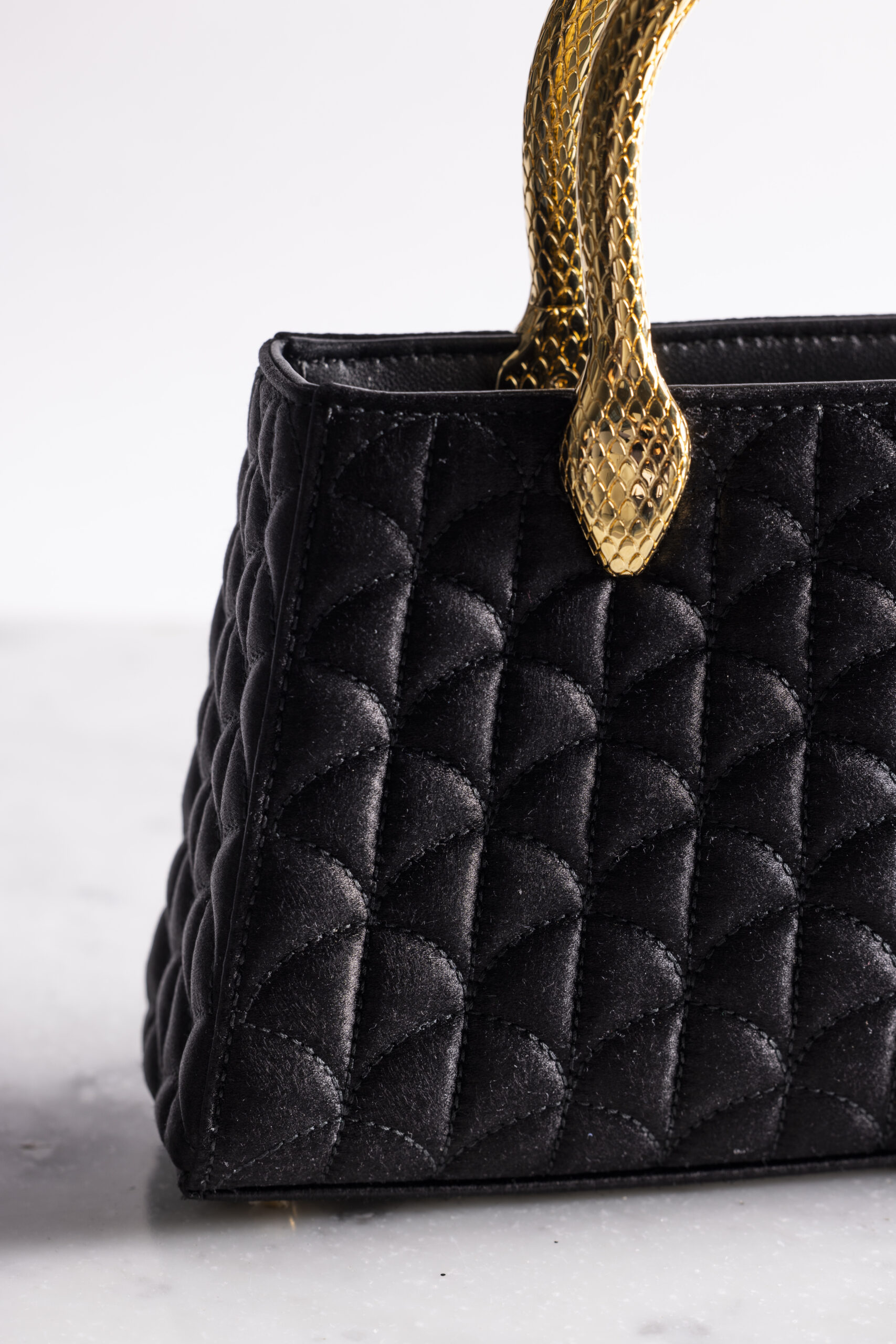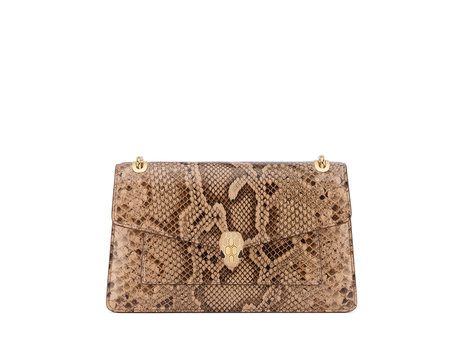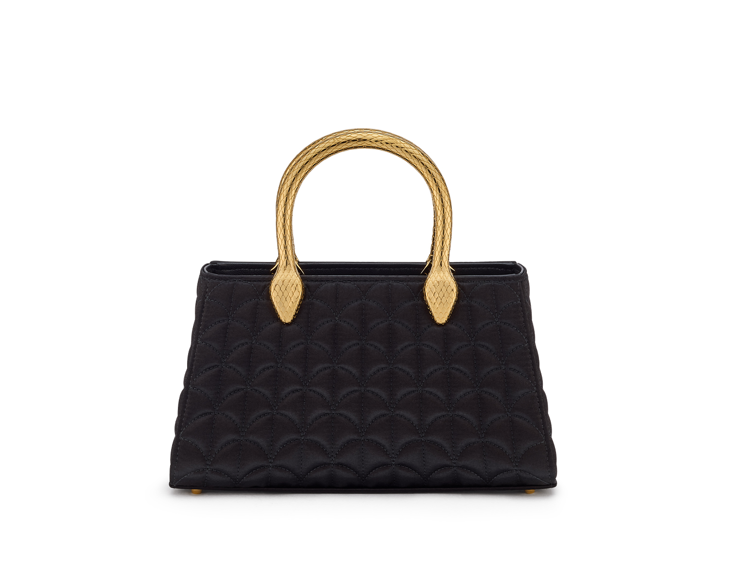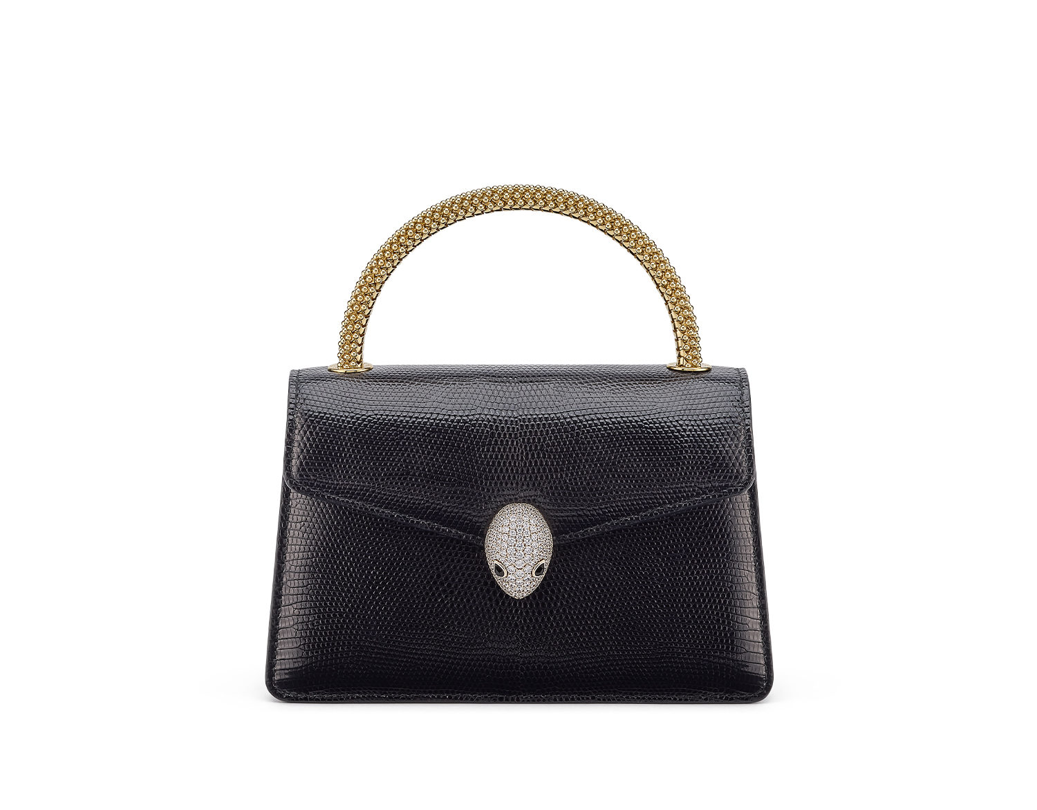 Le sac Serpenti Cuore 1968, par exemple, est une déclaration d’amour à l’icône Serpenti. Inspiré par la montre joaillière Bvlgari Serpenti Harlequin de 1968, ce sac en forme de cœur symbolise les métamorphoses infinies et le charme magnétique de la Maison. La poignée métallique en forme de serpent, ornée d’émaux multicolores, est un véritable chef-d’œuvre d’artisanat, réalisé grâce à la technique de la « cire perdue », une tradition profondément ancrée dans le savoir-faire joaillier de Bvlgari.
