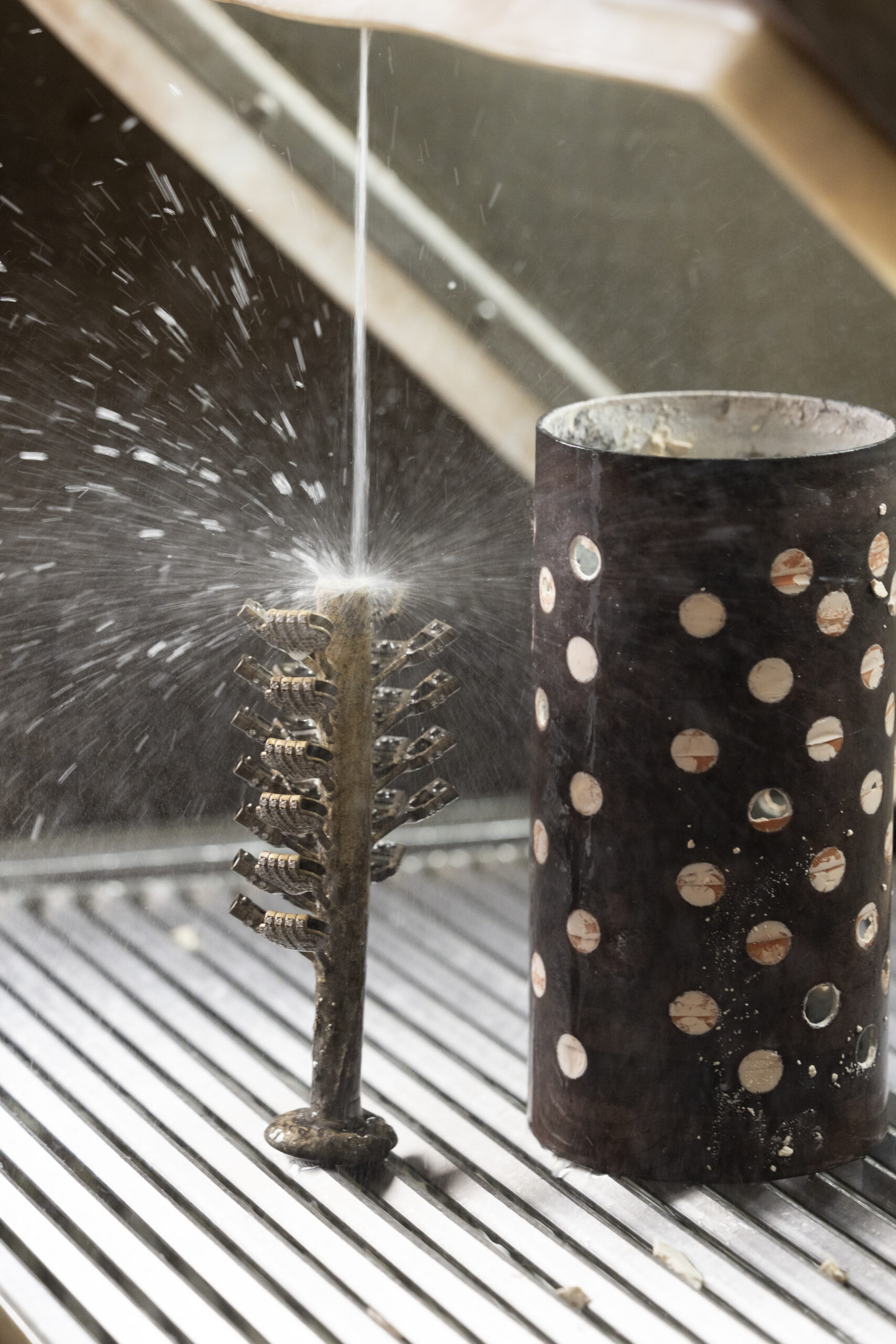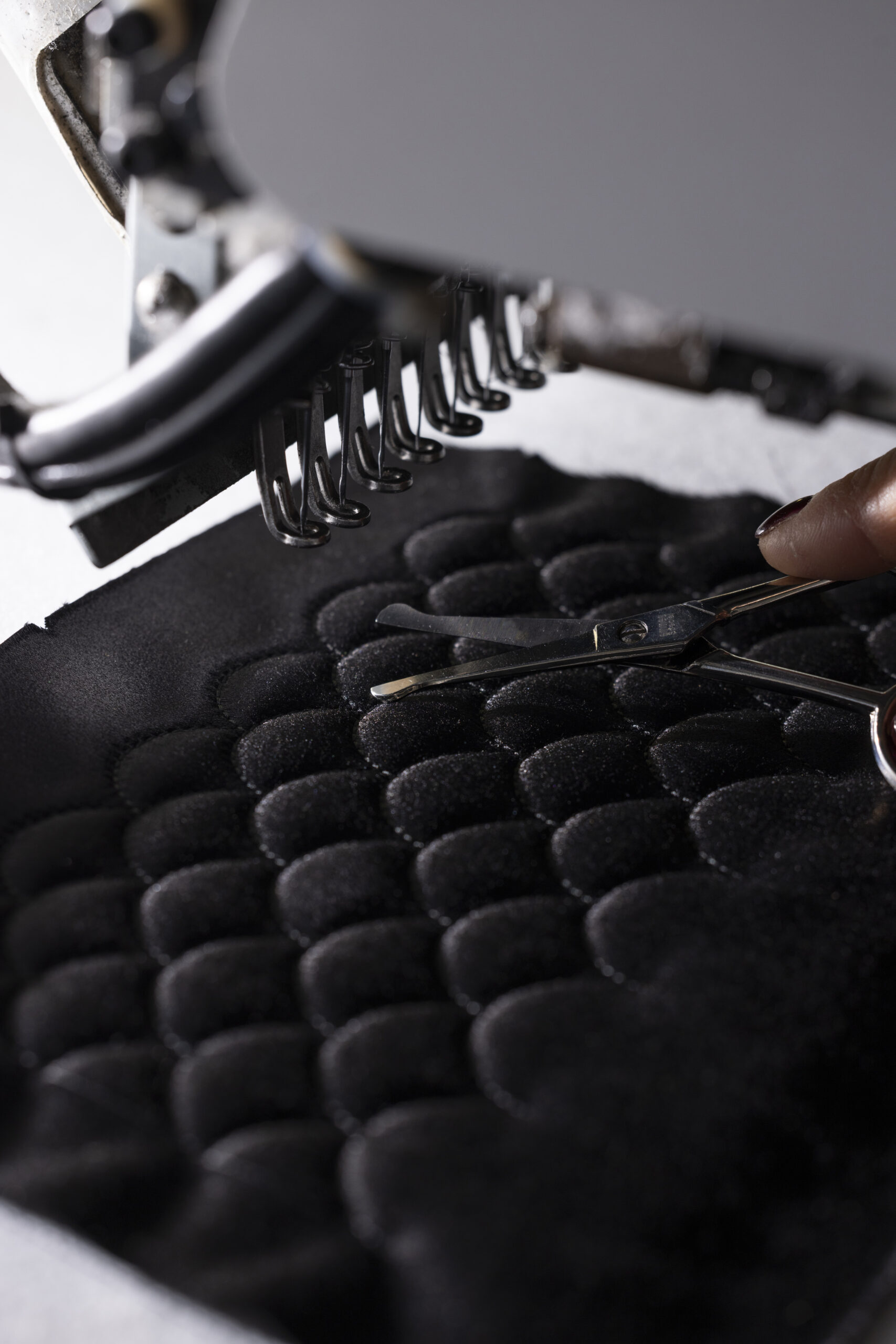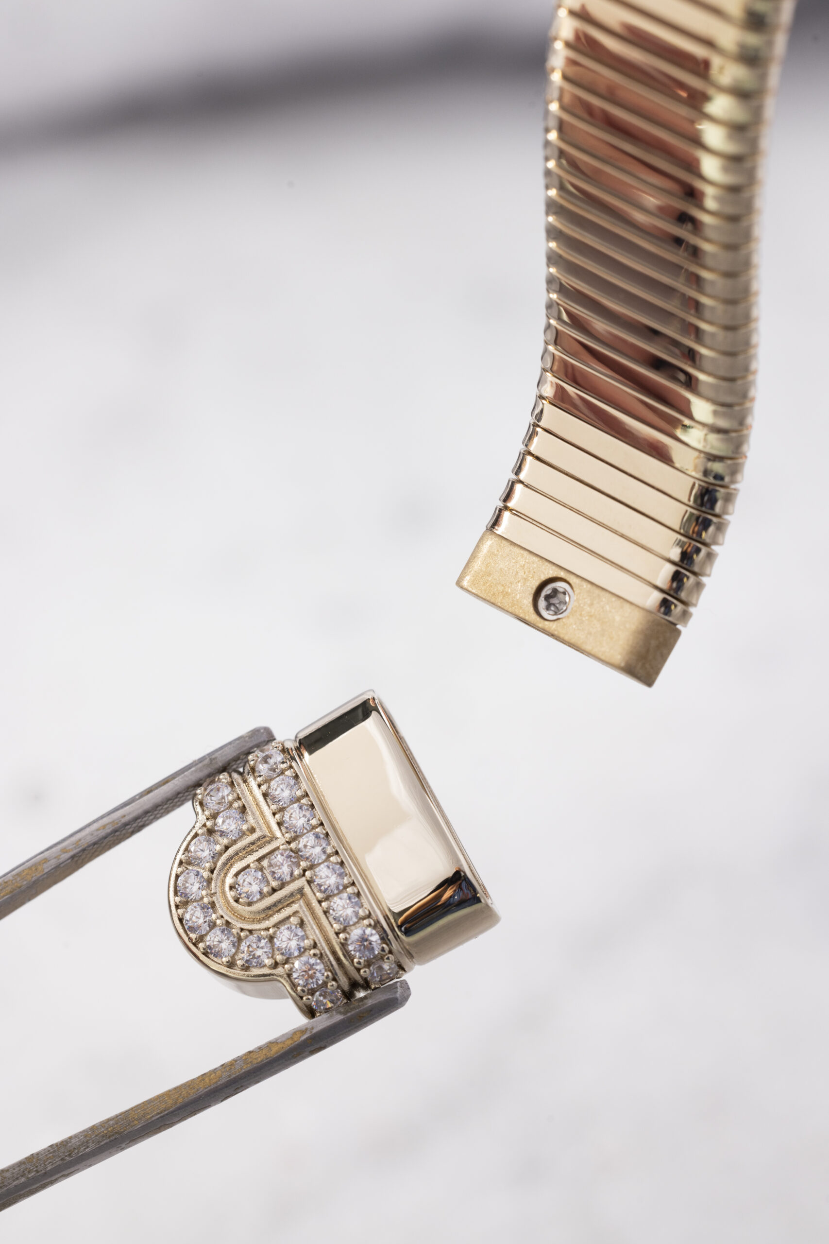 La collection Automne-Hiver 2025 est un véritable hommage à l’excellence et à l’artisanat d’art. Chaque pièce est le fruit d’un savoir-faire d’exception, où les techniques complexes de joaillerie fusionnent avec l’art du travail du cuir. La pochette Bvlgari Tubogas, par exemple, est conçue avec une poignée métallique reproduisant fidèlement les spires flexibles d’inspiration industrielle de Tubogas, une technique d’orfèvrerie signature de la Maison depuis les années 1940.