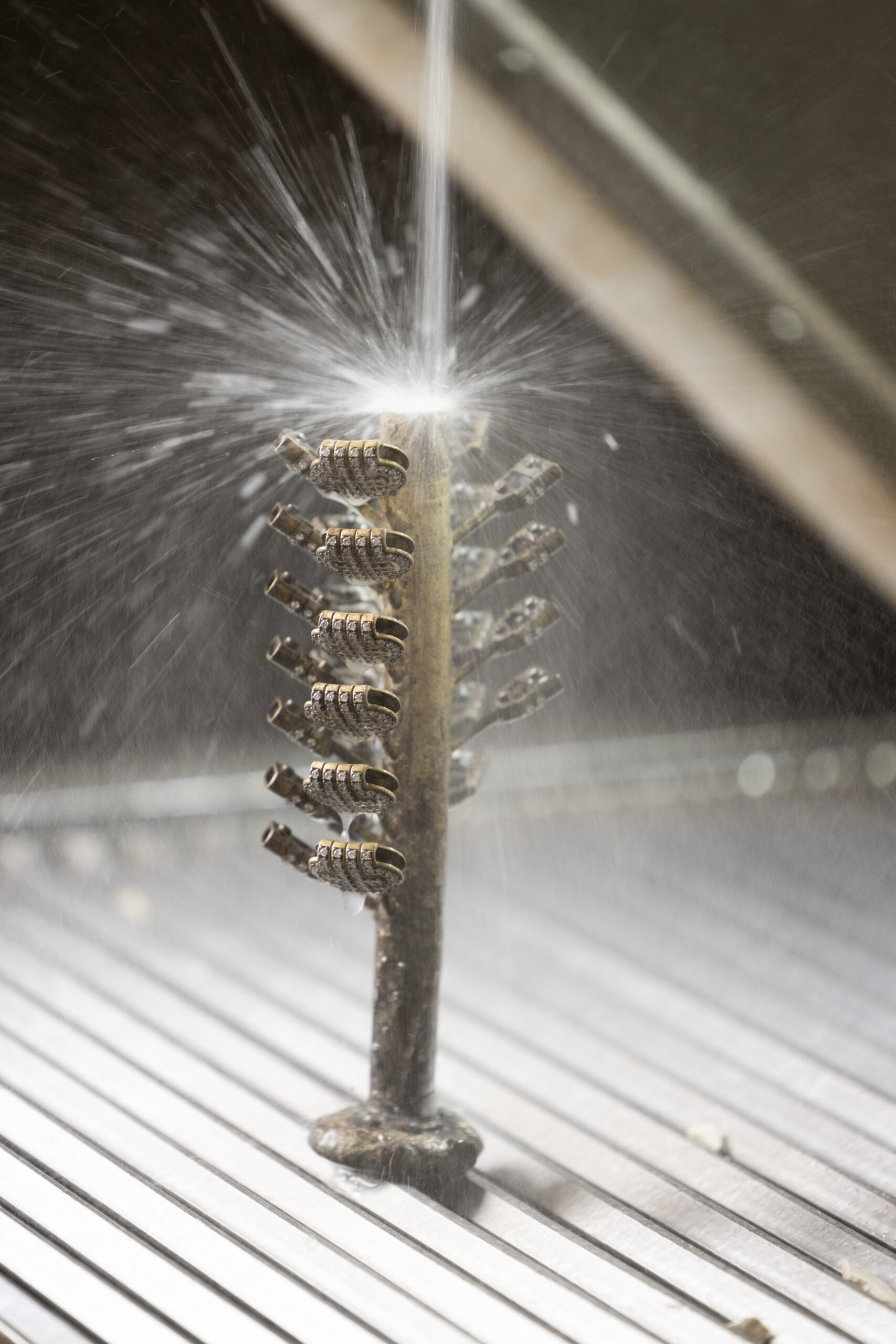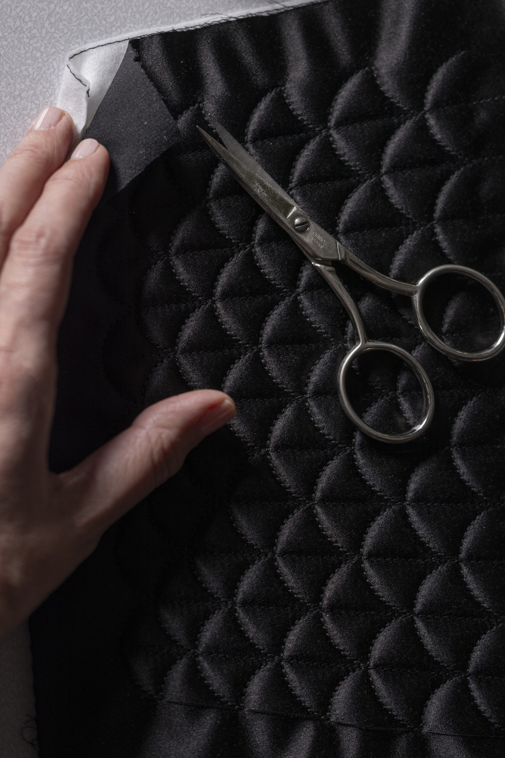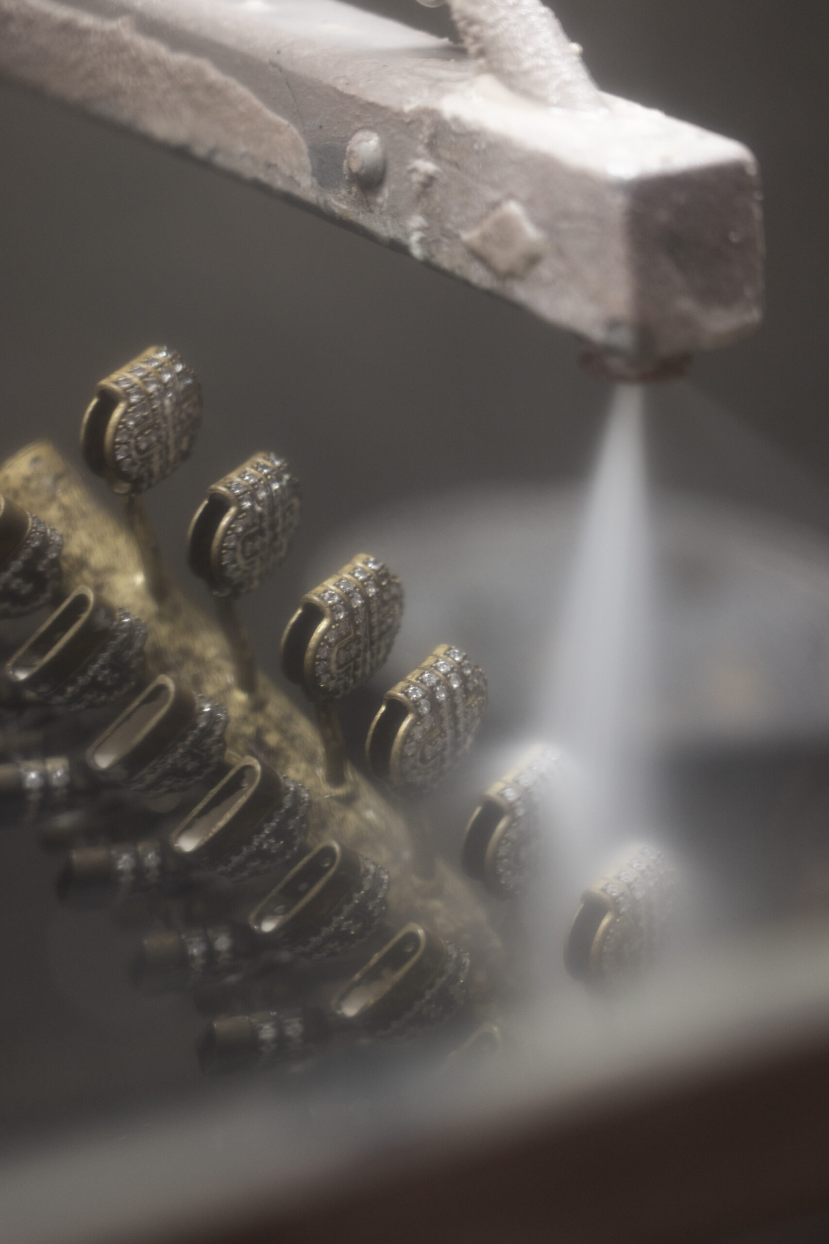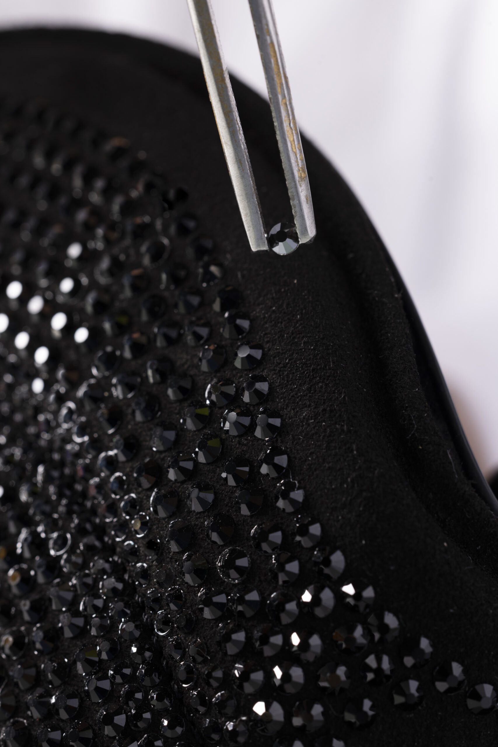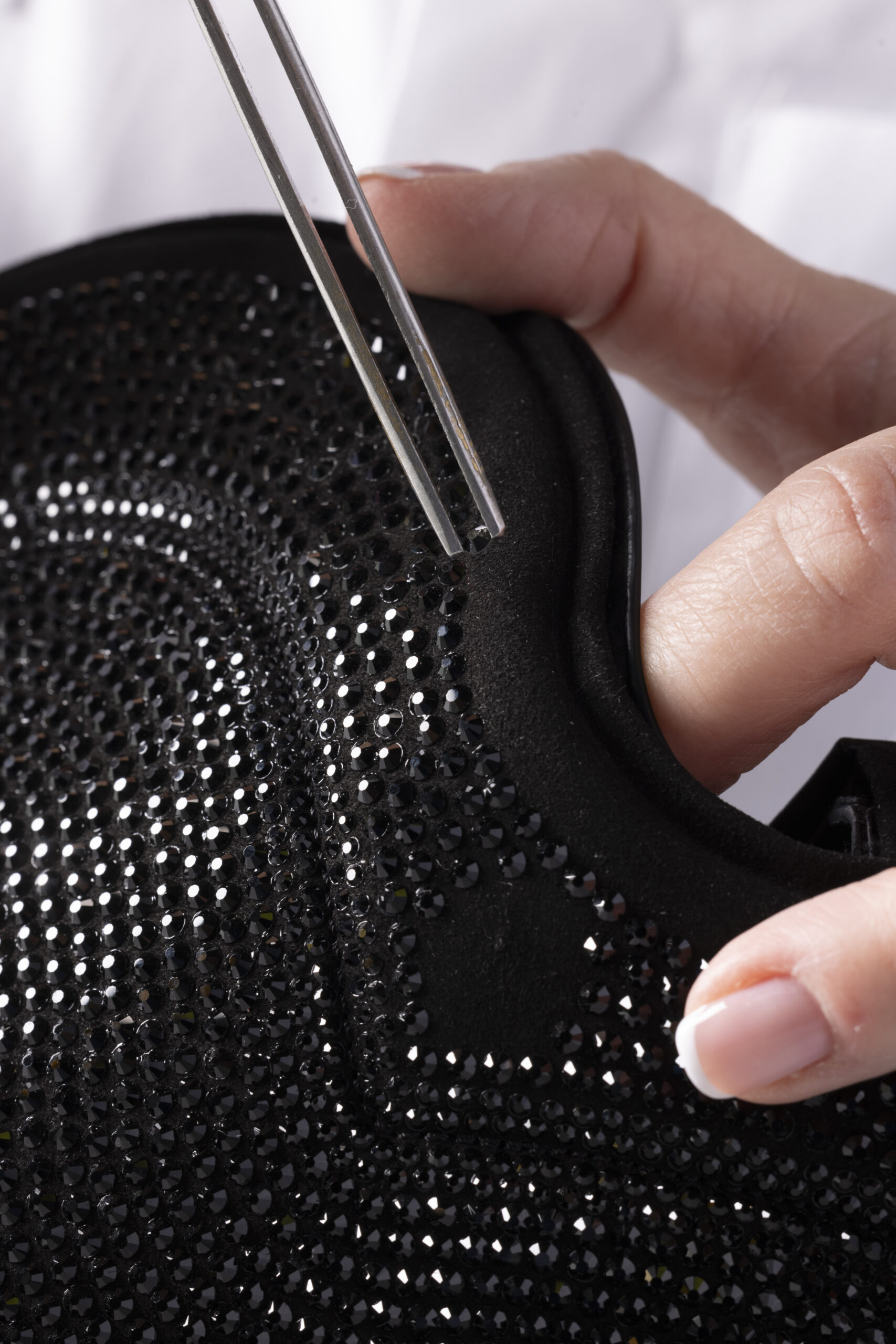 Introduit par Mary Katrantzou, le motif Calla est une signature visuelle de la collection. Inspiré par l’histoire et le cœur de Rome, ce motif symbolise le pouvoir de la féminité et l’universalité. Pour la saison Automne-Hiver 2025, le motif Calla revient sous la forme de l’étincelant Calla Crystals, où des centaines de cristaux couleur topaze et platine sont habilement appliqués un à un, rappelant les mosaïques polychromes des thermes de Caracalla.