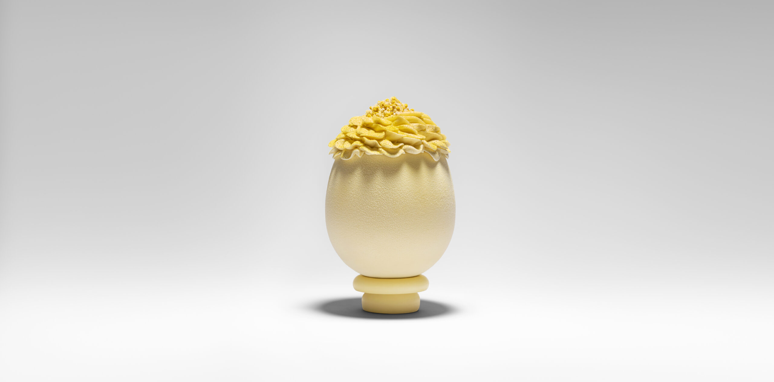 Naraé Kim ne se contente pas de proposer un dessert, elle signe une œuvre d’art gustative, où chaque élément raconte une histoire de patience, de passion et de perfection. Son Œuf Mimosa capture l’esprit de Pâques avec une modernité élégante, offrant une expérience où le luxe se niche dans le détail et la subtilité.