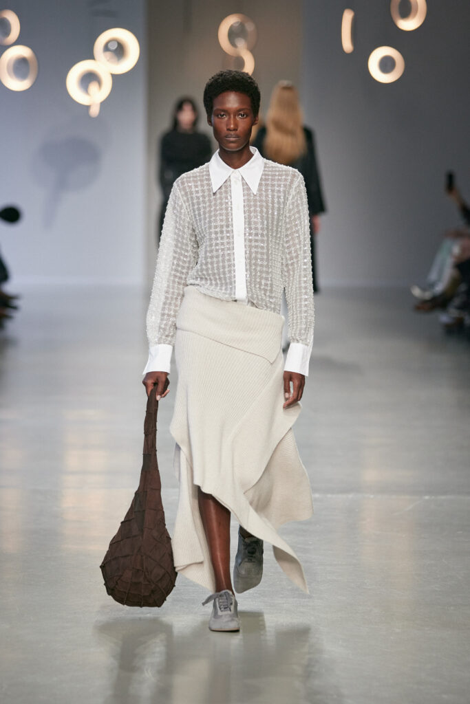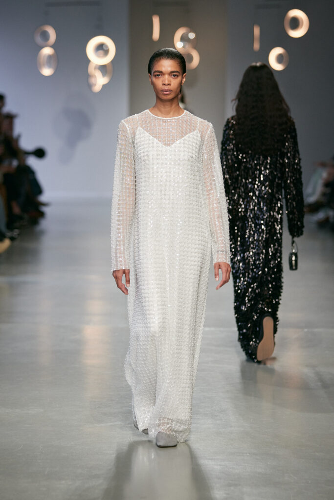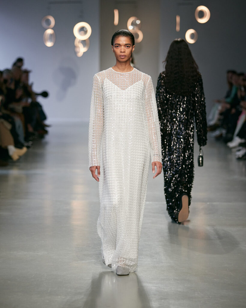 L’éphémère et l’intemporel se croisent dans une silhouette mouvante. Pour l’automne-hiver 2025/26, Niccolò Pasqualetti explore une beauté fragile, où la force réside dans ce qui reste après la disparition de l’instant.