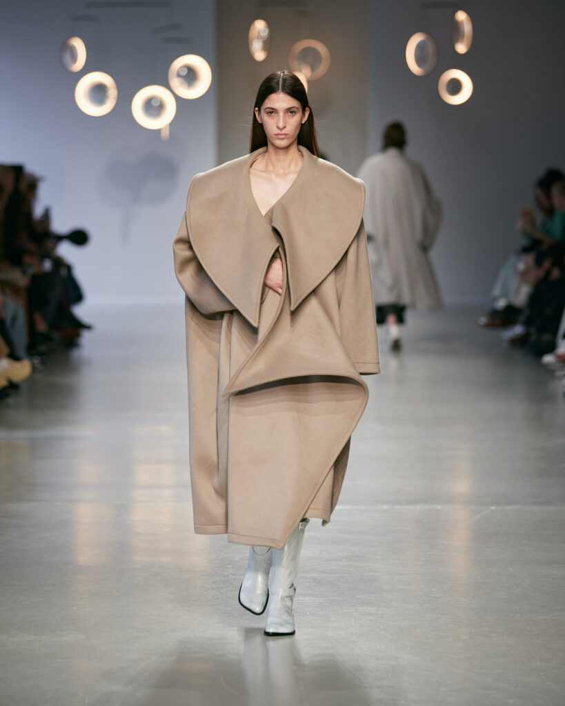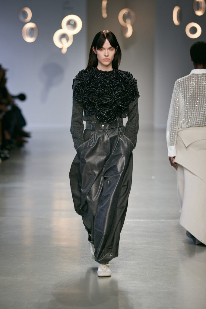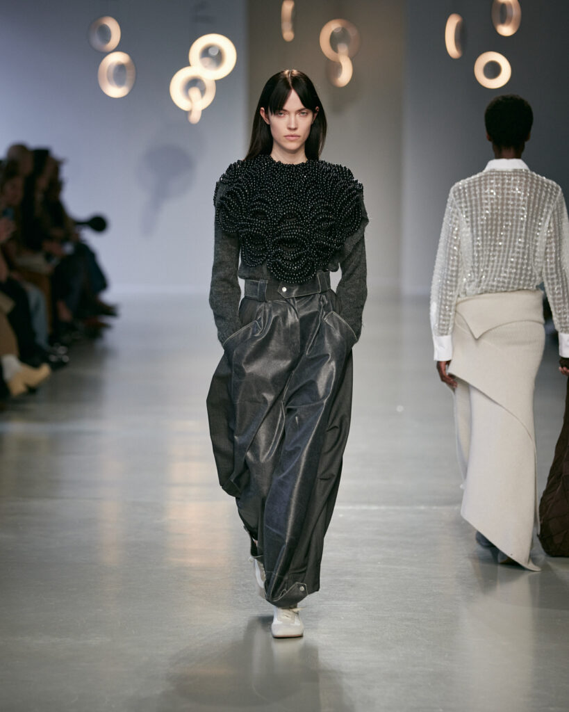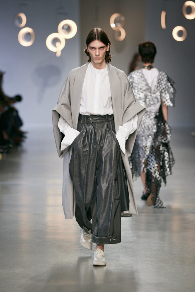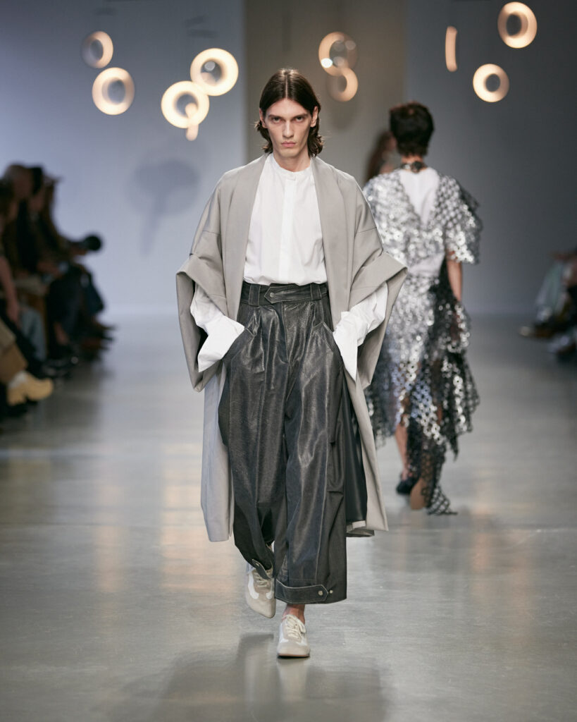 Avec cette collection, Niccolò Pasqualetti continue de bâtir un vestiaire à la frontière du vêtement et de la sculpture, où chaque couture interroge l’espace, le temps et le corps.
