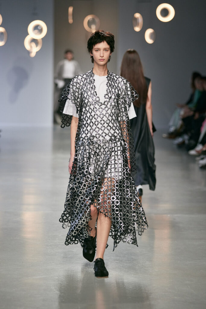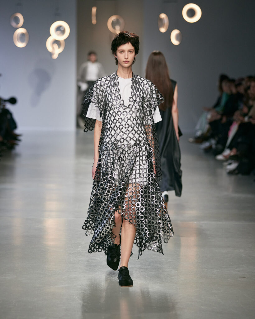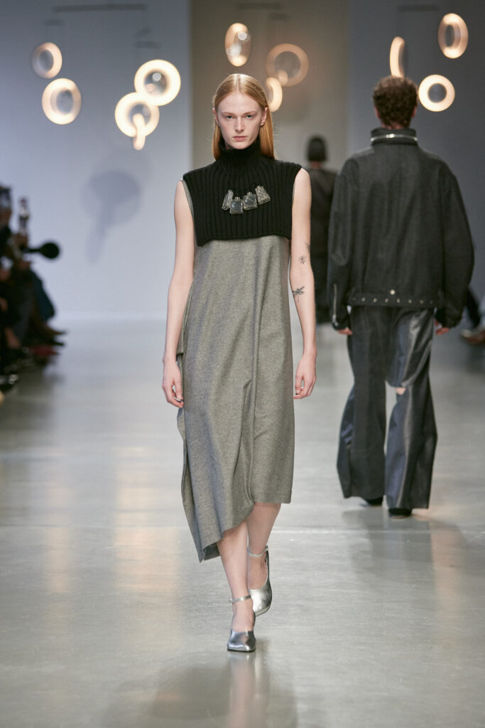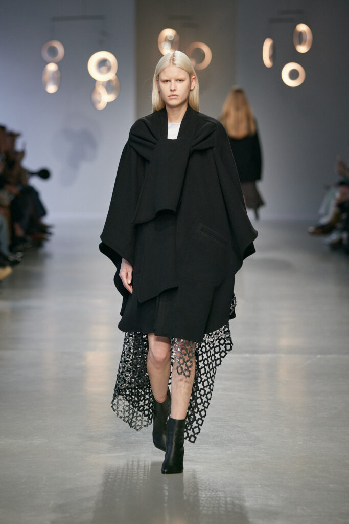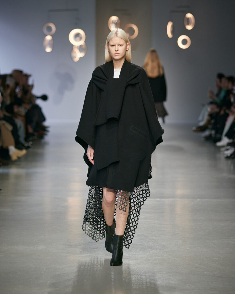 Avec cette collection, Niccolò Pasqualetti continue de bâtir un vestiaire à la frontière du vêtement et de la sculpture, où chaque couture interroge l’espace, le temps et le corps.