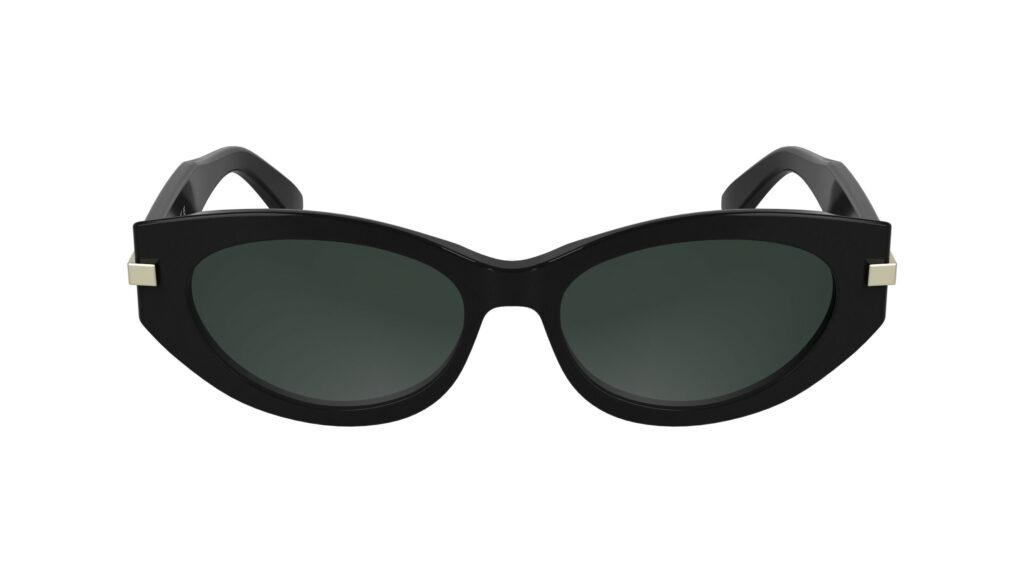 Le CK25502S ose une silhouette cat-eye assumée, jouant sur des volumes sophistiqués et des teintes raffinées, de l’Opaline Beige au Havana. Sur les branches, une plaque métallique se prolonge élégamment jusqu’aux tenons, signée du logo Calvin Klein gravé au laser.