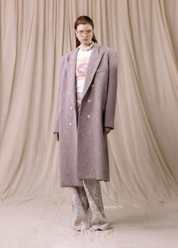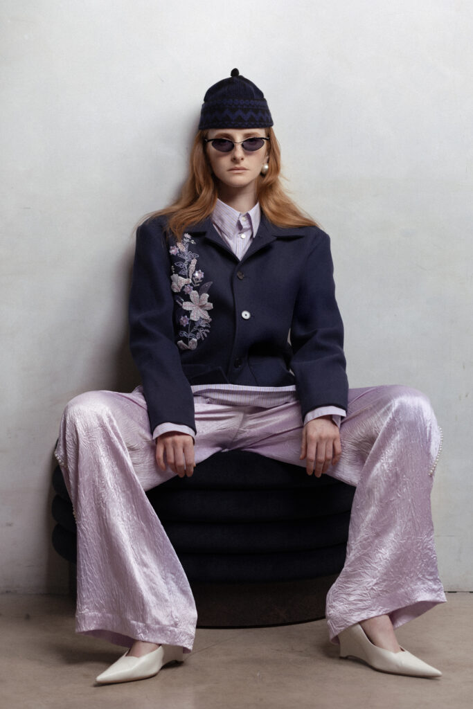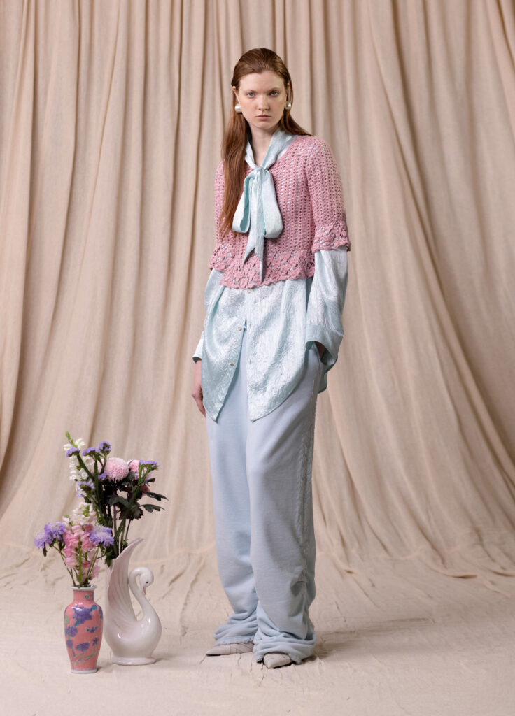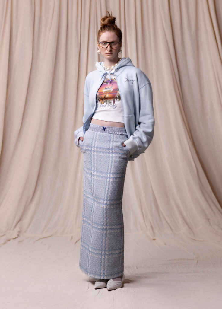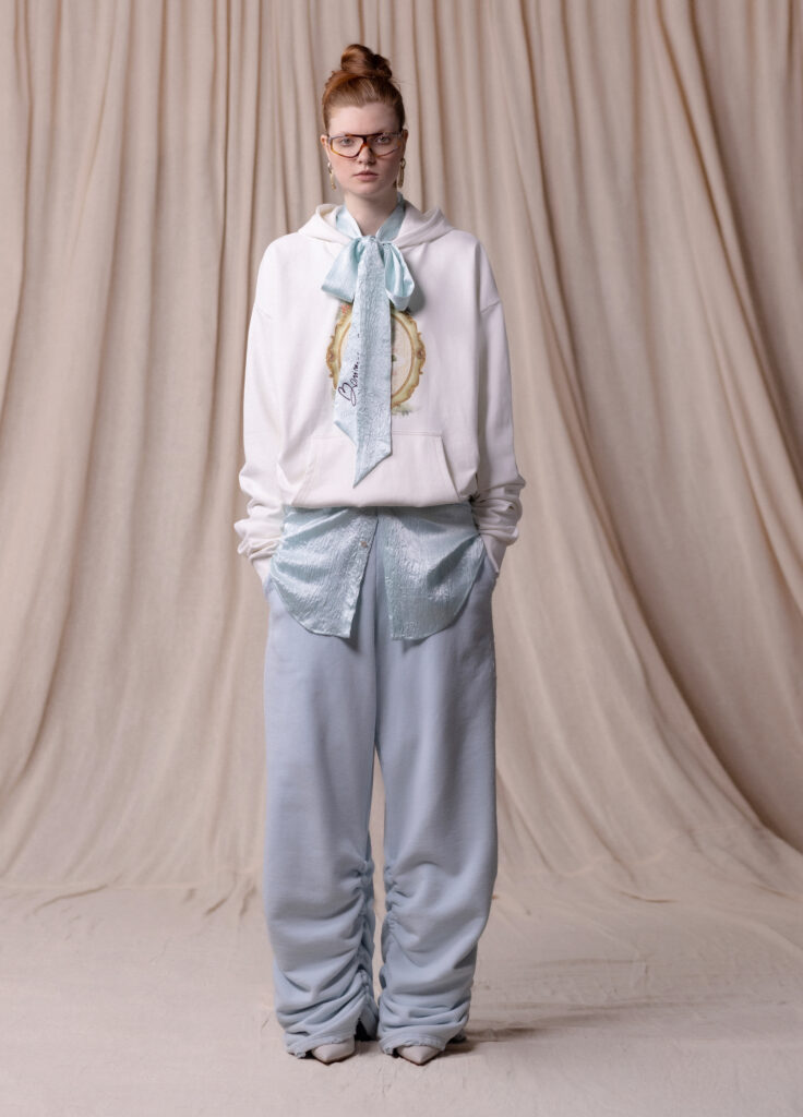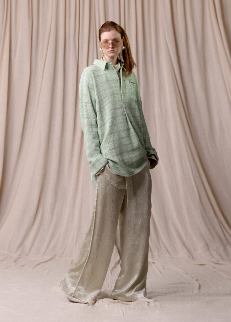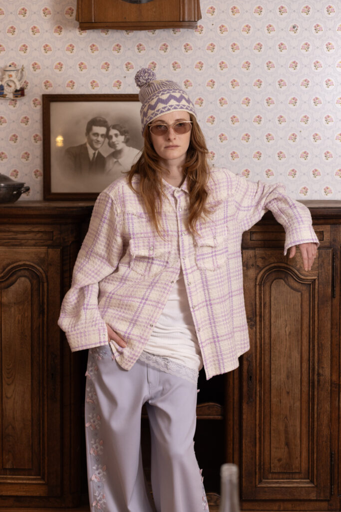 Inspirée par l’idée d’une jeune fille qui emprunte les vêtements de sa grand-mère et les mixe à ses pièces urbaines, la collection joue sur les contrastes de styles et d’époques, construisant une silhouette cool, espiègle et insoumise.