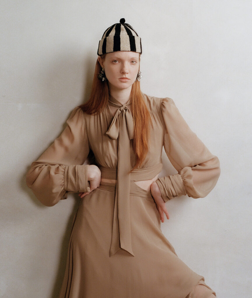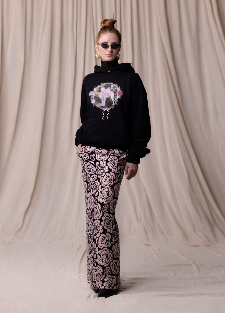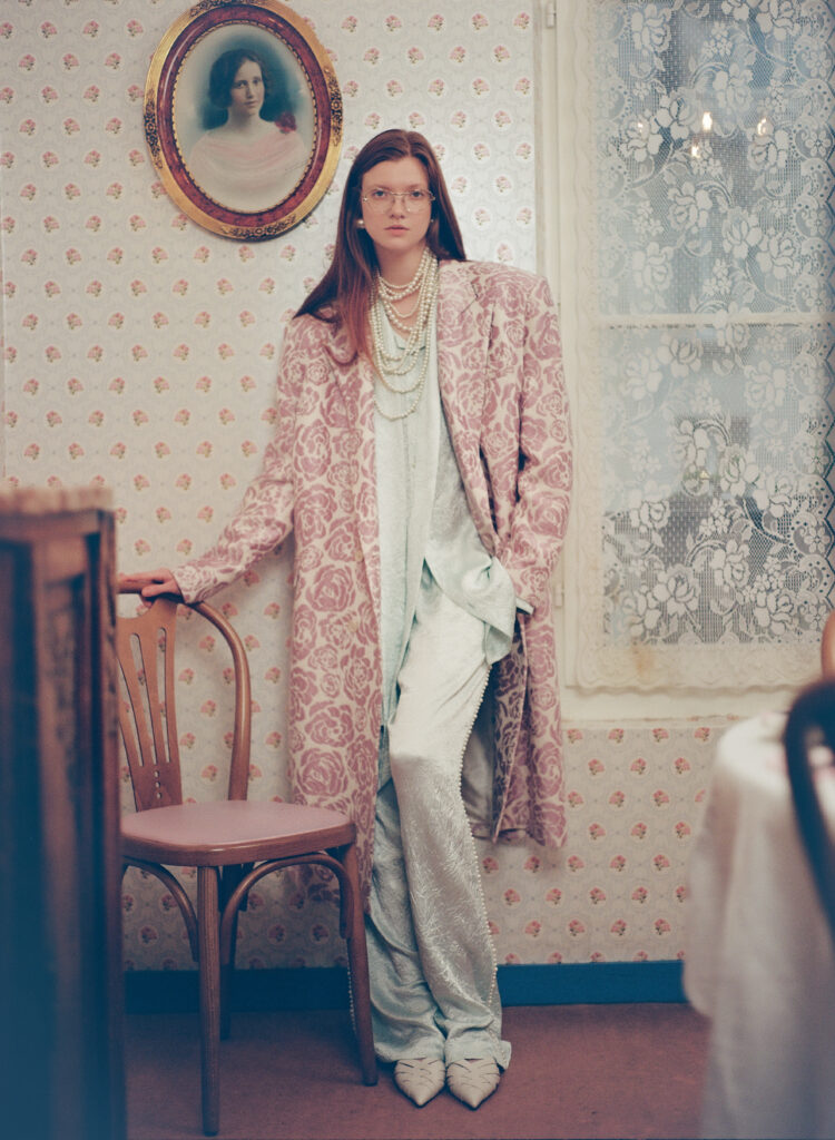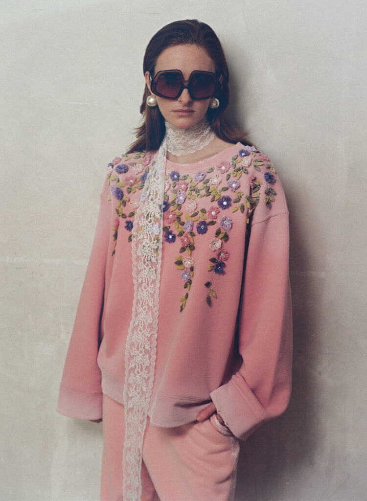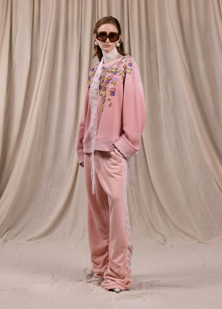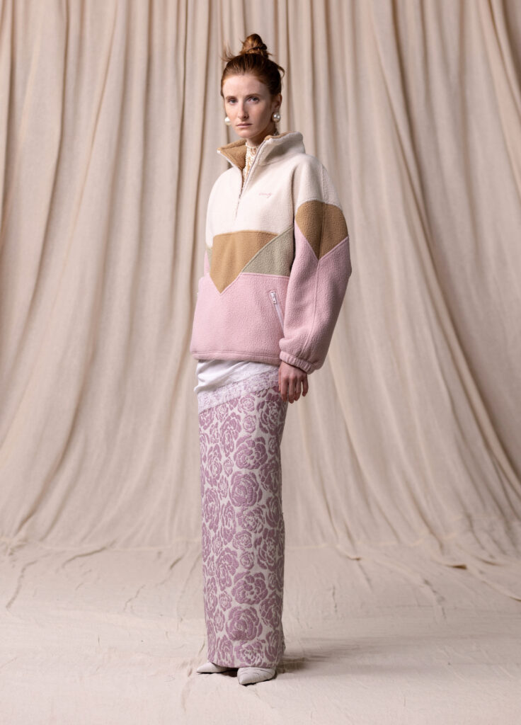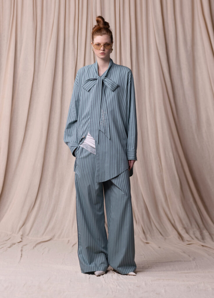 Inspirée par l’idée d’une jeune fille qui emprunte les vêtements de sa grand-mère et les mixe à ses pièces urbaines, la collection joue sur les contrastes de styles et d’époques, construisant une silhouette cool, espiègle et insoumise.