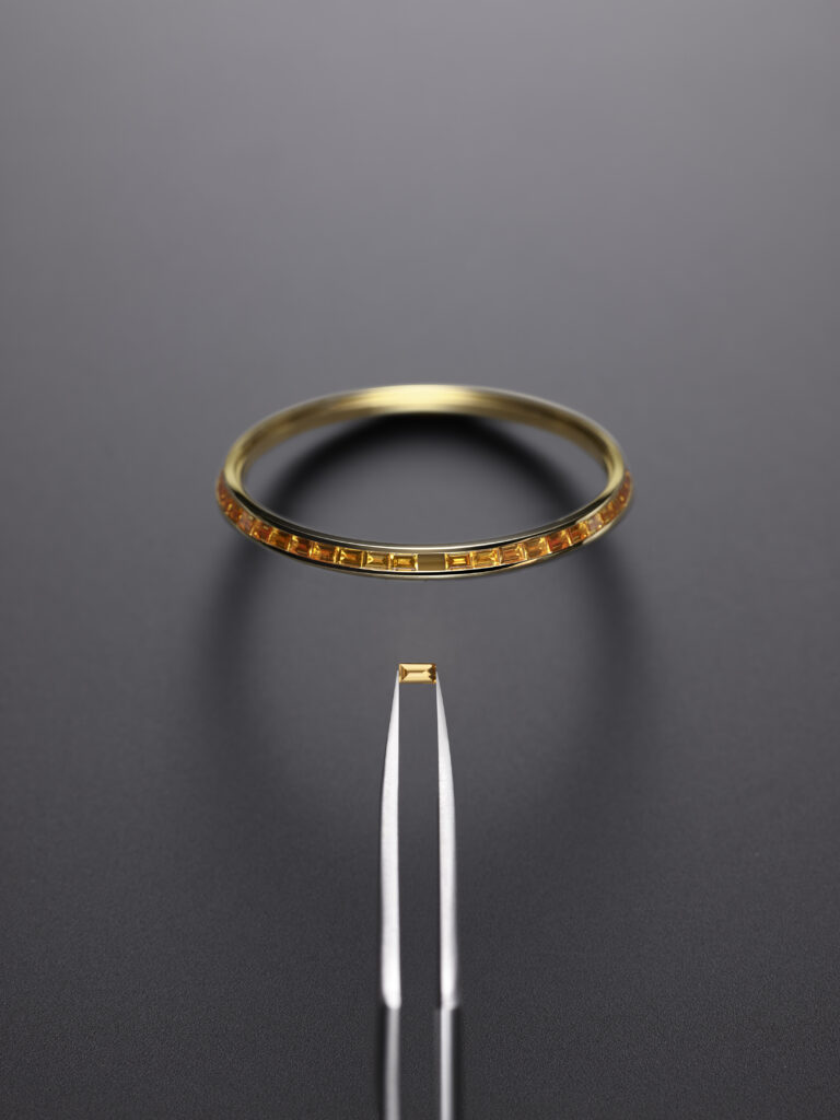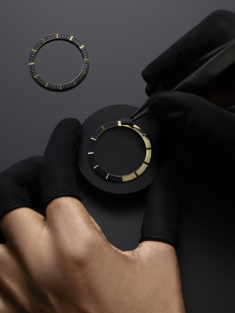 Le platine, métal d’une densité rare, impose un défi technique de taille. Son usinage demande 30 % de temps supplémentaire par rapport à l’or, et son polissage, notamment des chanfreins et de la lunette, exige une maîtrise artisanale absolue. Mais le résultat est magistral : une brillance froide et sophistiquée qui sublime un sertissage multicolore d’exception.