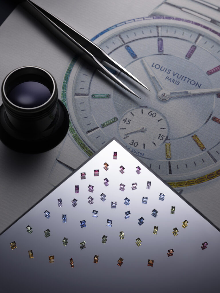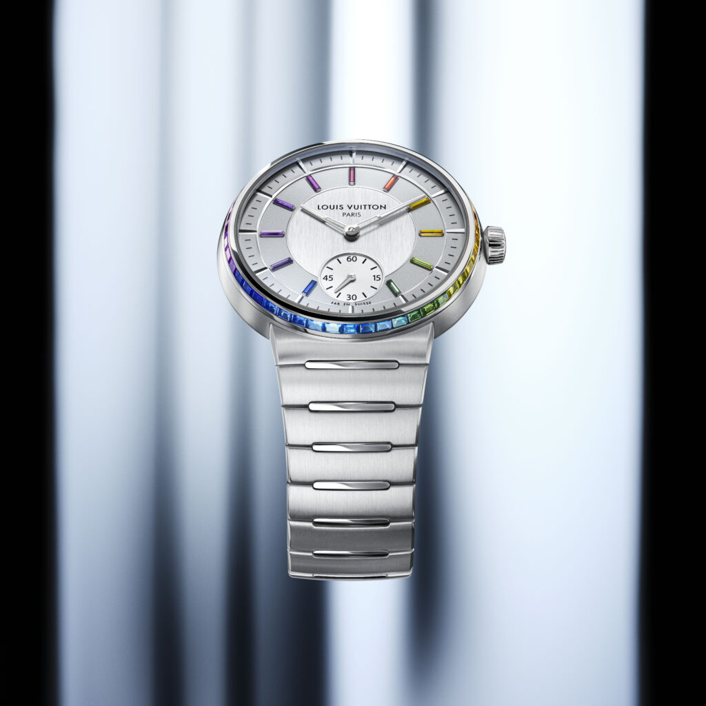 La montre Tambour, déjà emblématique, franchit ici un seuil supérieur en matière de sophistication. En conjuguant haute horlogerie, gemmologie et une approche contemporaine du design, Louis Vuitton impose une fois de plus sa vision du luxe absolu.