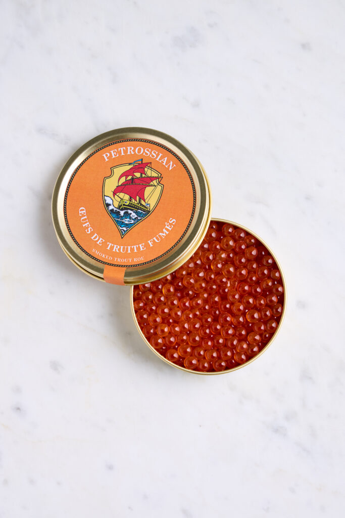 - Un fumage traditionnel : Héritage d’un procédé artisanal, ce fumage subtil sublime les notes iodées et beurrées des œufs de truite, leur apportant une longueur en bouche inédite.