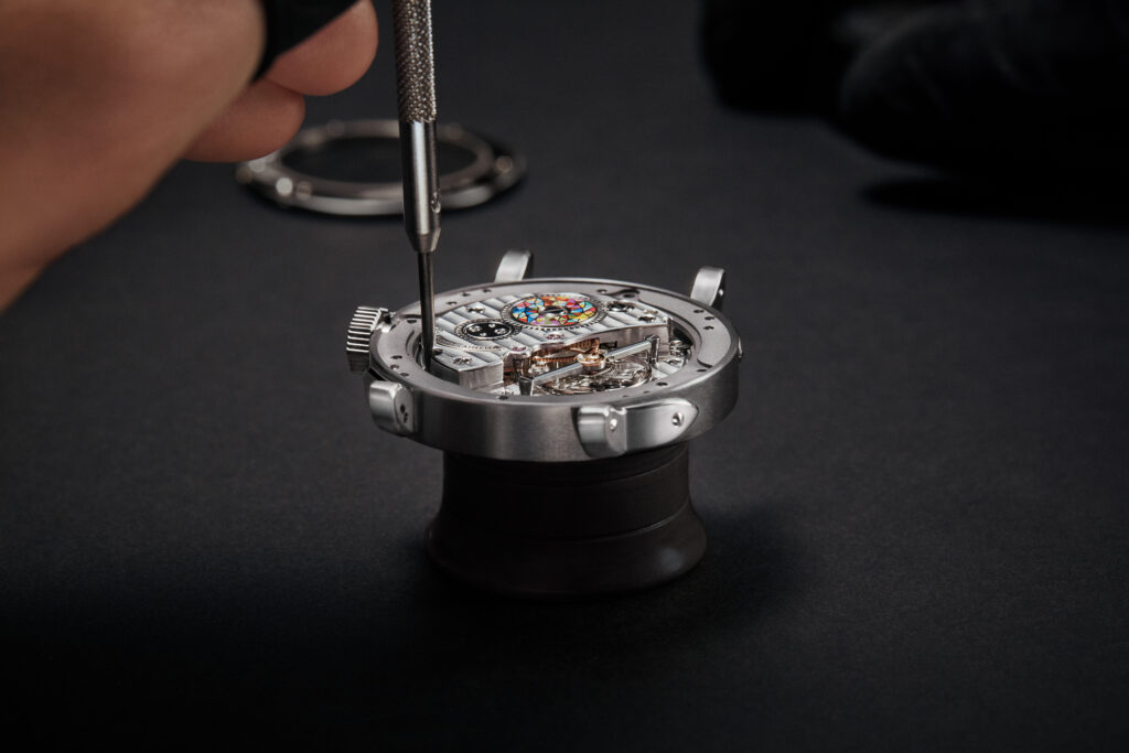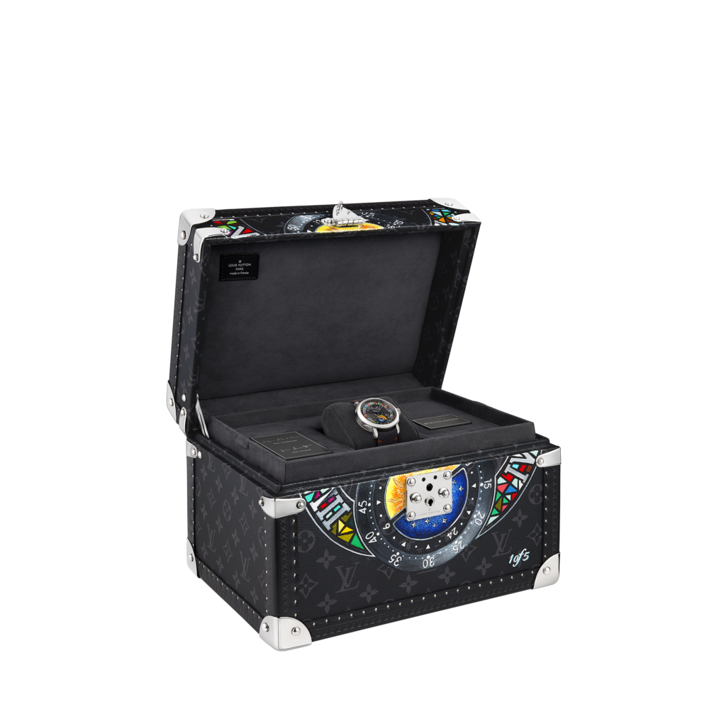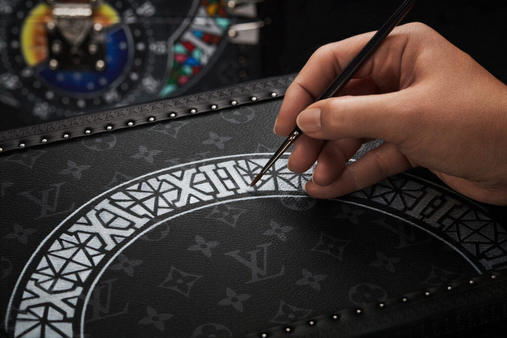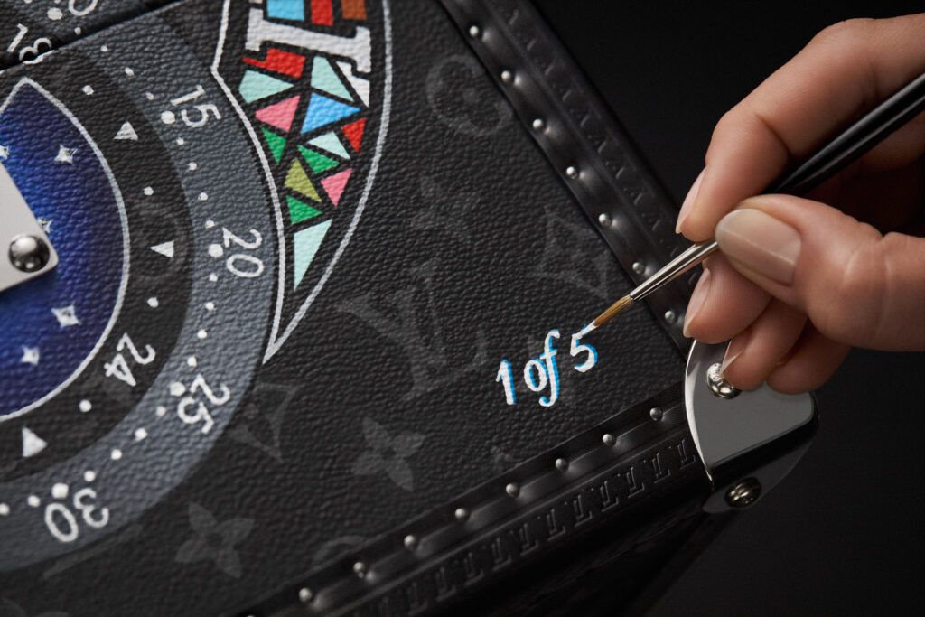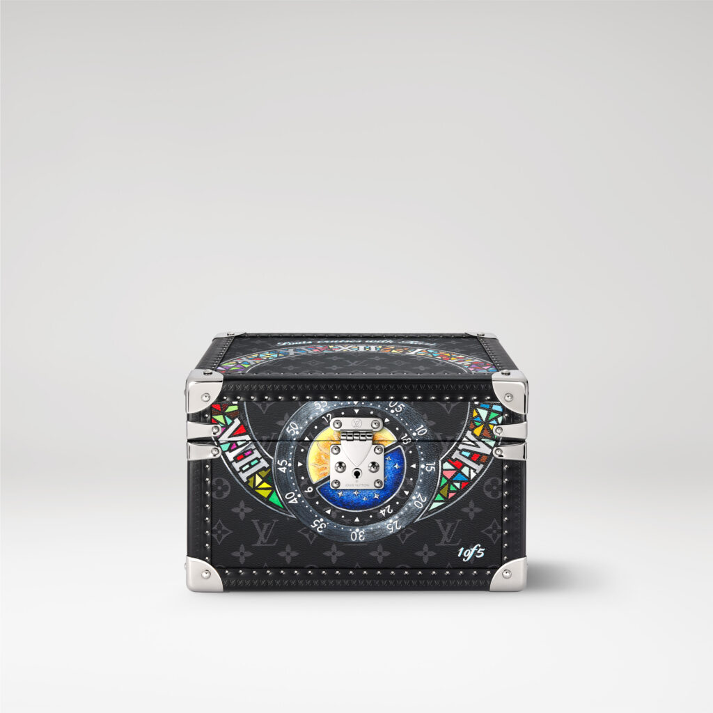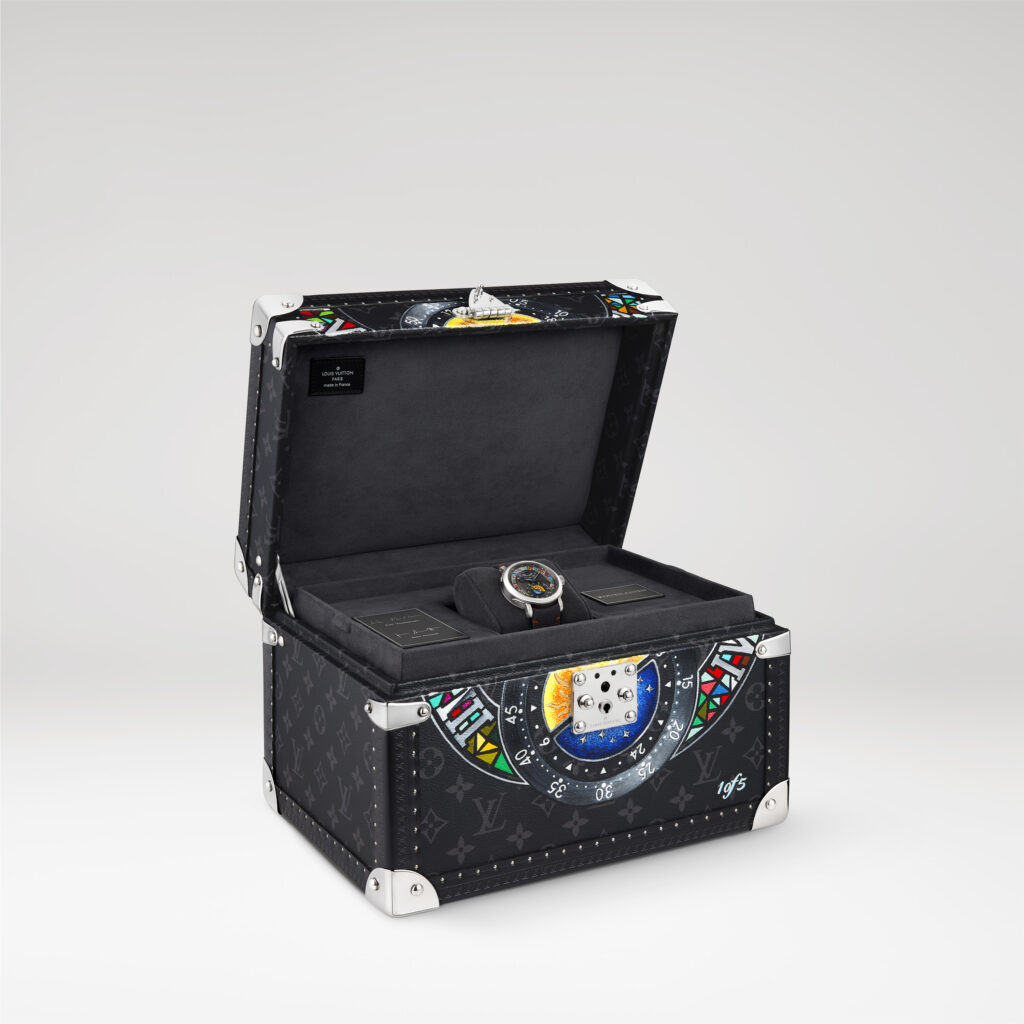 Chaque LVKV-02 GMR 6 est livrée dans une malle Louis Vuitton peinte à la main, fabriquée dans les ateliers d’Asnières, cœur historique de la Maison. Inspirée du cadran de la montre, cette malle numérotée n’est pas un simple contenant, mais une œuvre d’art fonctionnelle, incarnant l’ADN malletier et la vocation voyageuse du projet.