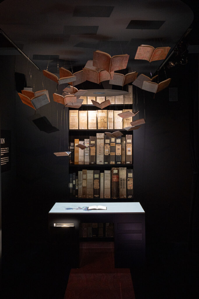 L’exposition s’est déployée en trois salles plongées dans l’obscurité, offrant une expérience sensorielle librement explorée. Chaque espace illustrait une facette du parcours d’Arnica :