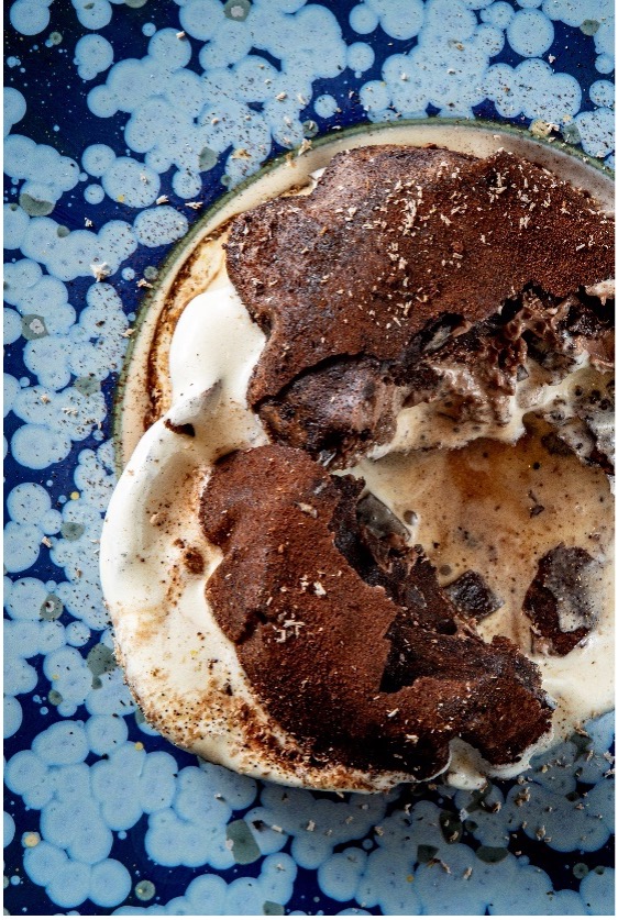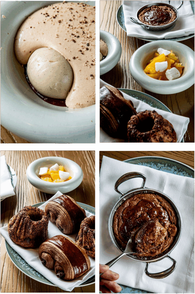 Deux créations sucrées viennent sublimer l’expérience : un Chocolat liégeois en meringue nuageuse et un Opposé de tartelettes au sabayon à la liqueur de cacao, signées à quatre mains par Aurélien Rivoire (chef chocolatier d’Alléno & Rivoire) et Valentin Mille, chef pâtissier du groupe. Disponibles tout le mois d’avril à la carte (25 €), elles incarnent un dialogue virtuose entre texture et aromatique.