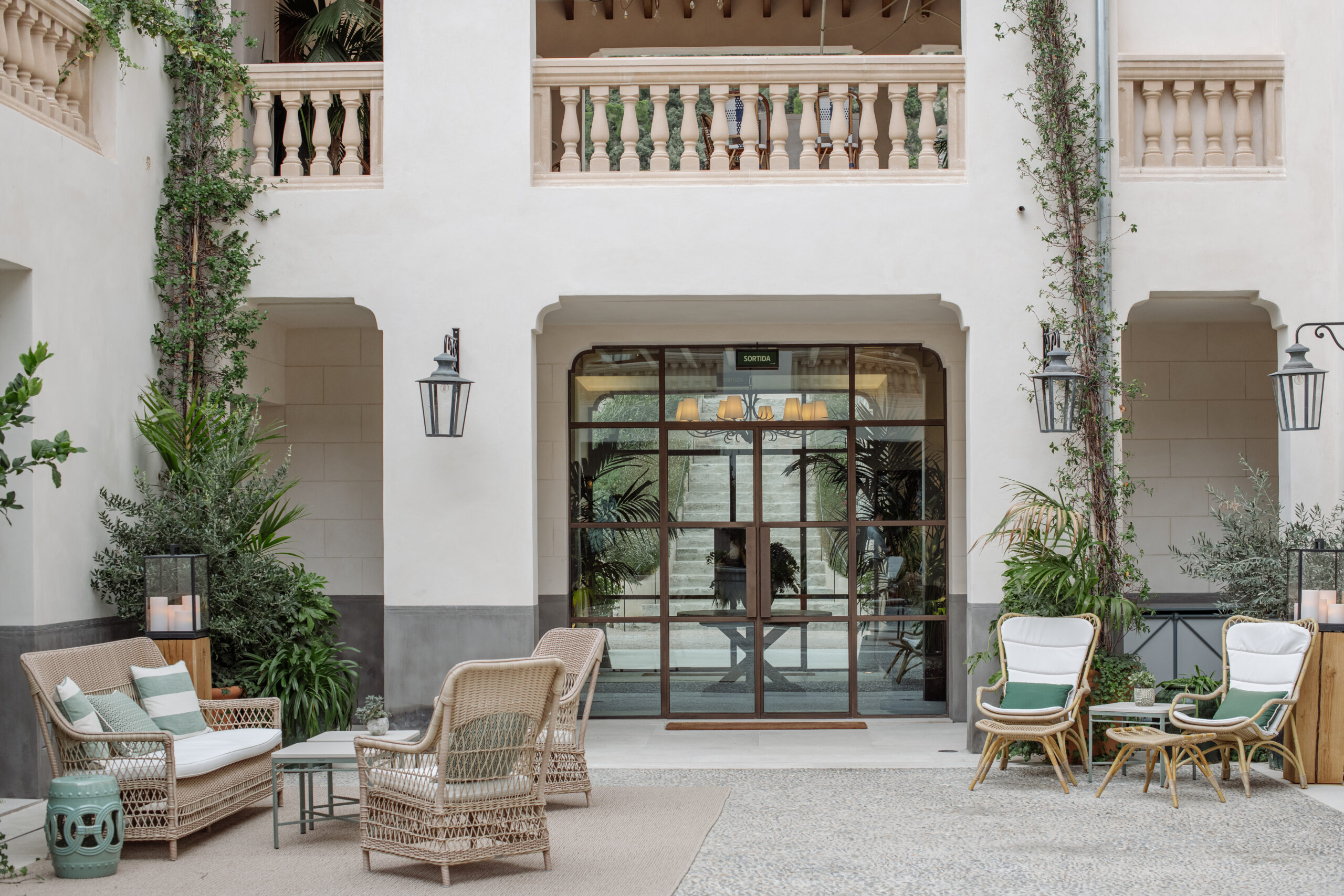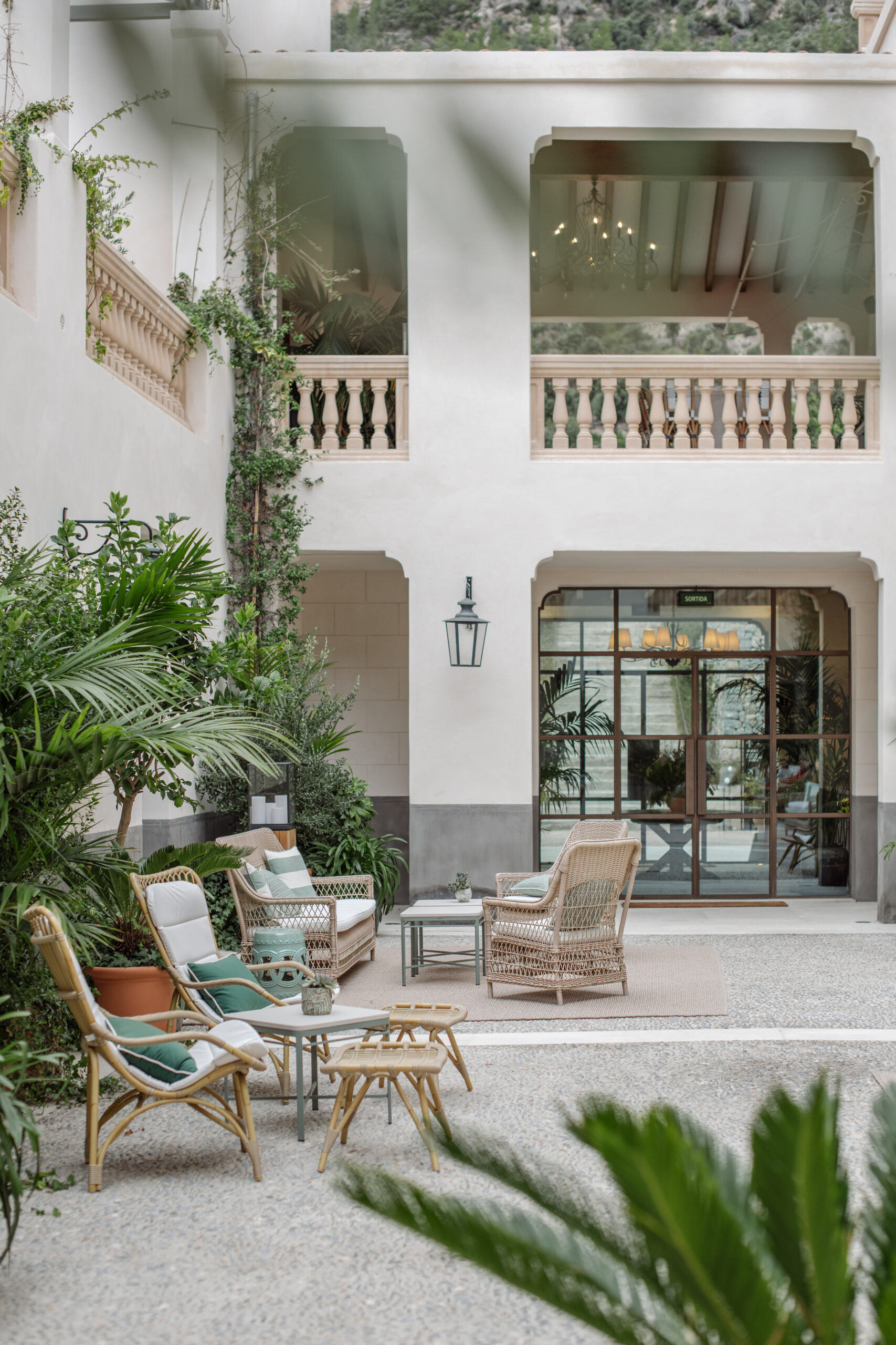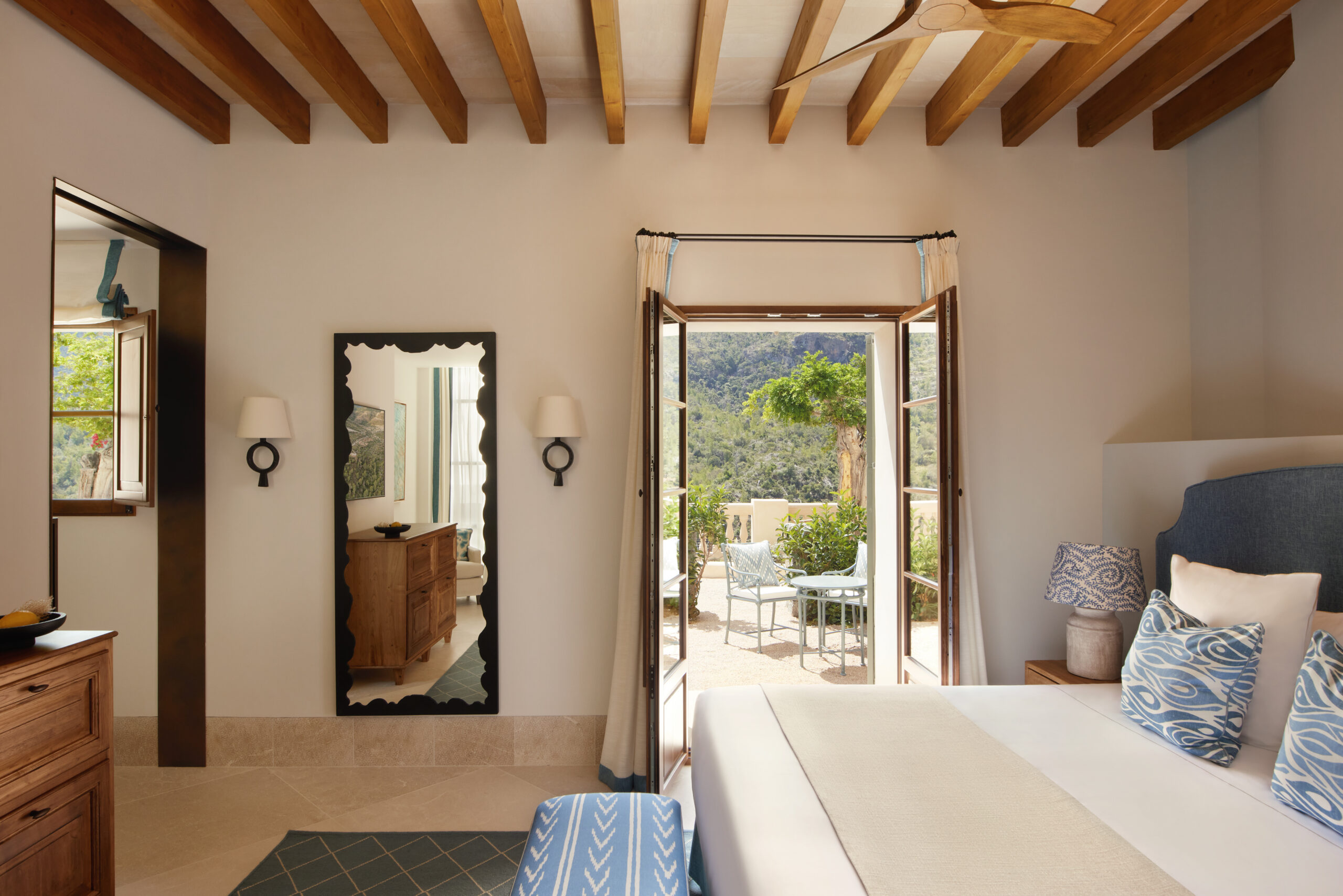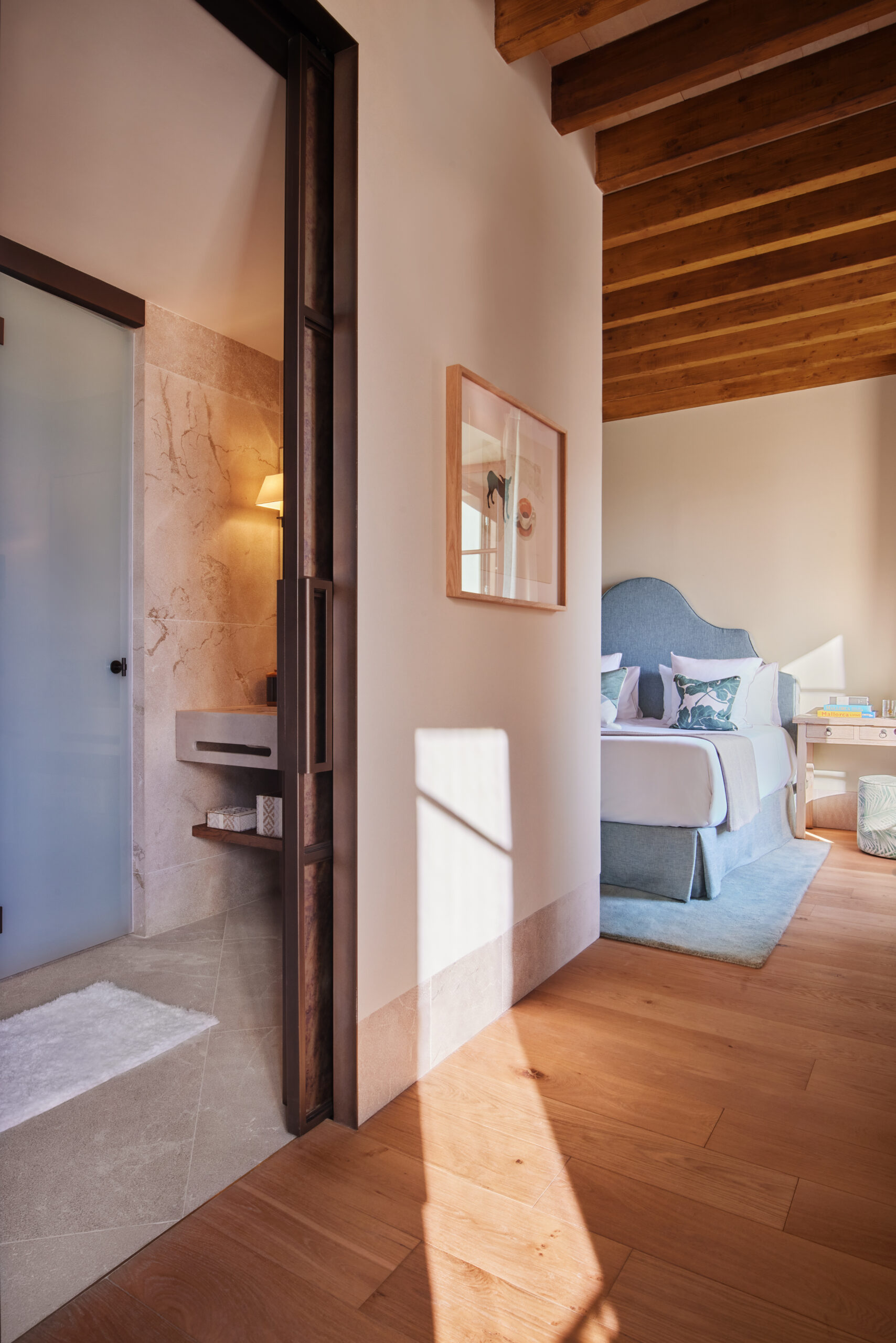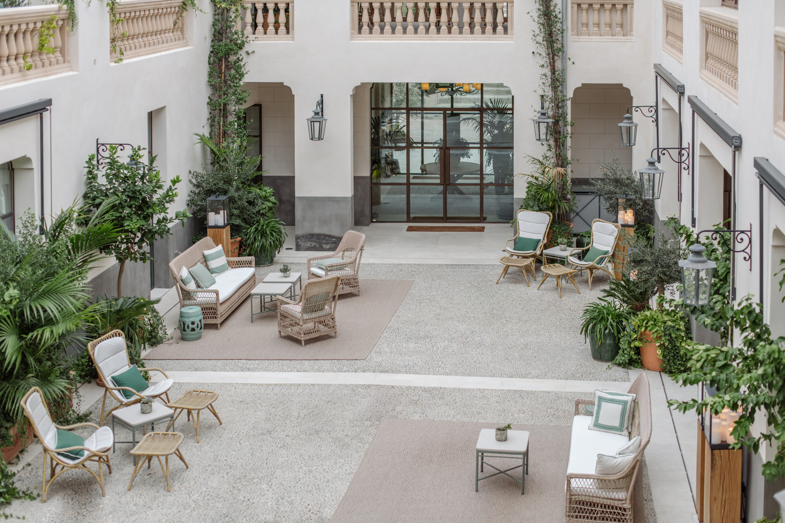 L’hôtel allie héritage et modernité, avec des matériaux traditionnels majorquins, des poutres apparentes et des arches en pierre restaurées, sublimées par un design contemporain signé Rialto Living.