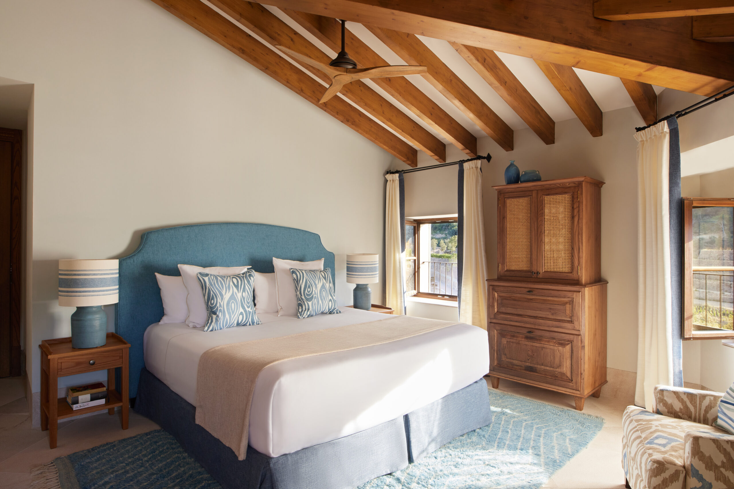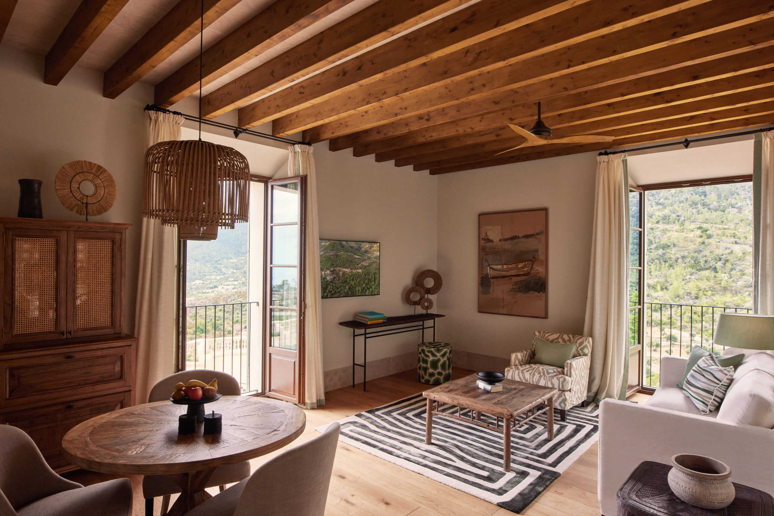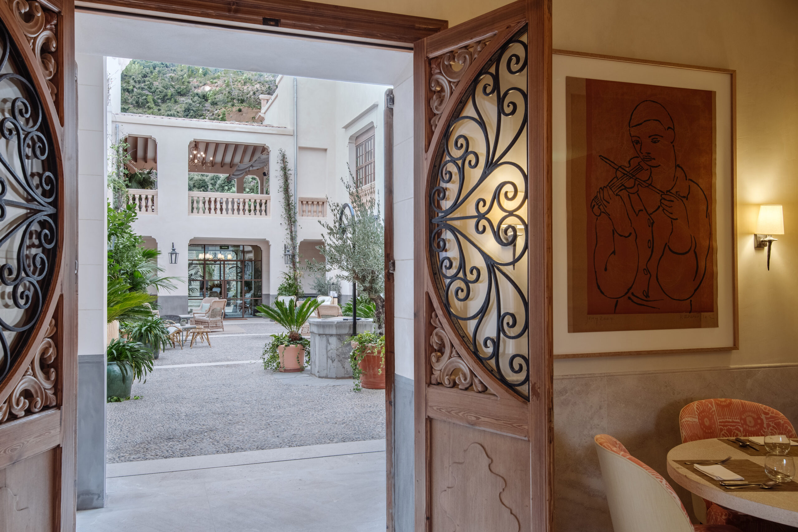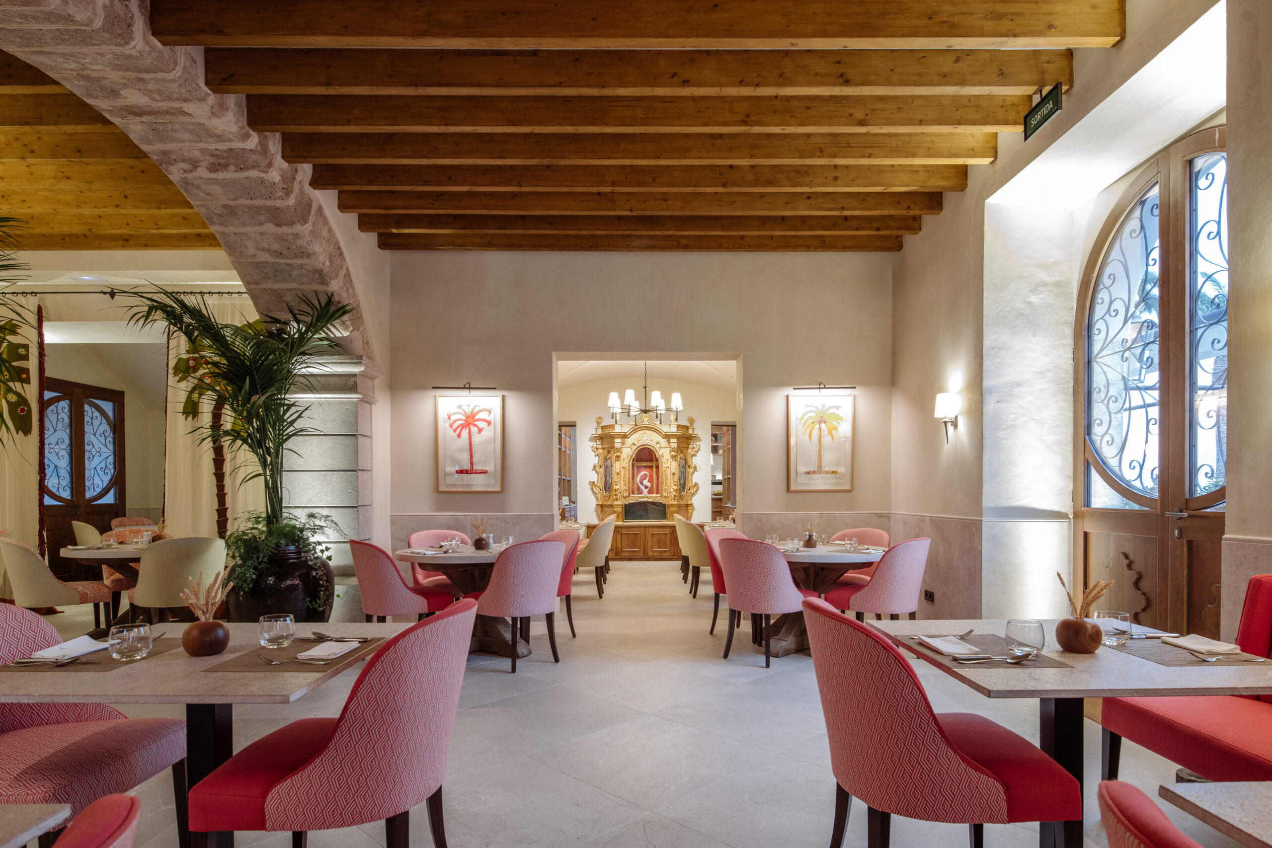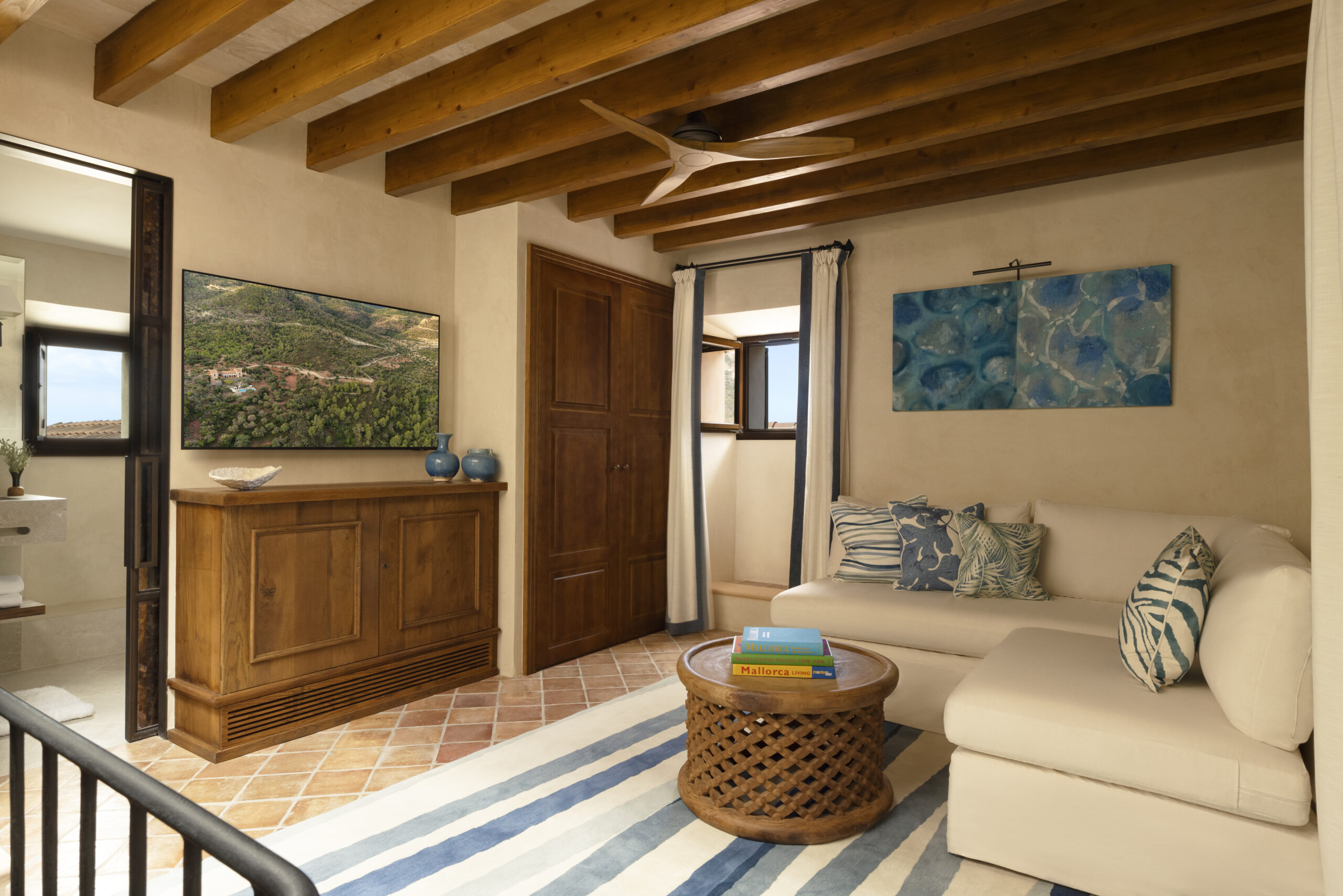L’hôtel allie héritage et modernité, avec des matériaux traditionnels majorquins, des poutres apparentes et des arches en pierre restaurées, sublimées par un design contemporain signé Rialto Living.