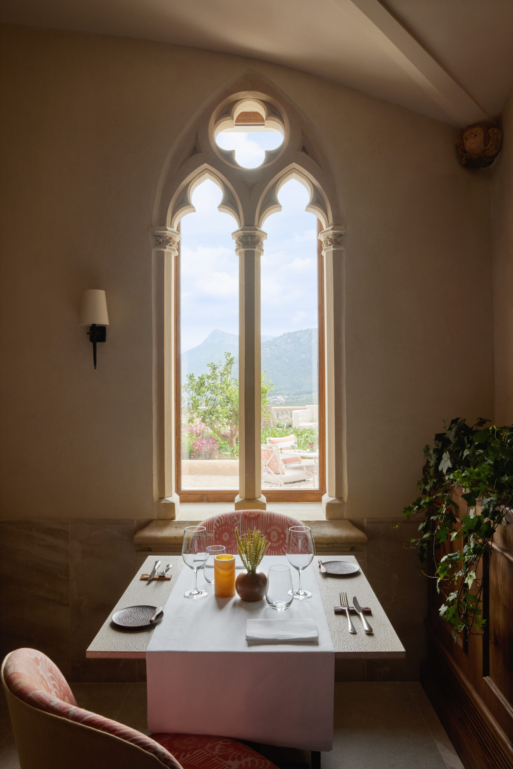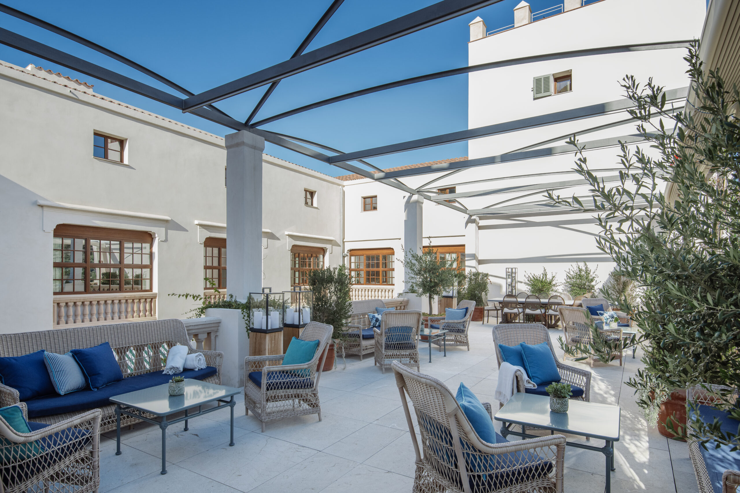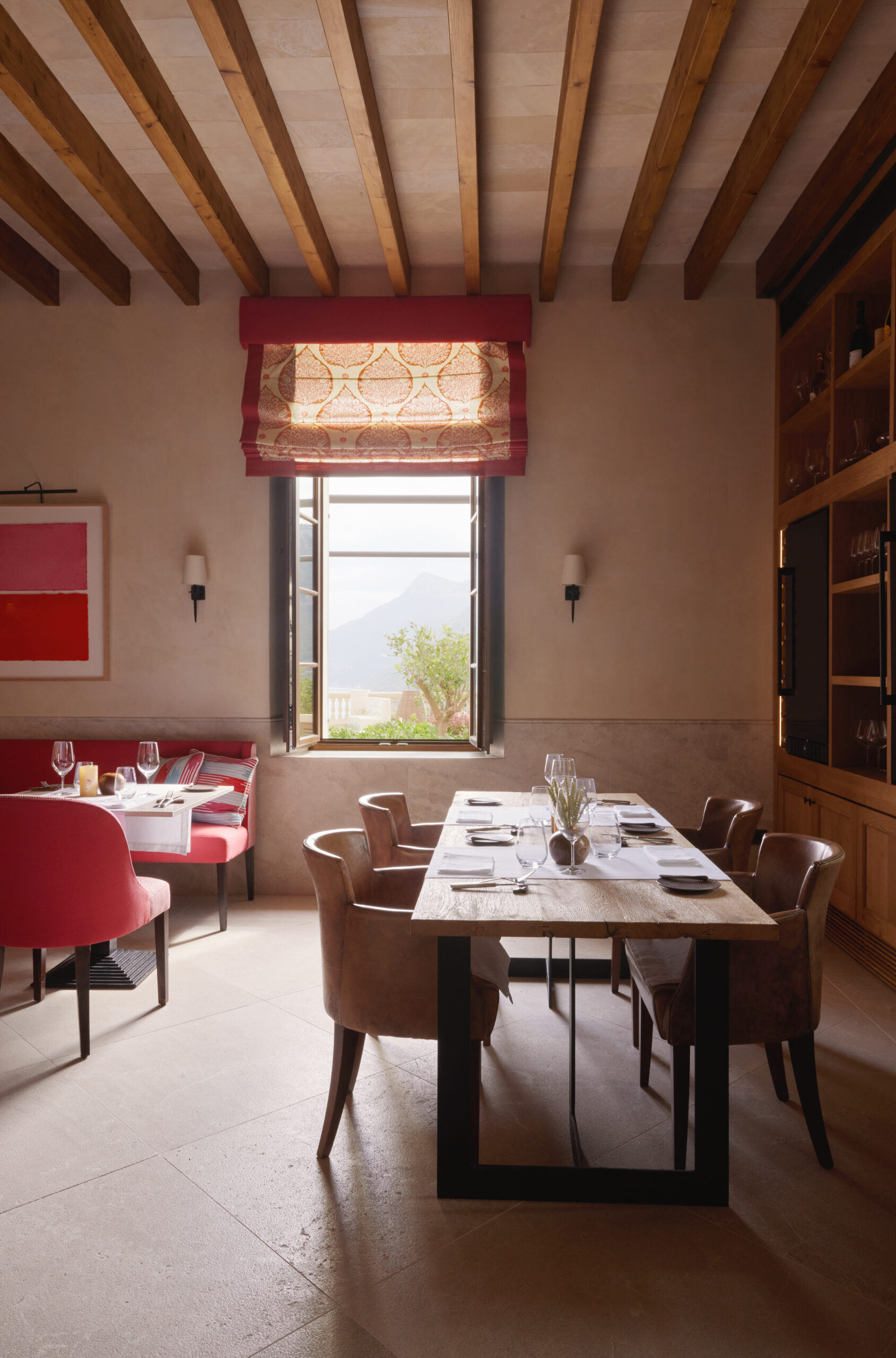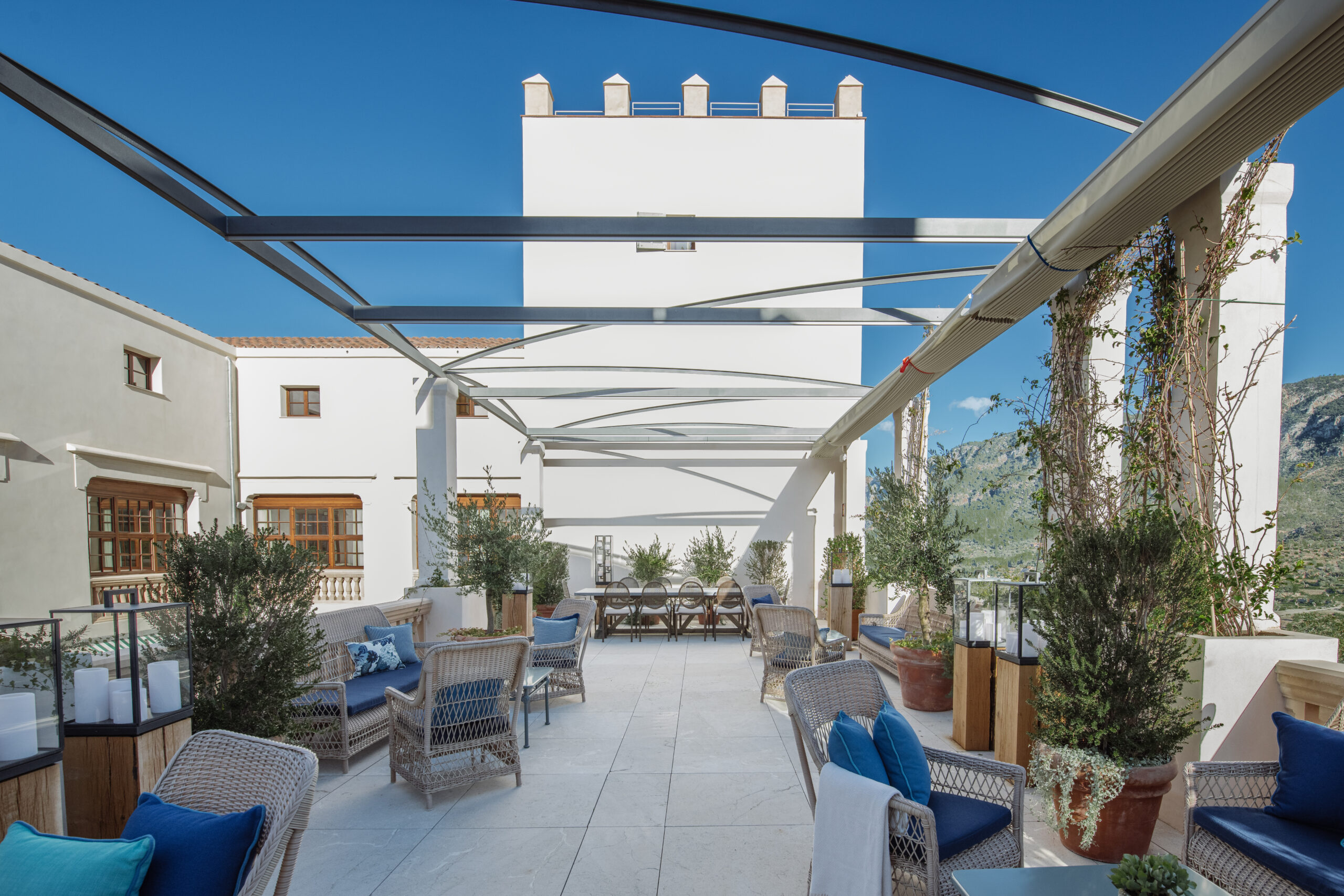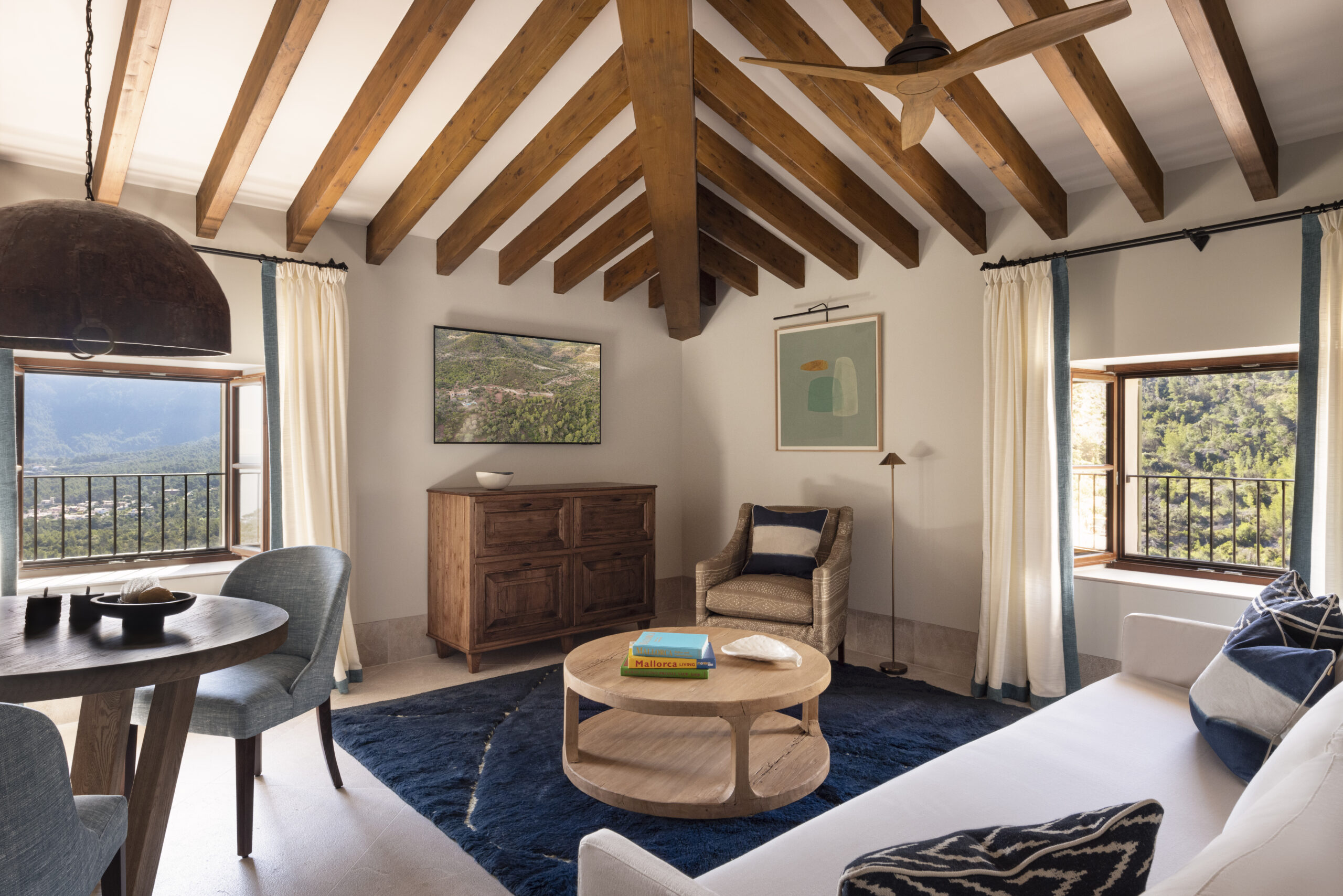 L’hôtel allie héritage et modernité, avec des matériaux traditionnels majorquins, des poutres apparentes et des arches en pierre restaurées, sublimées par un design contemporain signé Rialto Living.