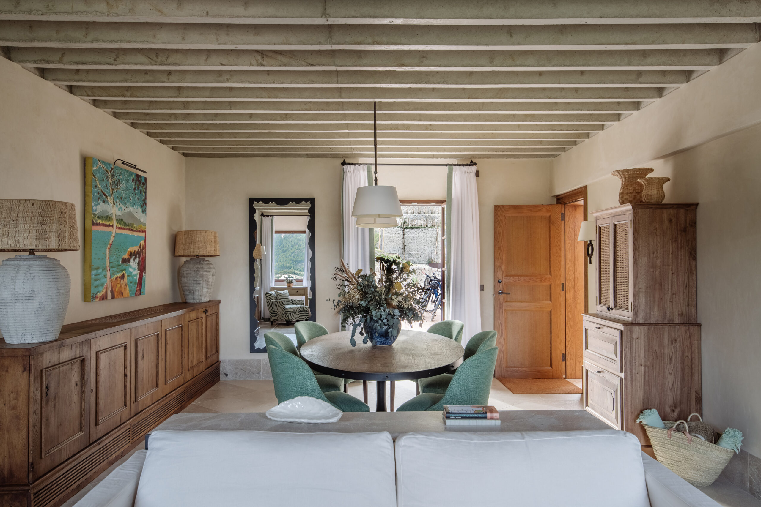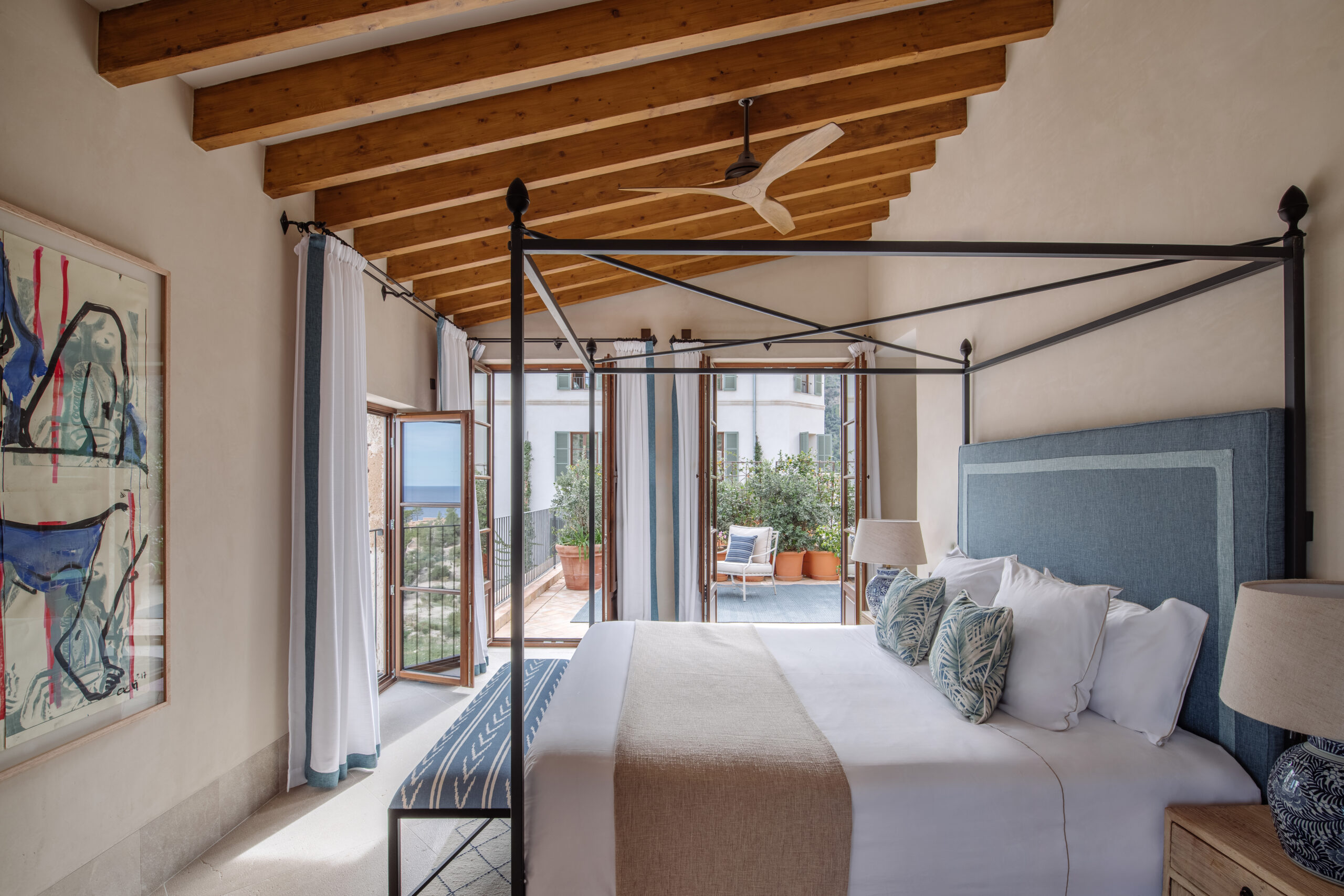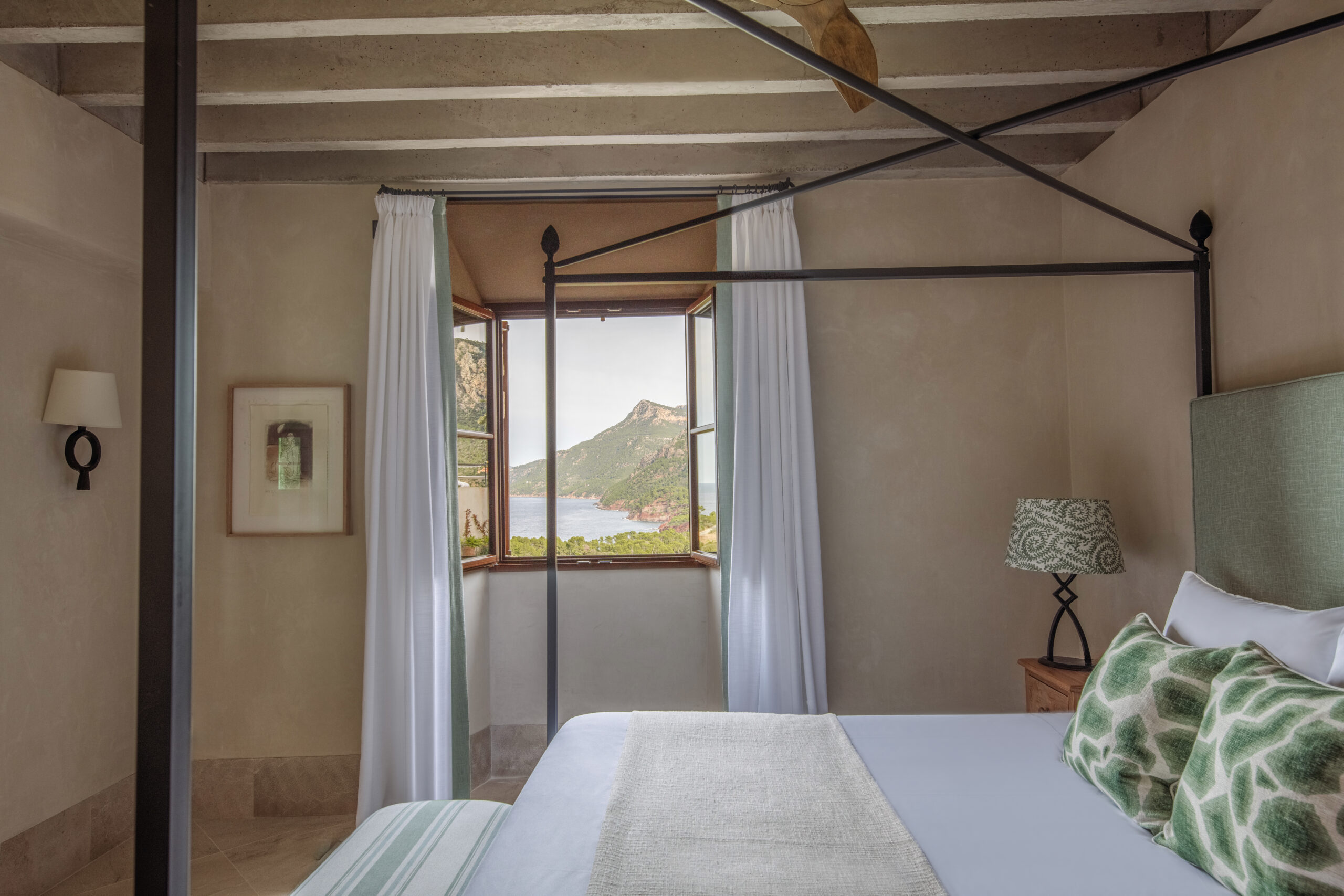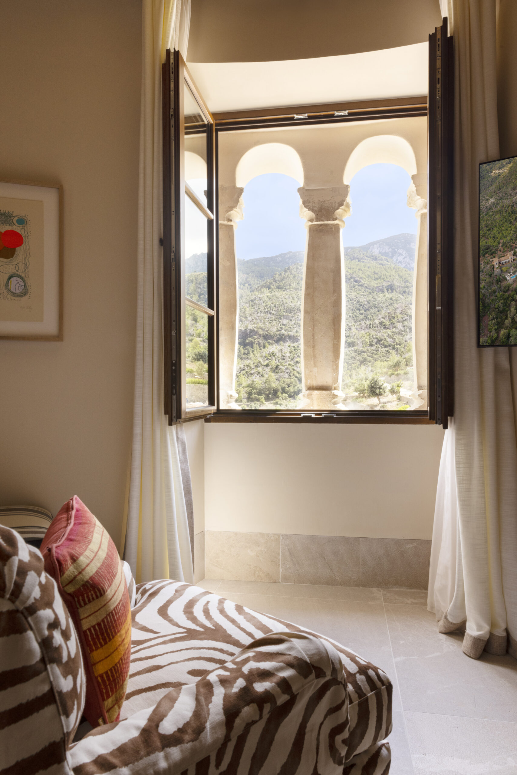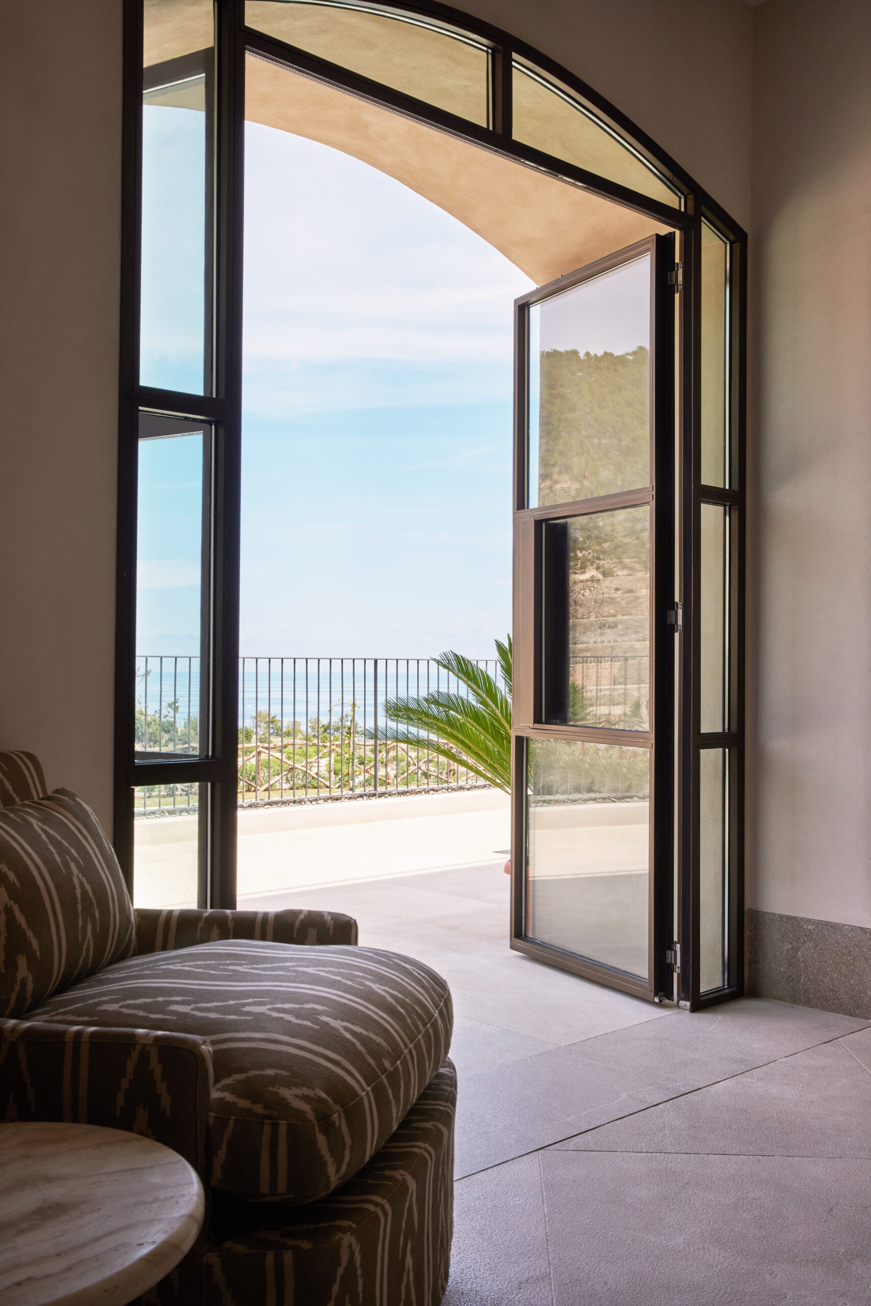 L’hôtel allie héritage et modernité, avec des matériaux traditionnels majorquins, des poutres apparentes et des arches en pierre restaurées, sublimées par un design contemporain signé Rialto Living.