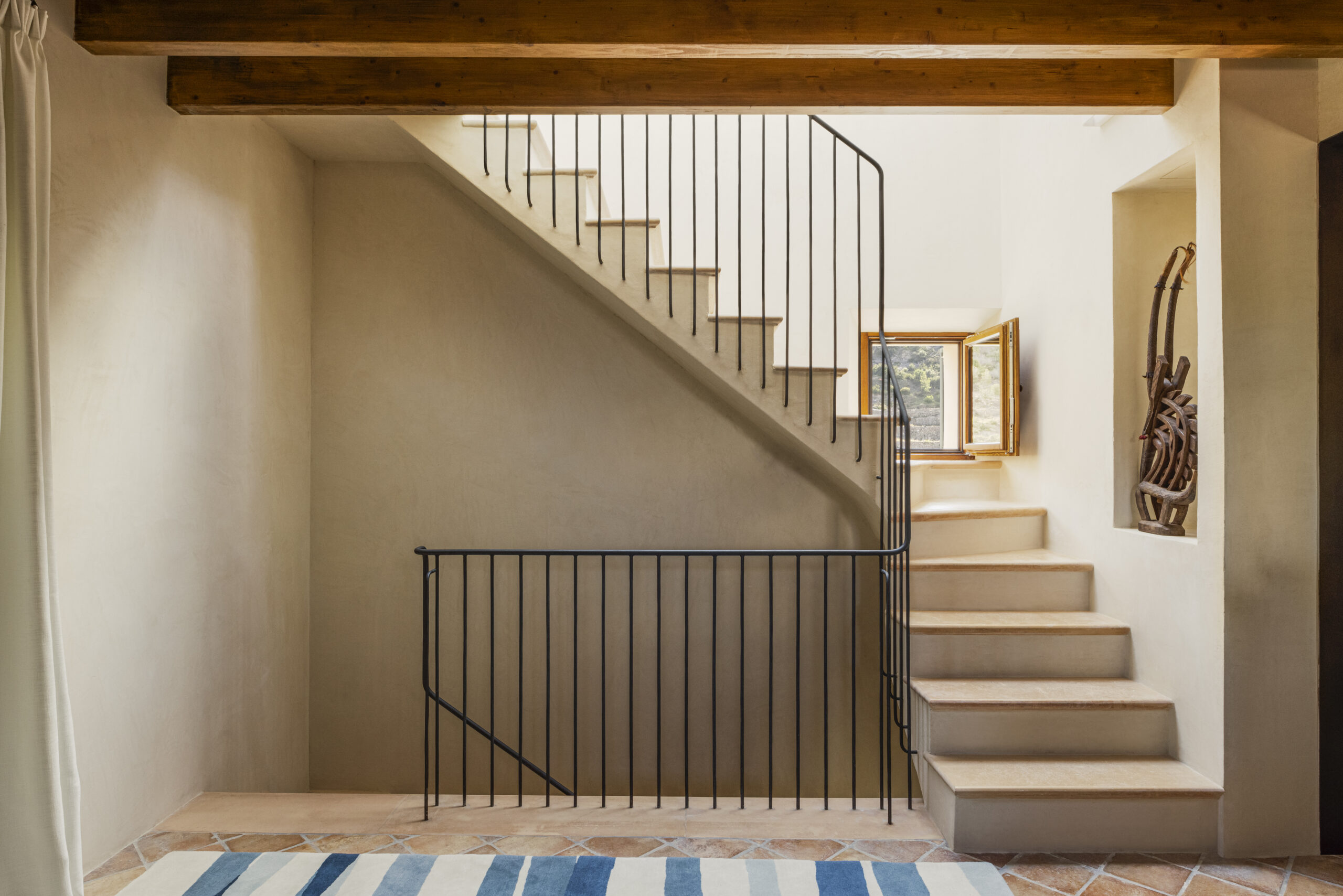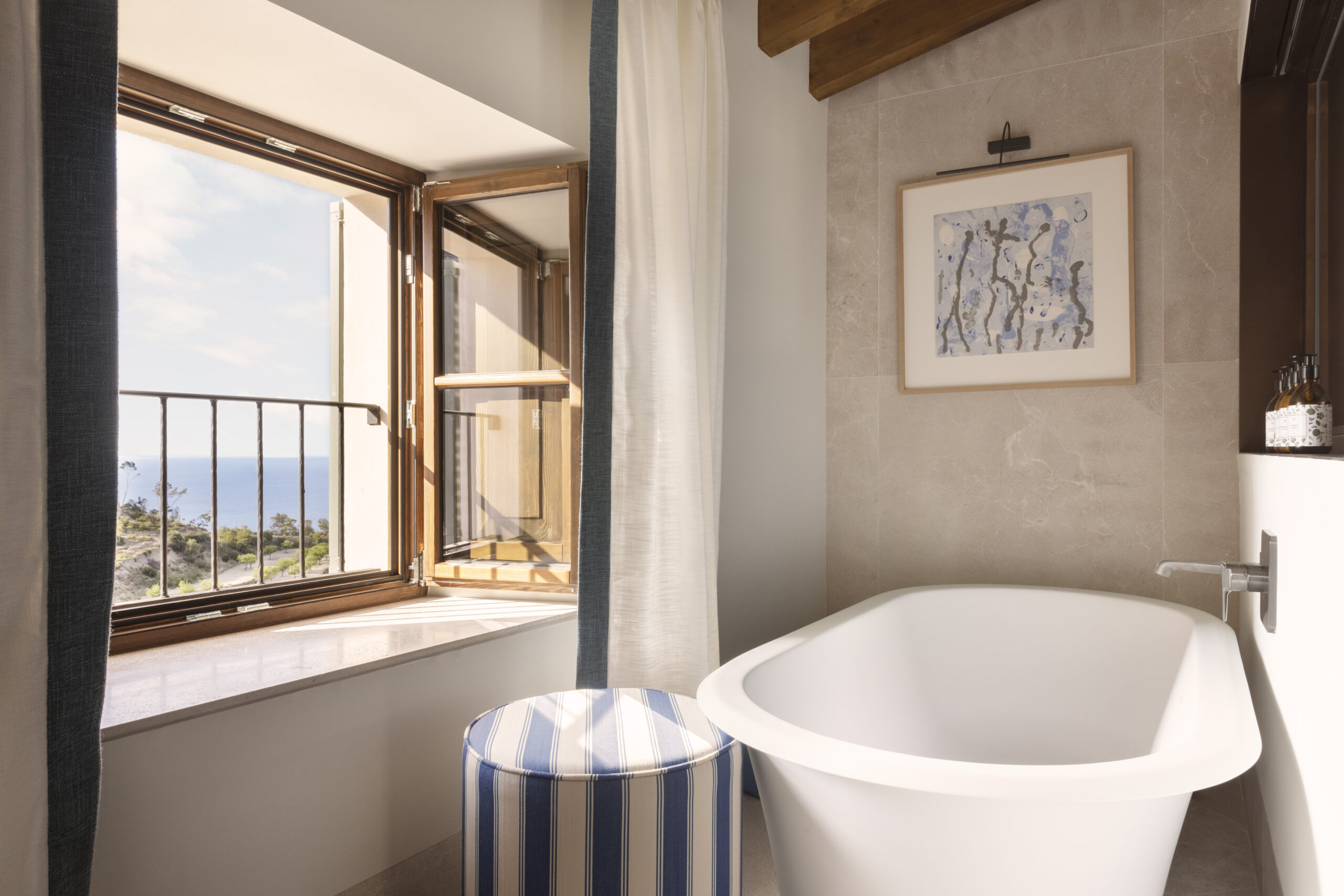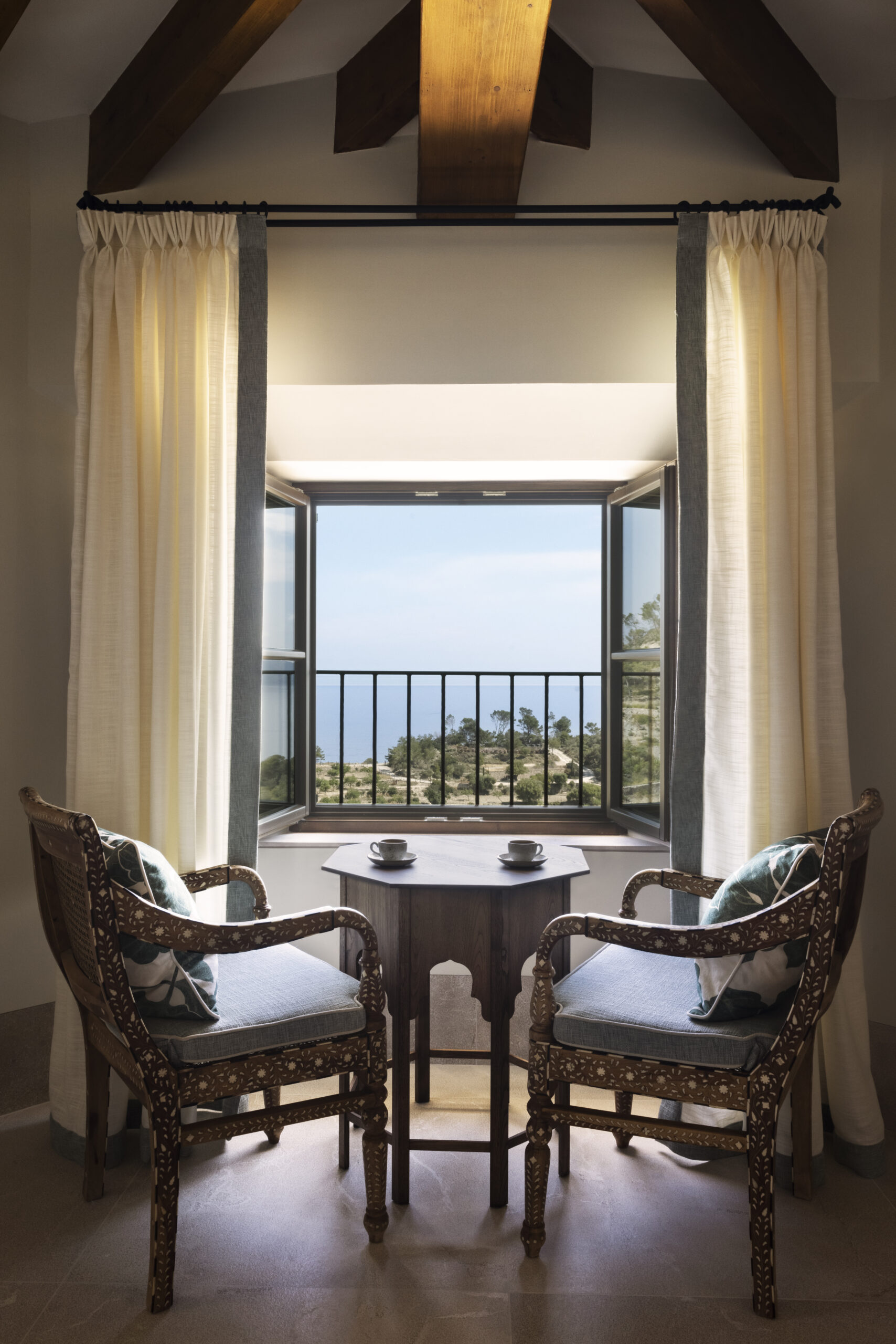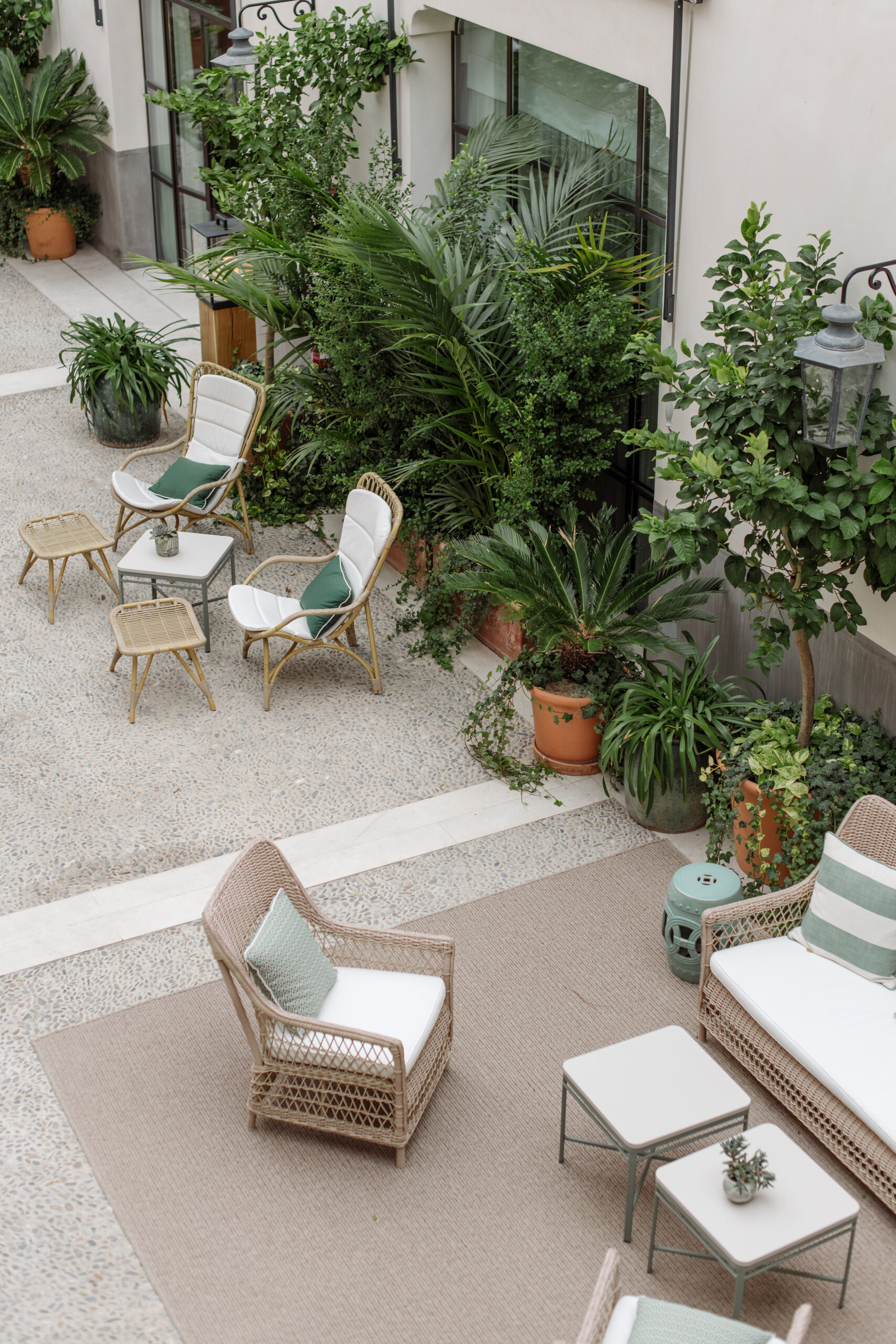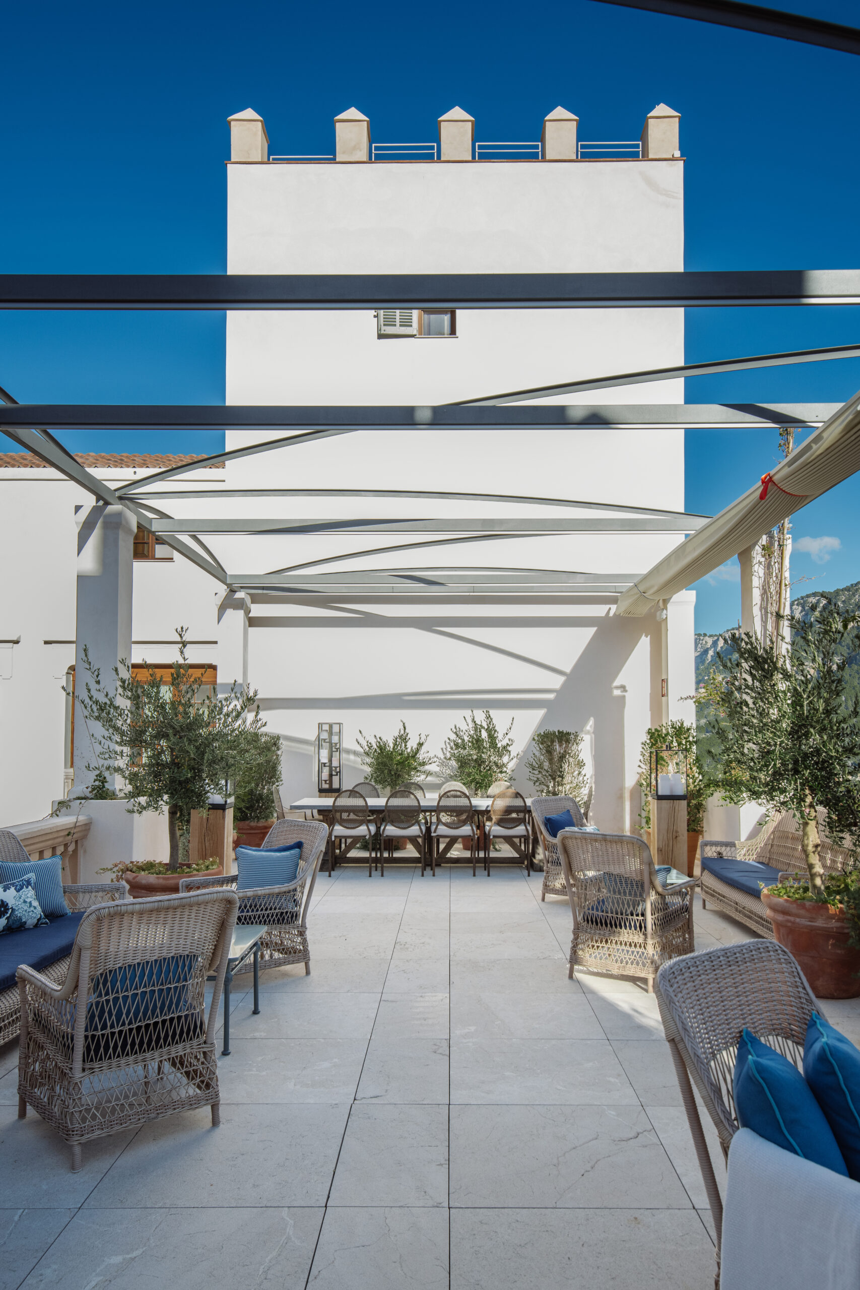L’hôtel allie héritage et modernité, avec des matériaux traditionnels majorquins, des poutres apparentes et des arches en pierre restaurées, sublimées par un design contemporain signé Rialto Living.