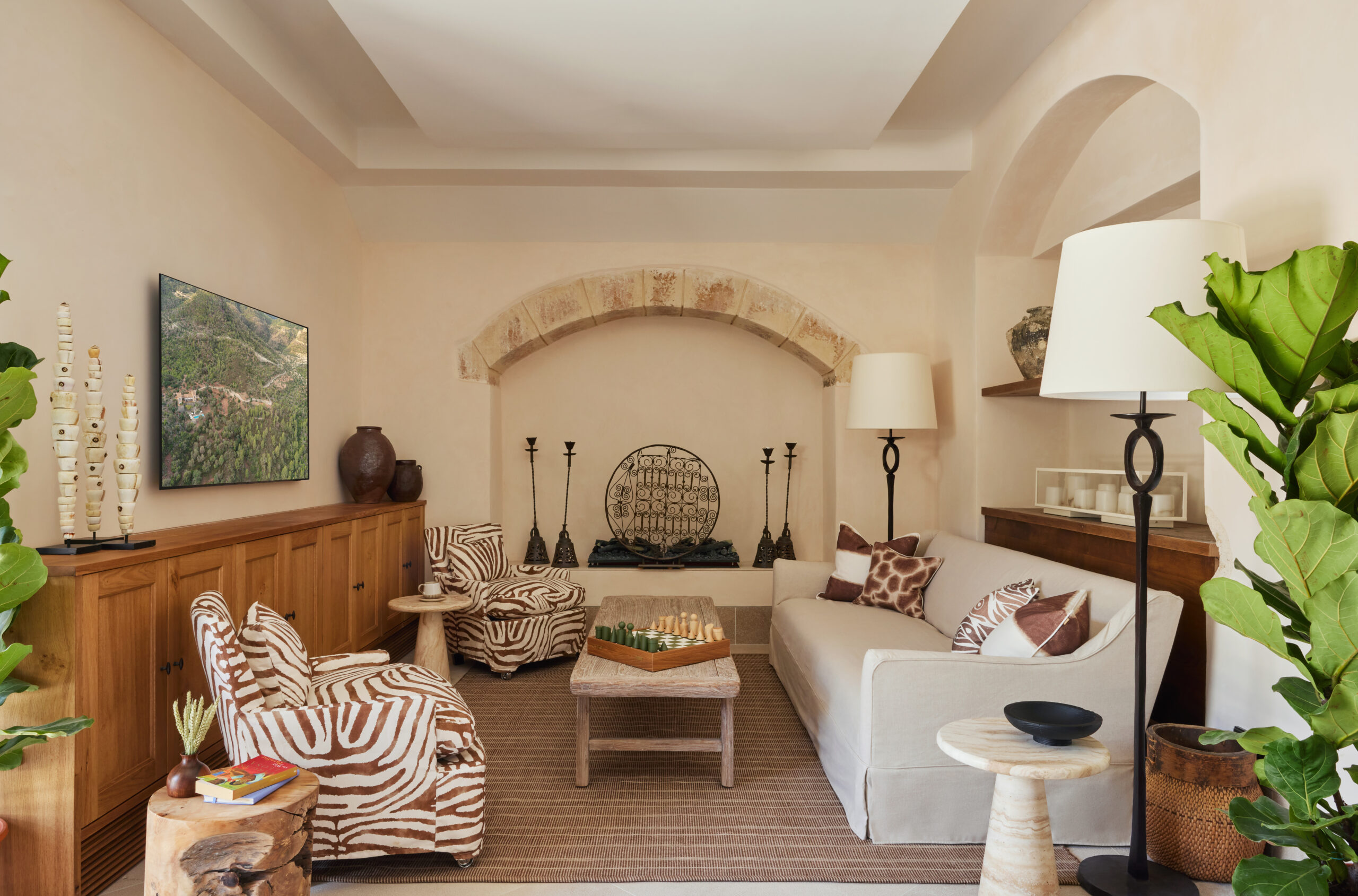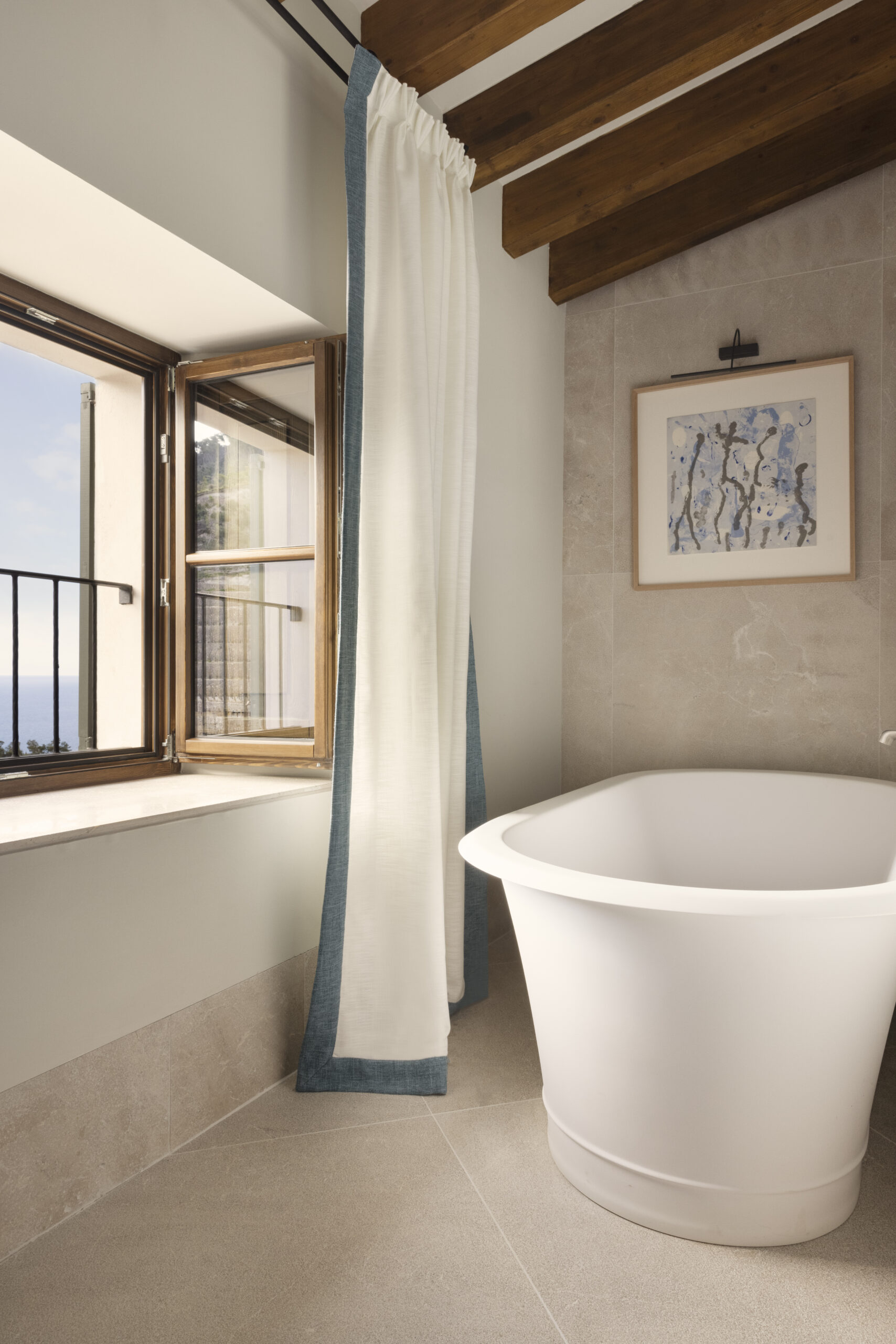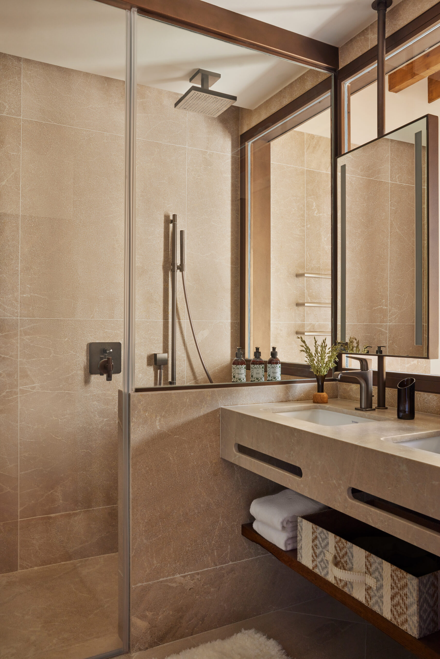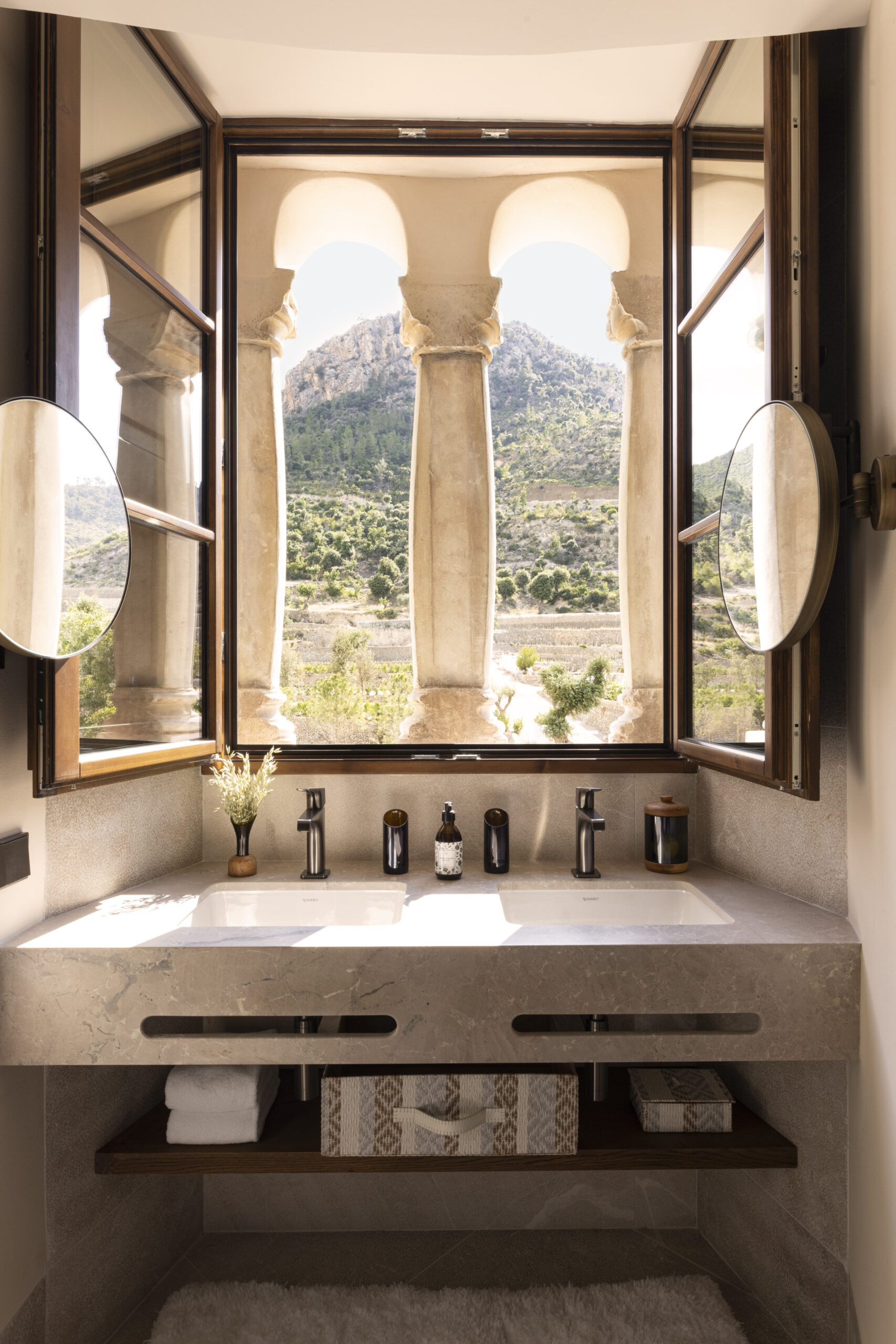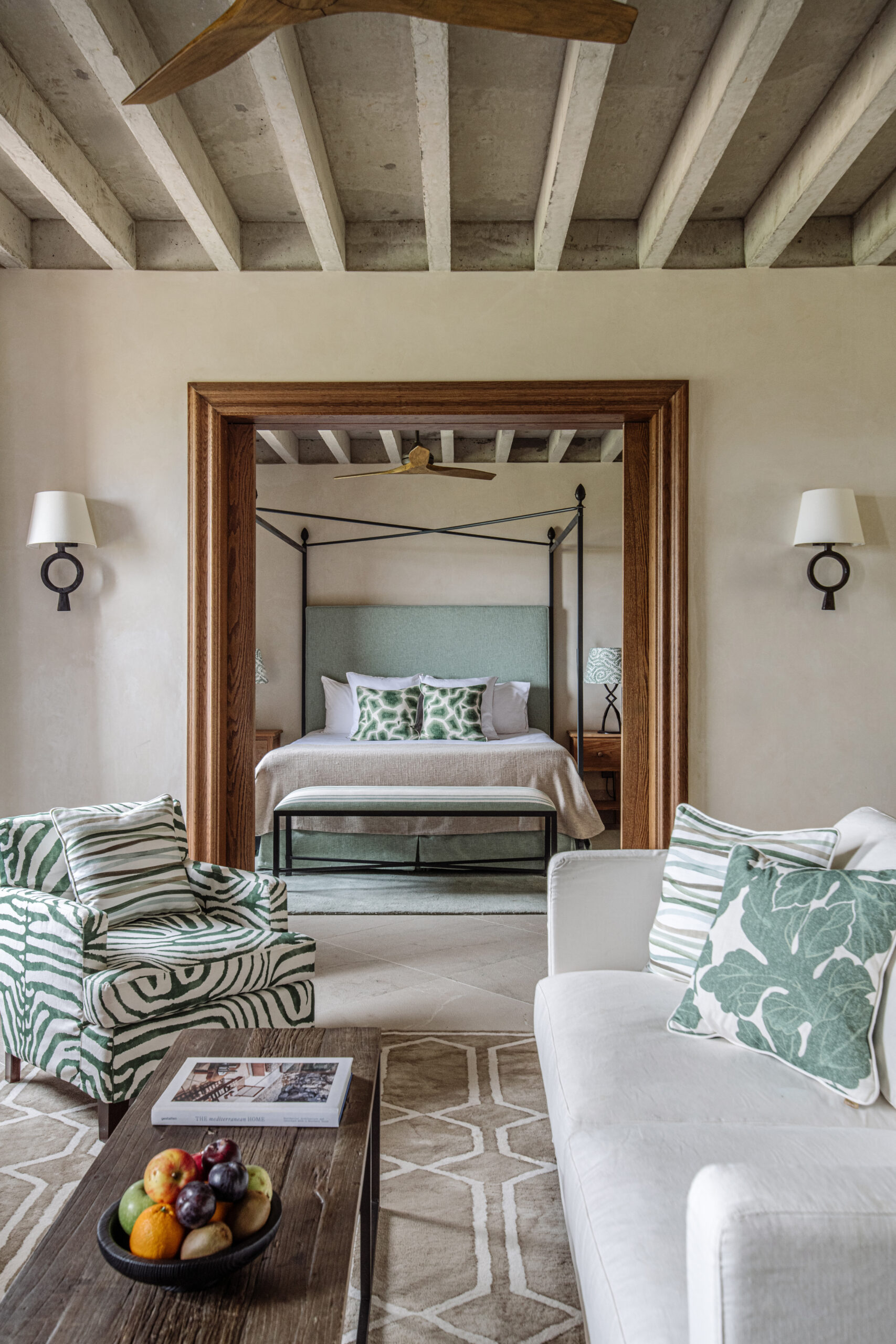 L’hôtel allie héritage et modernité, avec des matériaux traditionnels majorquins, des poutres apparentes et des arches en pierre restaurées, sublimées par un design contemporain signé Rialto Living.