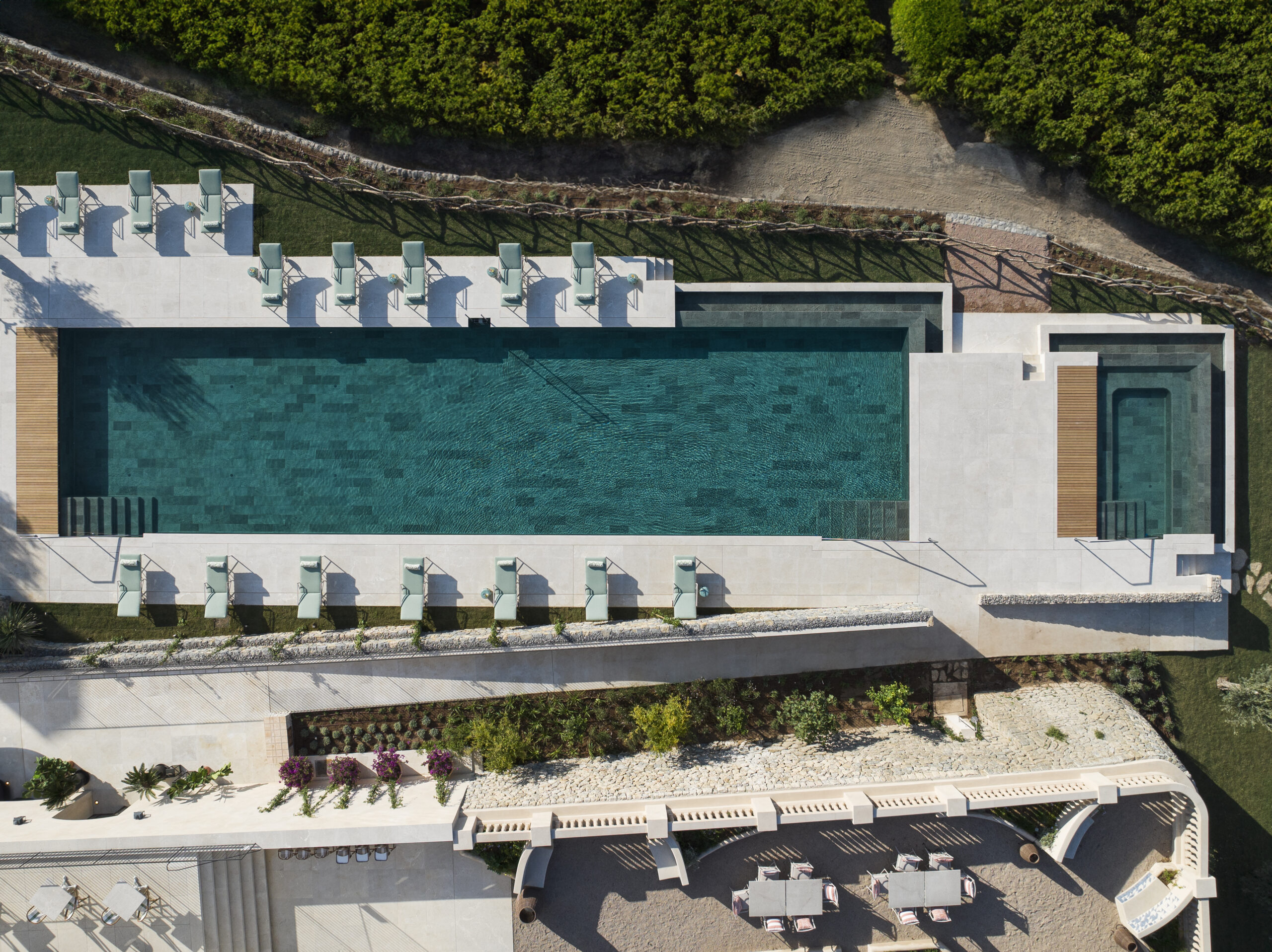 - Une piscine à débordement de 28 mètres, face à la mer