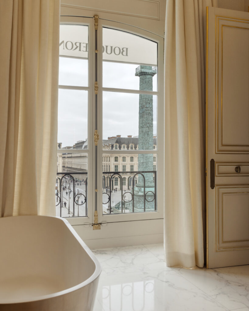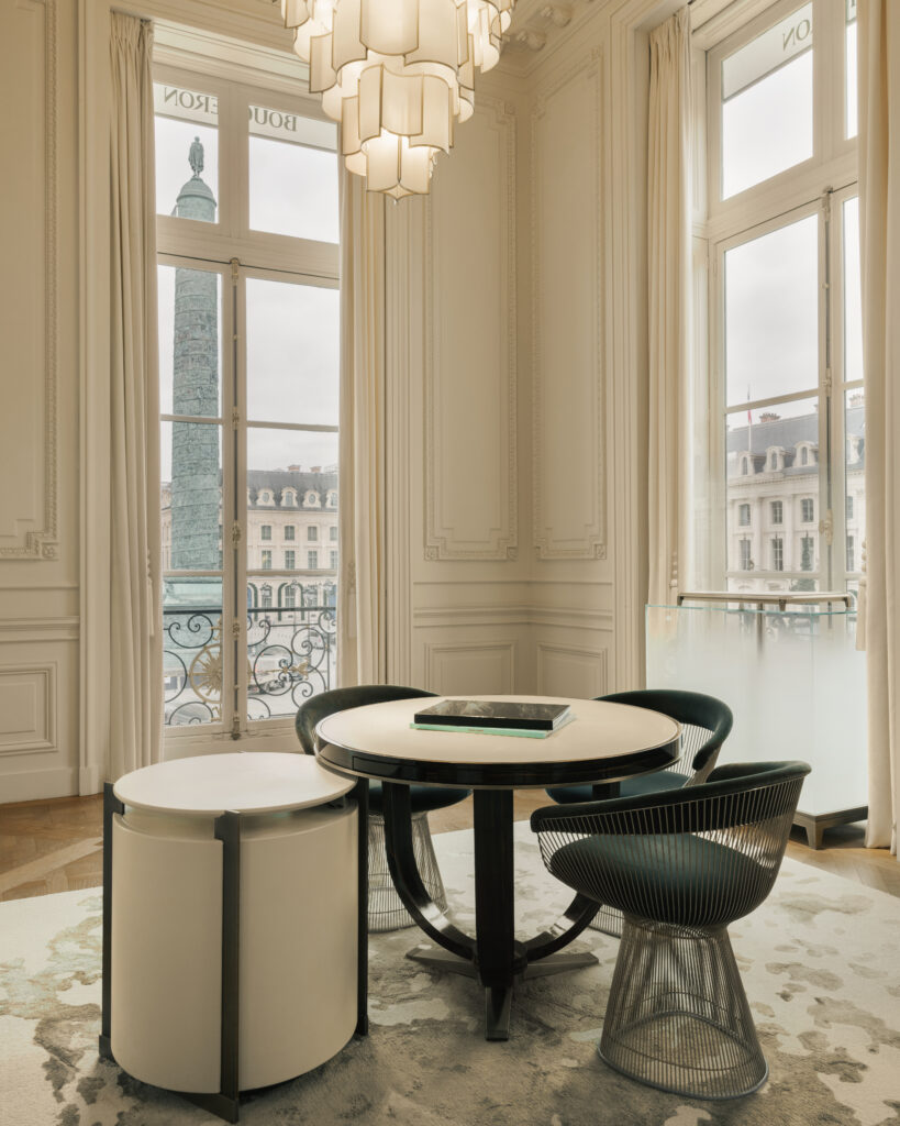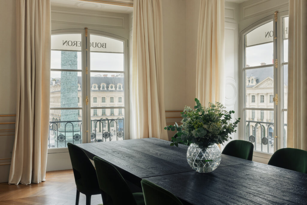 - Salle à manger, bibliothèque, chambre et salon, avec vue imprenable sur la Place Vendôme et la Tour Eiffel.