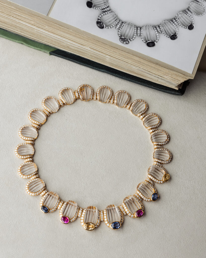 - Une approche libre où le design précède la pierre, à l’origine de créations révolutionnaires comme le collier Nuage ou les bijoux transformables.