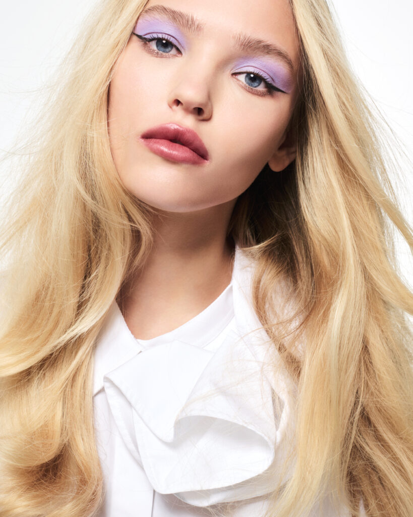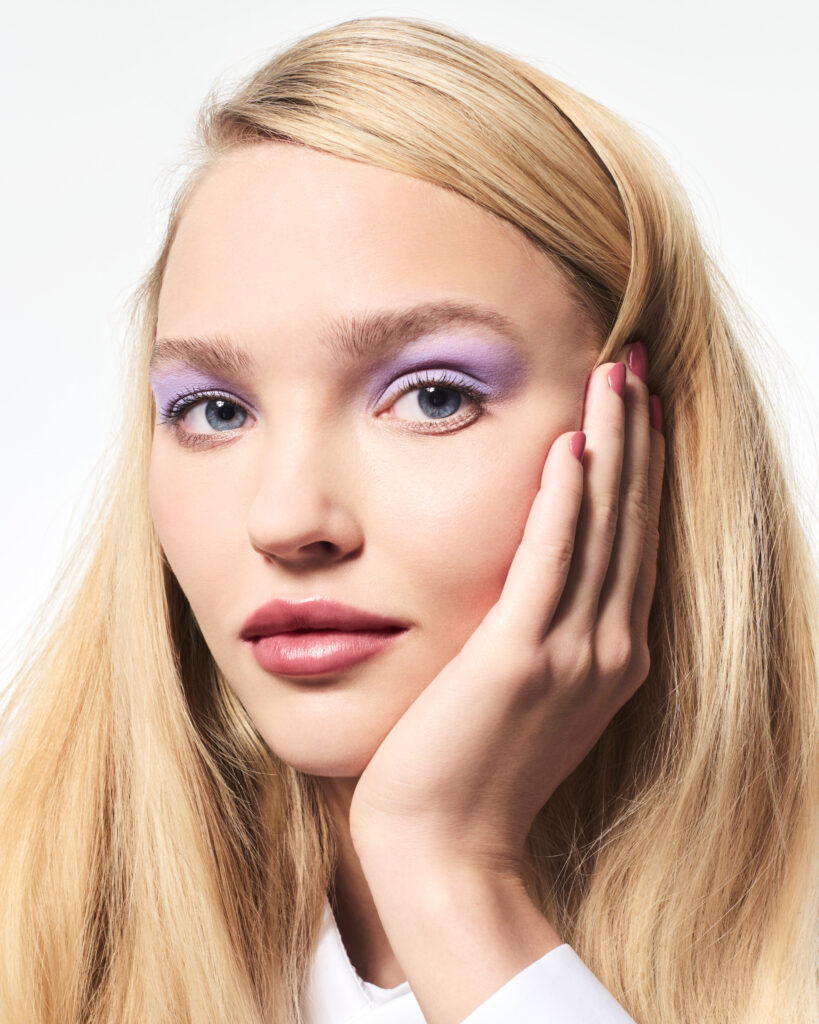 Ce look incarne l’innocence sucrée et la légèreté du printemps. L’Eyeshadow Pen Sugar Plum, un lilas tendre, illumine le regard avec une douceur aérienne. Sur les lèvres, le Lush Lipstick Marsala apporte une touche de fraîcheur gourmande, tandis que le Brilliant Nail Carnation prolonge cette harmonie sucrée sur les ongles.