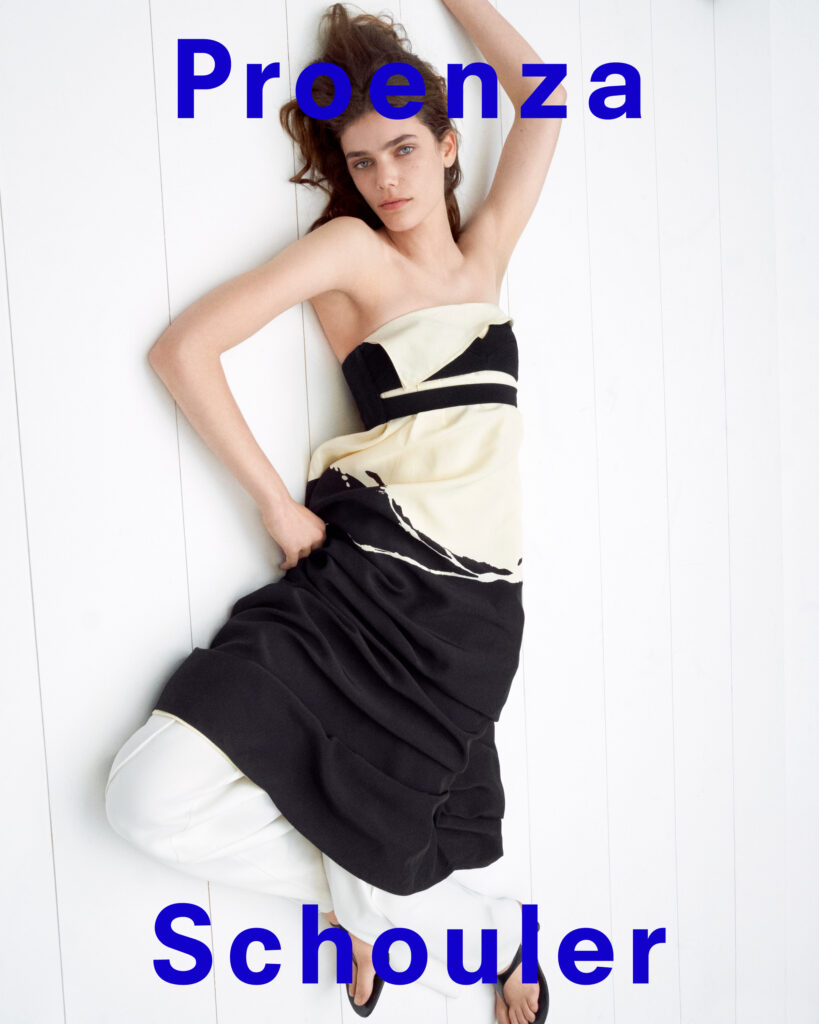 Dans un éclat de modernité et d’émotion, Proenza Schouler dévoile sa collection Printemps-Été 2025, fruit d’un dialogue créatif entre tradition et innovation. La campagne, imaginée par Jack McCollough et Lazaro Hernandez, incarne l’essence d’une maison qui se réinvente sans jamais trahir son héritage. Le résultat est une esthétique contemporaine qui respire la liberté et l’audace, tout en soulignant le raffinement et l’expertise qui ont toujours caractérisé Proenza Schouler.