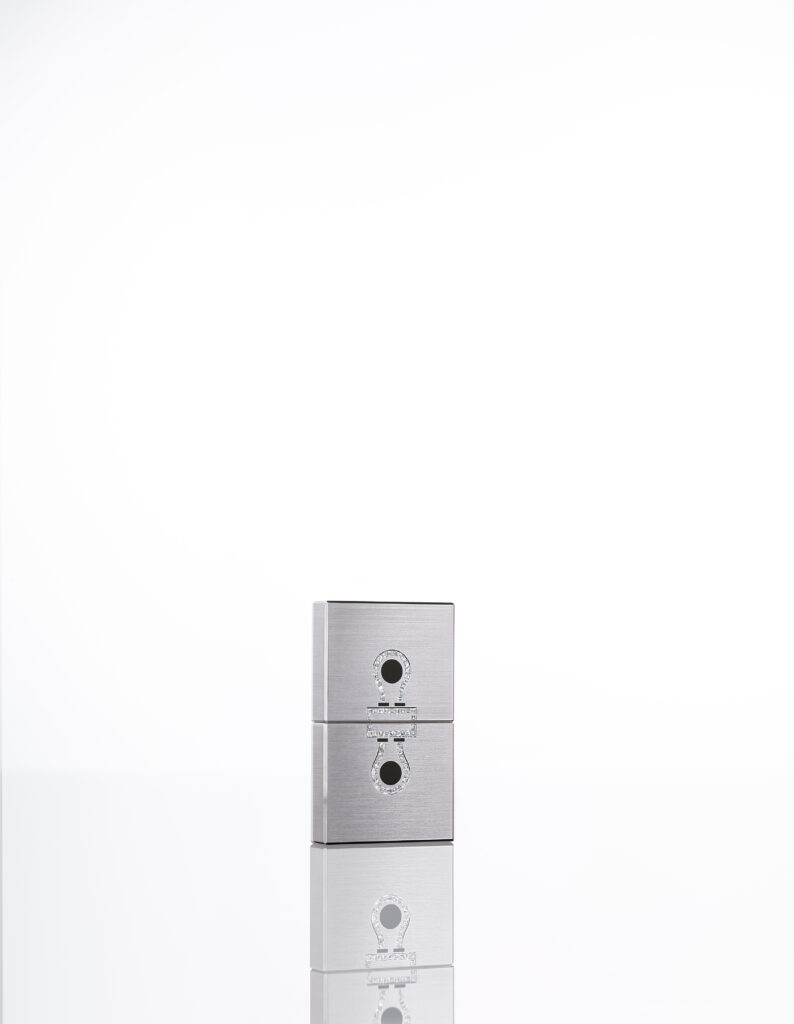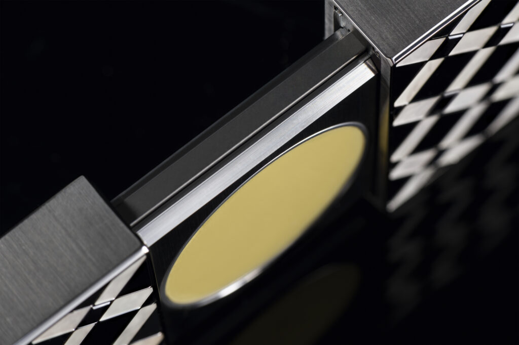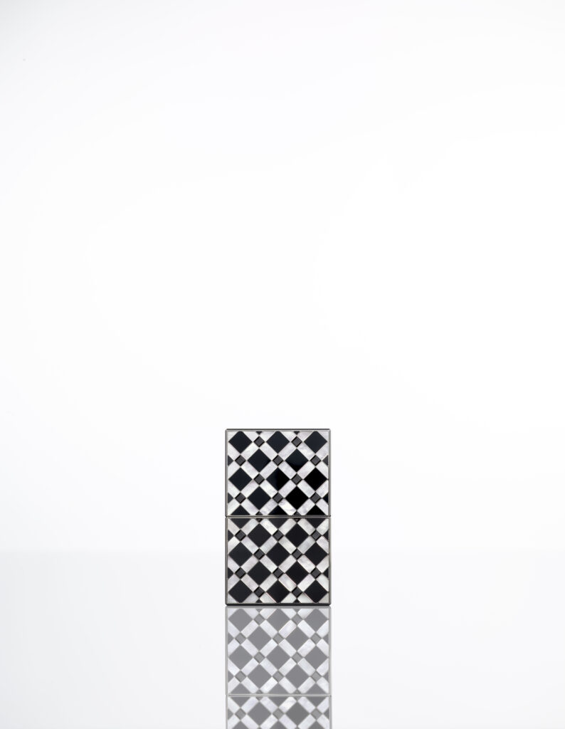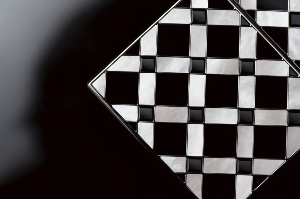 Le modèle Damier, quant à lui, se décline en deux versions marquées par une esthétique checkerboard. L’un est façonné en titane de grade 5 et orné d’obsidienne à éclat argenté, d’onyx naturellement noir et de nacre extra blanche, tandis que l’autre, réalisé en or gris, intègre des saphirs noirs totalisant 8,8 carats, complétés par de l’onyx et de la nacre extra blanche. Inspiré par le motif du damier, ce design joue habilement sur la dualité de la brillance et de l’opacité, conférant à l’accessoire une dimension à la fois sophistiquée et espiègle.