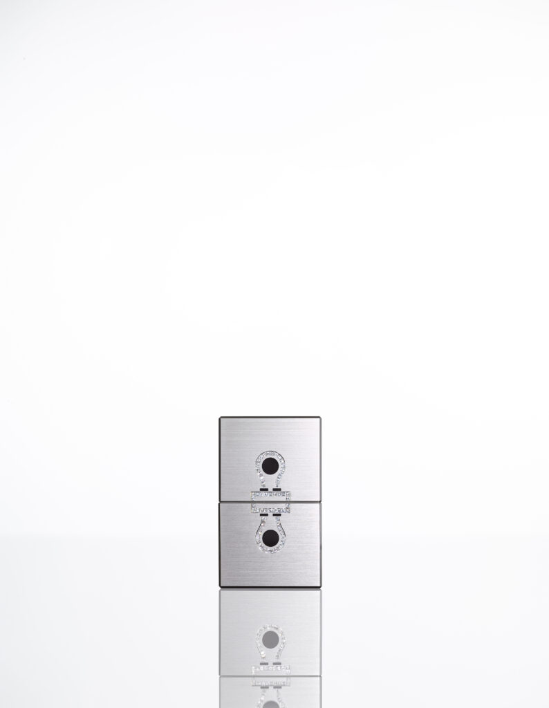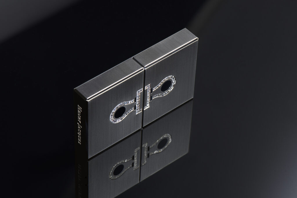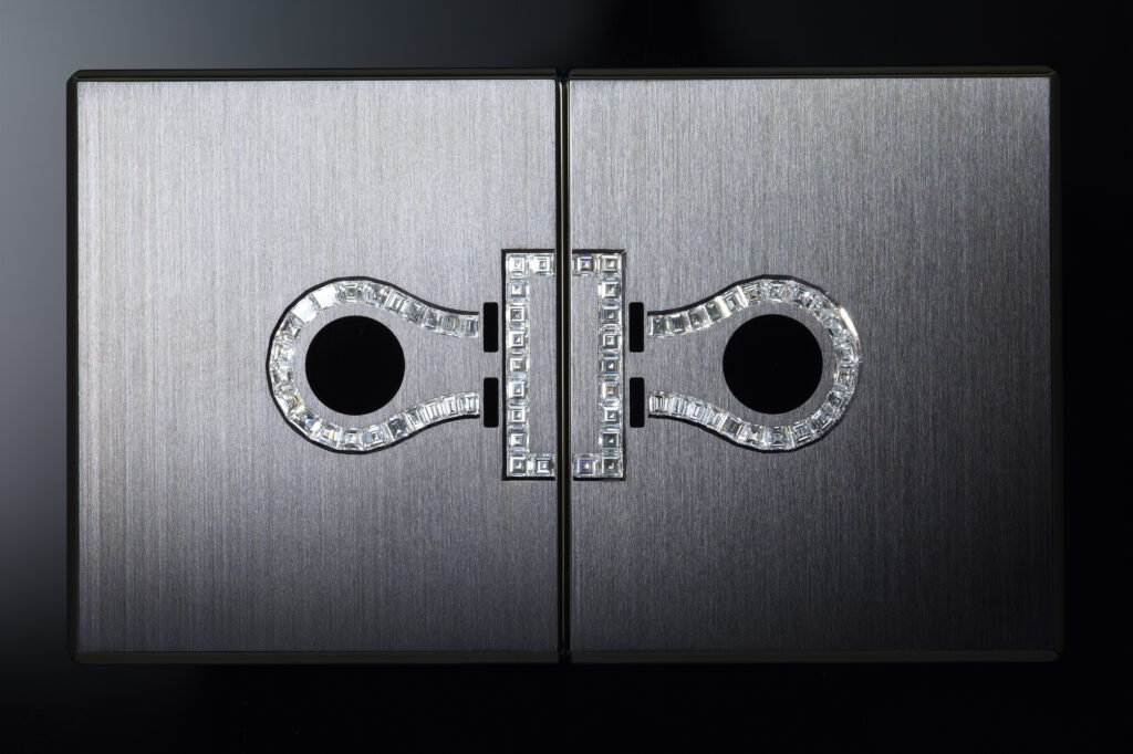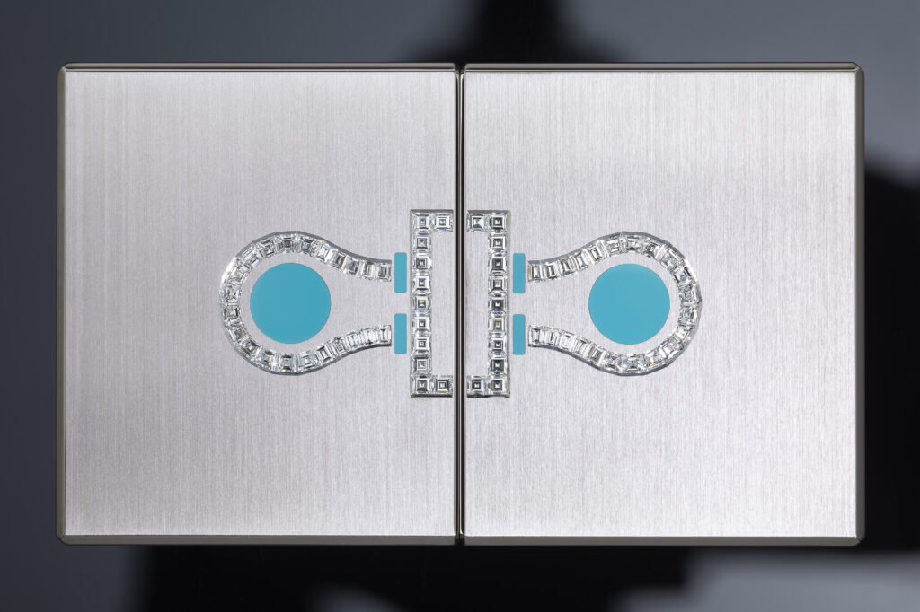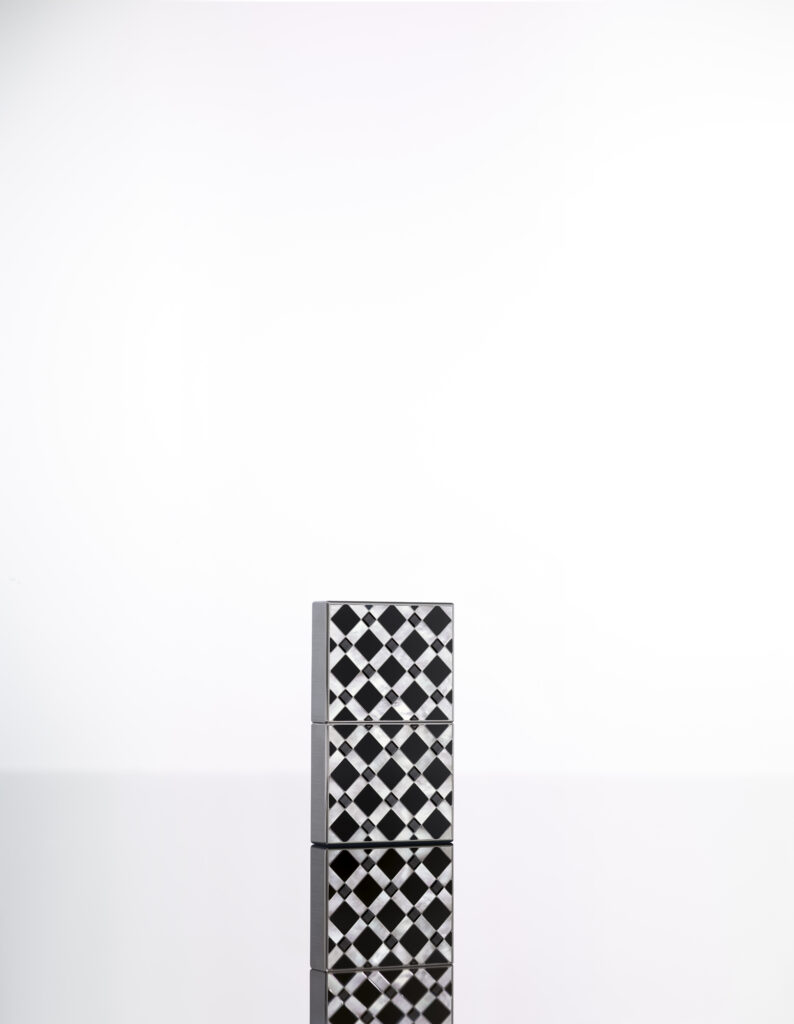 Le modèle Damier, quant à lui, se décline en deux versions marquées par une esthétique checkerboard. L’un est façonné en titane de grade 5 et orné d’obsidienne à éclat argenté, d’onyx naturellement noir et de nacre extra blanche, tandis que l’autre, réalisé en or gris, intègre des saphirs noirs totalisant 8,8 carats, complétés par de l’onyx et de la nacre extra blanche. Inspiré par le motif du damier, ce design joue habilement sur la dualité de la brillance et de l’opacité, conférant à l’accessoire une dimension à la fois sophistiquée et espiègle.