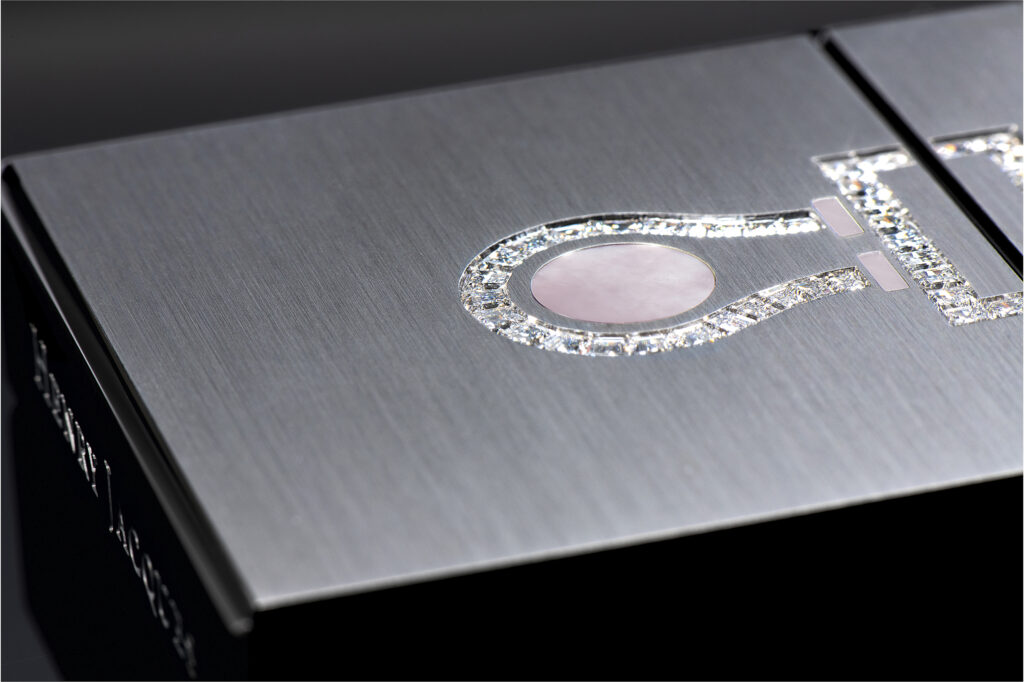 L’édition Nœud, première proposition de cette série, se distingue par une interprétation stylisée du ruban sophistiqué, évoquant subtilement le symbole du yin et du yang. Conçu avec une minutie exceptionnelle, ce modèle intègre la sertissure de diamants – 132 pierres IF-VVS totalisant 5,6 carats – qui ornent délicatement le centre. Quatre variations sont proposées, chacune différenciée par la nature de la pierre précieuse centrale : une nacre extra blanche apportant une sensation de détente, une nacre rose symbolisant la chance, un onyx naturel évoquant la force, ou encore une turquoise immaculée, talisman de protection. Plus de deux ans de travail ont été nécessaires pour parfaire ce modèle, aboutissant à une pièce qui allie avec brio héritage artisanal et modernité.