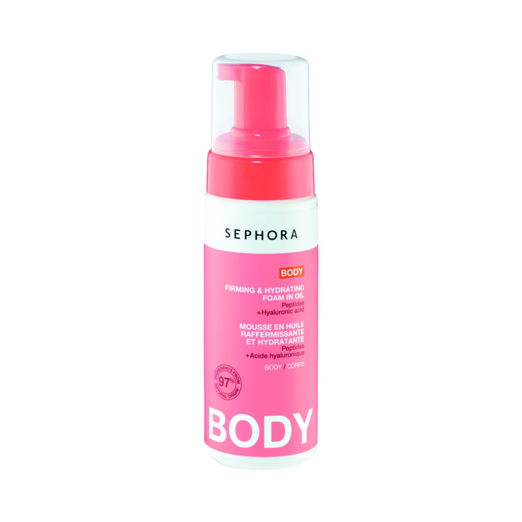 Parce que la fermeté ne concerne pas que le visage, Sephora Collection a imaginé un soin innovant pour le corps : la Mousse en Huile Raffermissante et Hydratante (18,99€ – 150ml). Cette texture hybride, qui se transforme en huile au contact de la peau, fusionne le confort d’un soin nourrissant et l’efficacité d’un soin raffermissant. Infusée en peptides et acide hyaluronique, elle lisse, hydrate et tonifie pour une peau visiblement plus ferme.