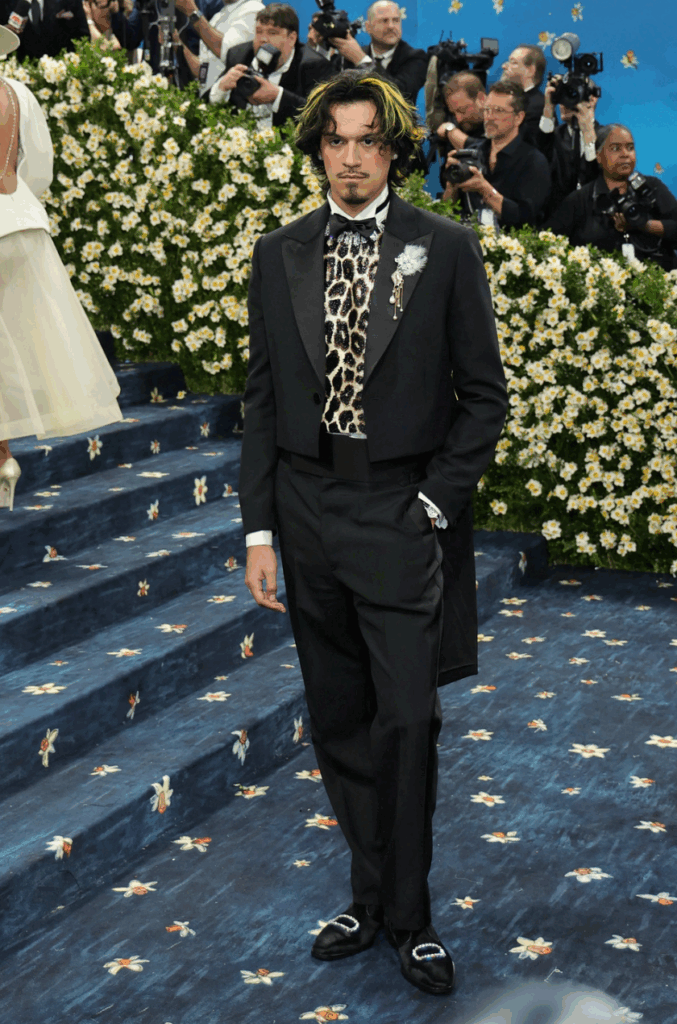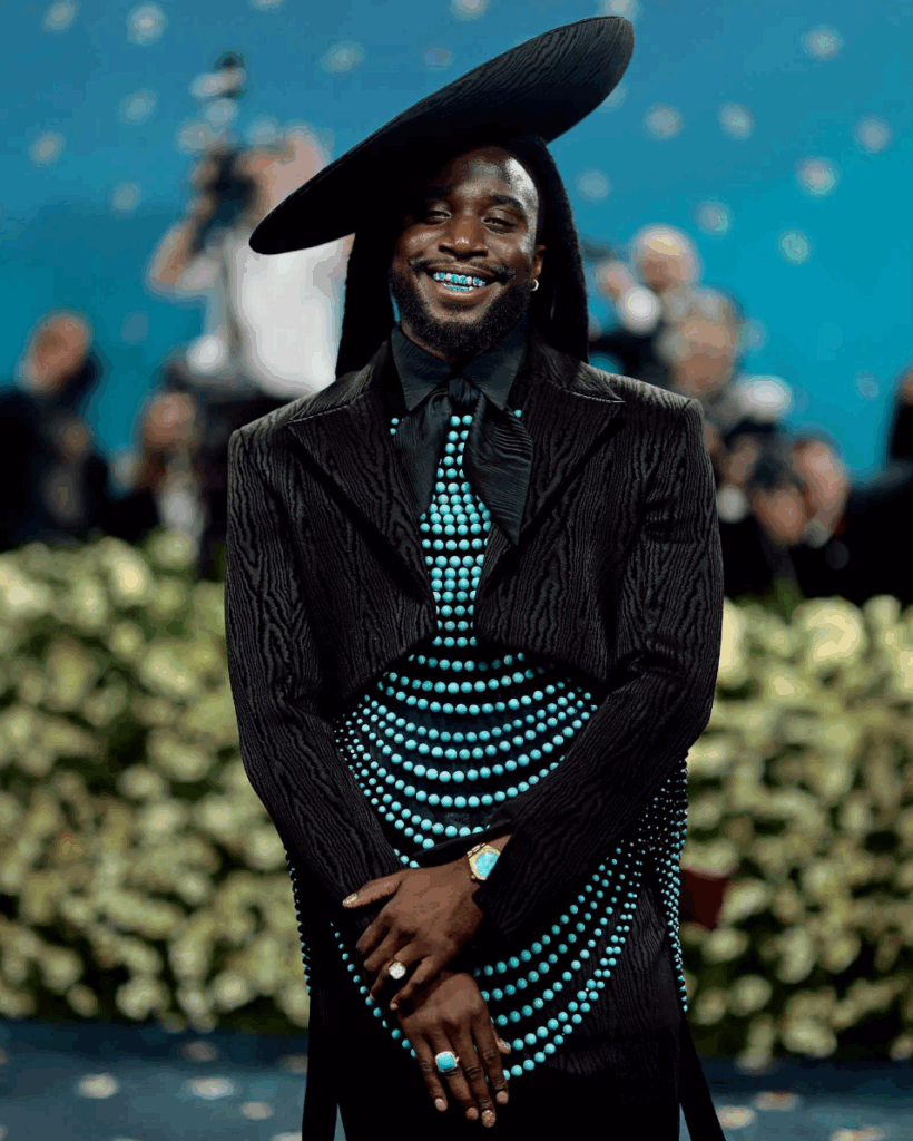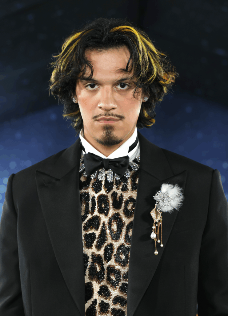 Enfin, Robert Wun a habillé le chanteur country Shaboozey pour ses débuts au Met Gala avec un costume noir moiré à l’élégance dandy, twisté par une ceinture à chaînes incrustée de 2 900 perles de cristal noir. Une version futuriste du cowboy qui réinvente les codes du gala new-yorkais.