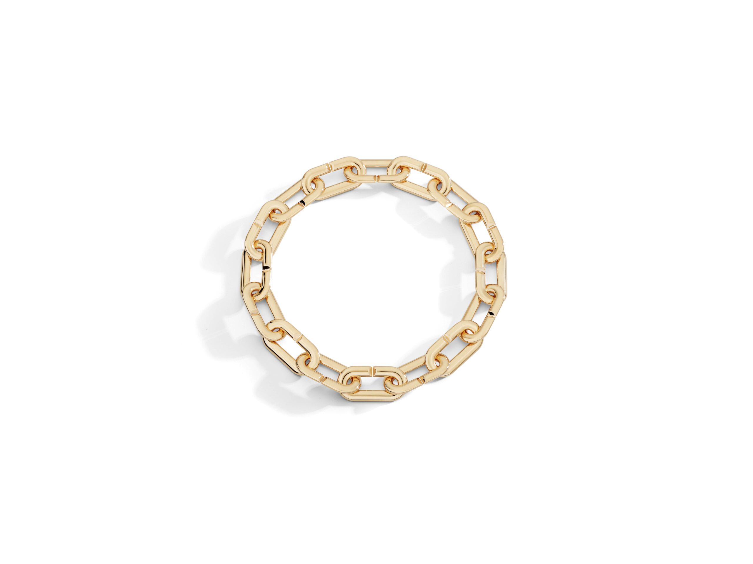 Les maillons, signatures de cette collection, doublent pratiquement de taille par rapport à leur version originale, créant ainsi un impact visuel puissant tout en préservant la délicatesse caractéristique des créations Vhernier. Sculptés à la main dans l’or rose, ces éléments dévoilent une fluidité sculpturale et une précision impeccable qui magnifient les courbes naturelles du corps.