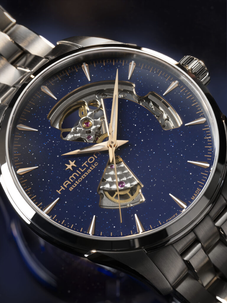 Disponible en 36 mm et 42 mm, la Jazzmaster Open Heart 2025 s’adresse aussi bien aux amateurs de montres élégantes et discrètes qu’à ceux qui recherchent une pièce plus imposante et expressive.